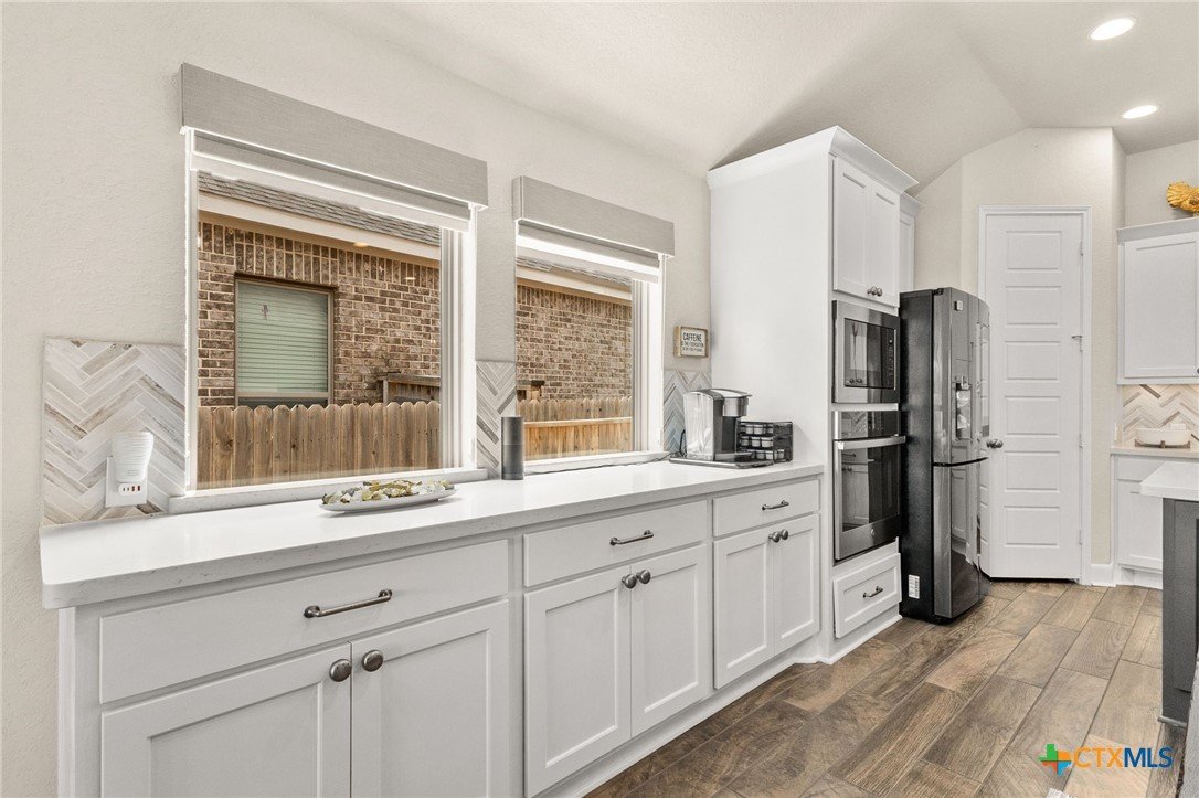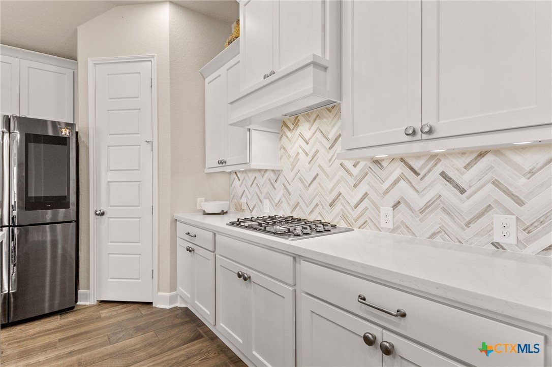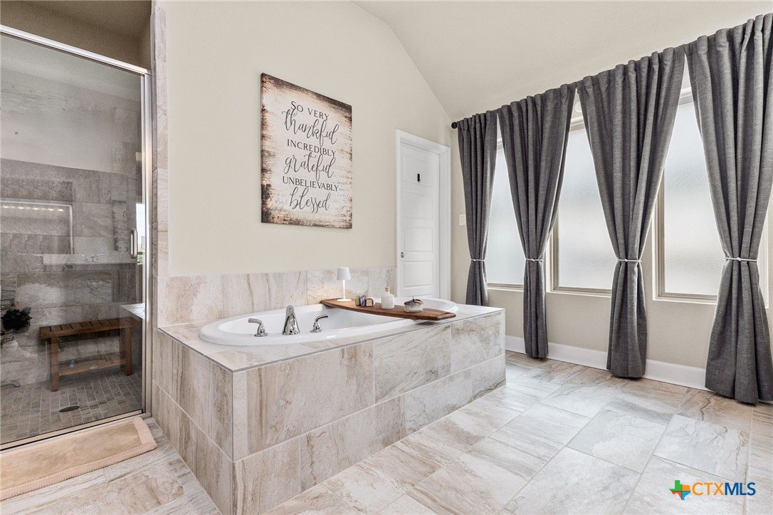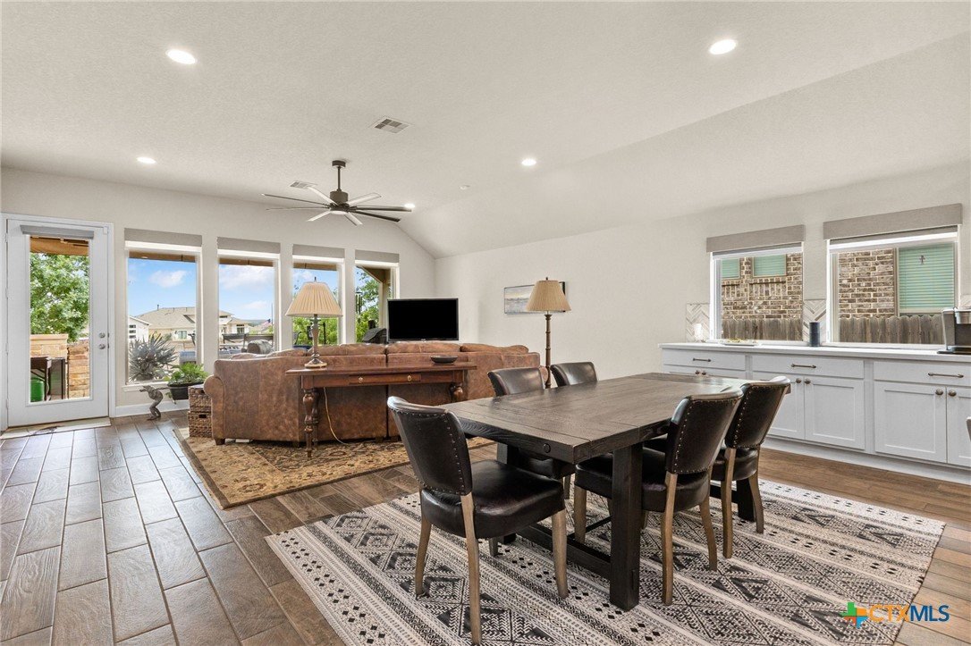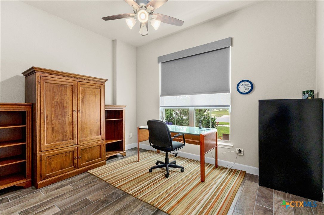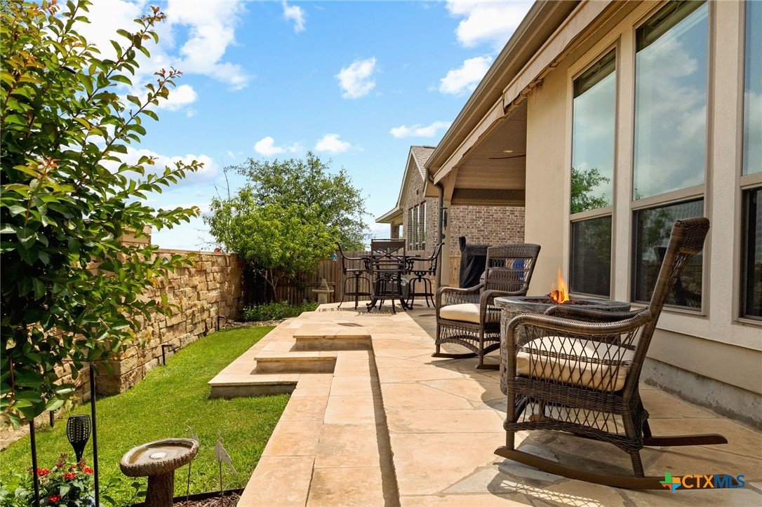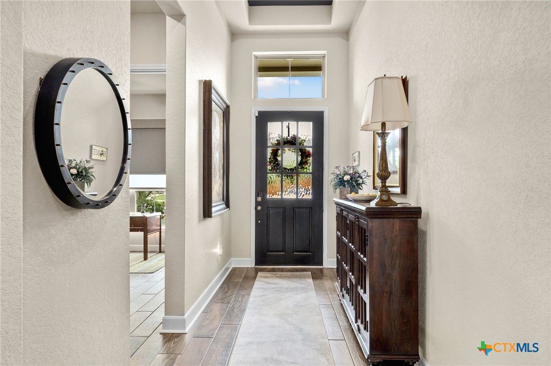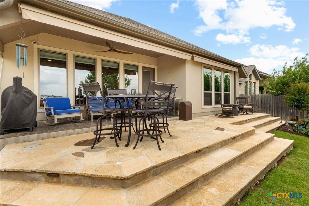Buyer offering 10,000 dollars in flex credit. Interest buy-down, down payment... Welcome Home! This stunning Perry Home is loaded with upgrades and move-in ready. From the moment you arrive, you'll notice the custom landscaping, colorful flowers, and beautiful curb appeal. Inside, the extended entry you will see 13-foot ceilings with upgraded shiplap tray ceiling and tile flooring throughout—no carpet! The split floor plan offers two front bedrooms with a shared full bath. A little further through the entry, you will find another hall with a single bedroom and bathroom. The chef’s kitchen features quartz countertops, an oversized island, upgraded gas cooktop, built-in double ovens, microwave, upgraded dishwasher, trash compactor, white and gray cabinetry with custom hardware, tile backsplash, and a walk-in pantry. A spacious flex room with glass French doors offers a perfect space for an office, second living area, or playroom. The open-concept living area and eat-in kitchen are filled with natural light from a wall of windows and feature custom motorized Hunter Douglas window treatments. The primary suite includes shiplap accents, a custom barn door, separate tub and shower, dual vanities, and two walk-in closets. The beautifully landscaped backyard features an extended stone patio with motorized retractable awnings—perfect for outdoor living. Additional features include an epoxy-coated garage floor with custom workbench and shelving, a whole-house water softener, and added attic insulation. This home is a must-see with thoughtful upgrades throughout!
