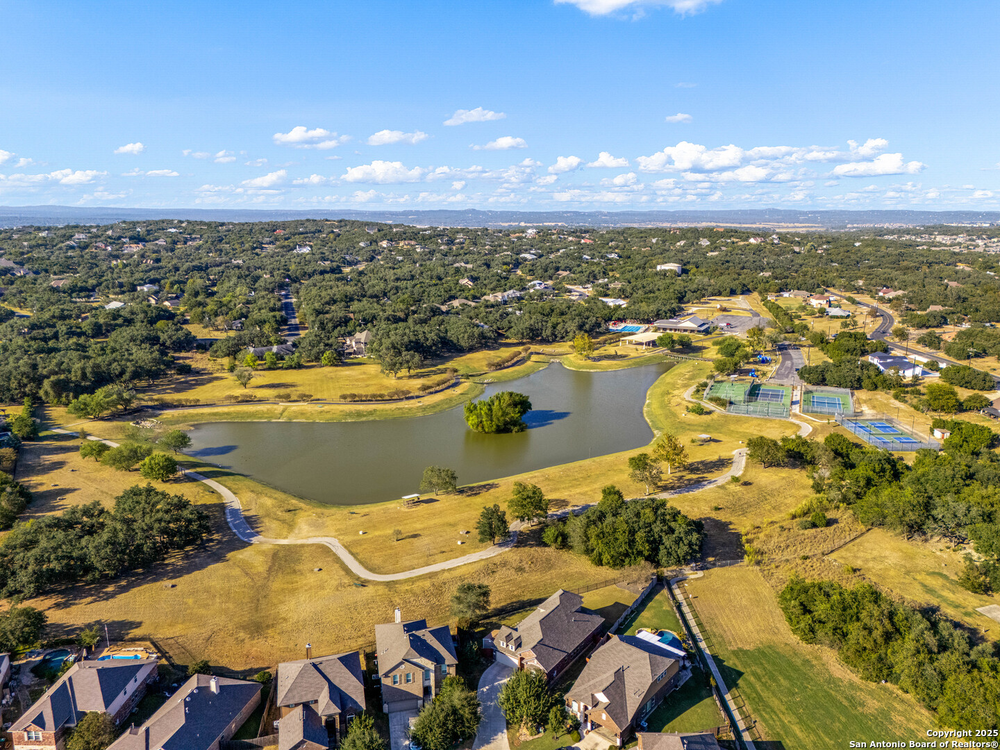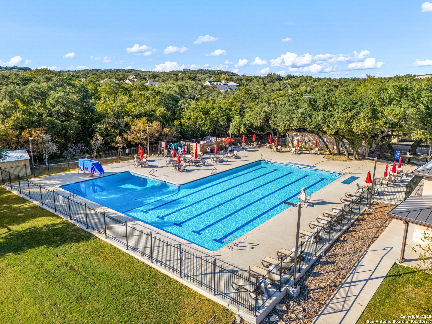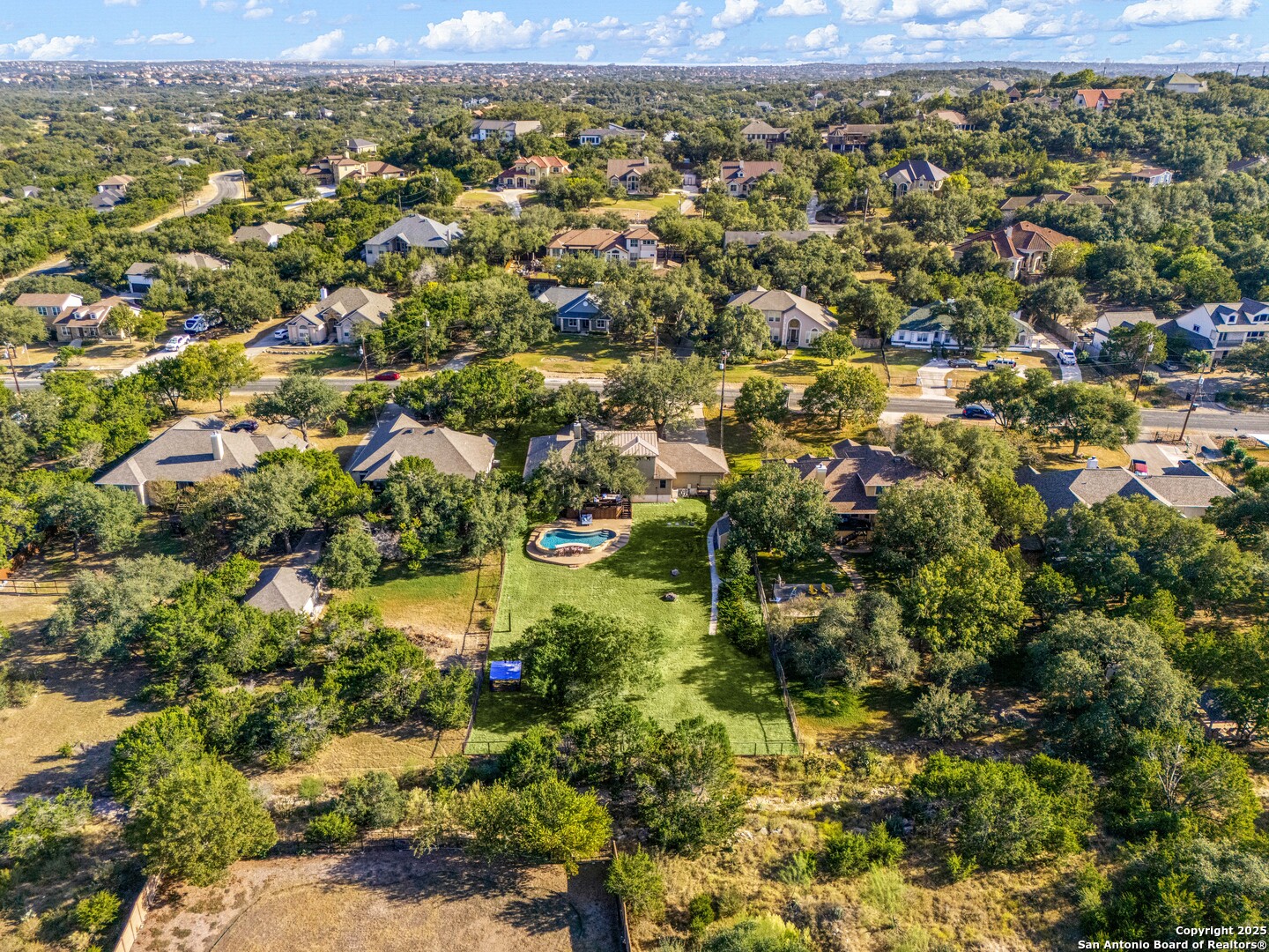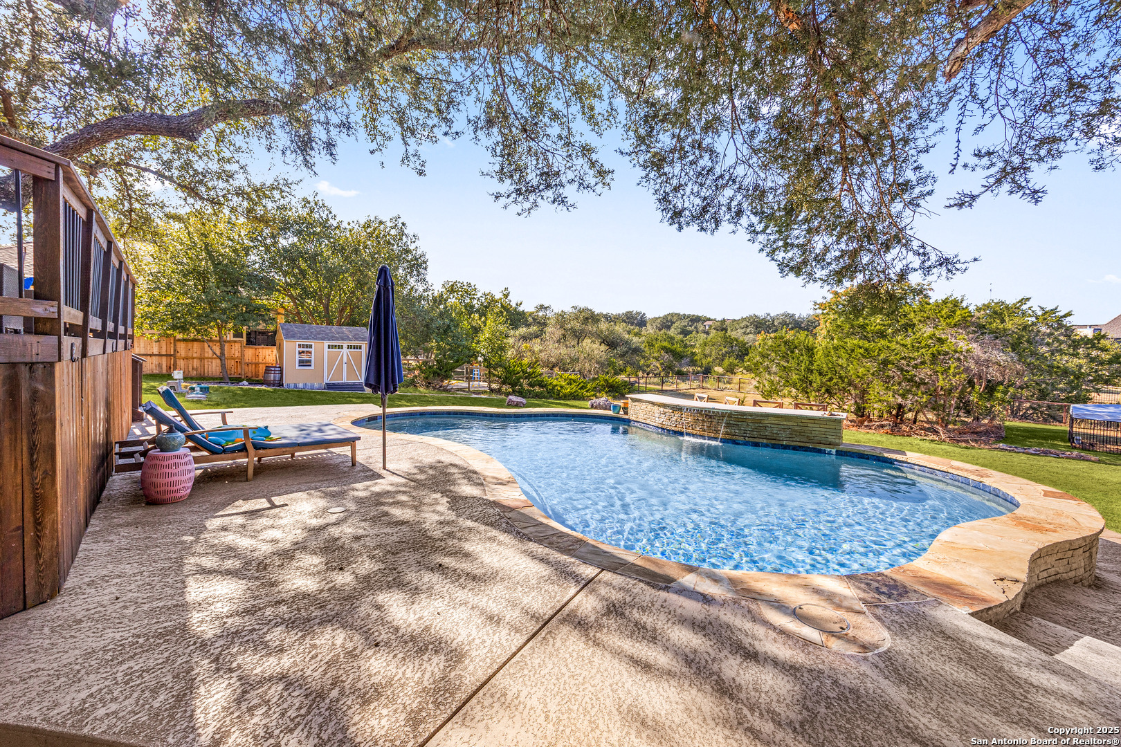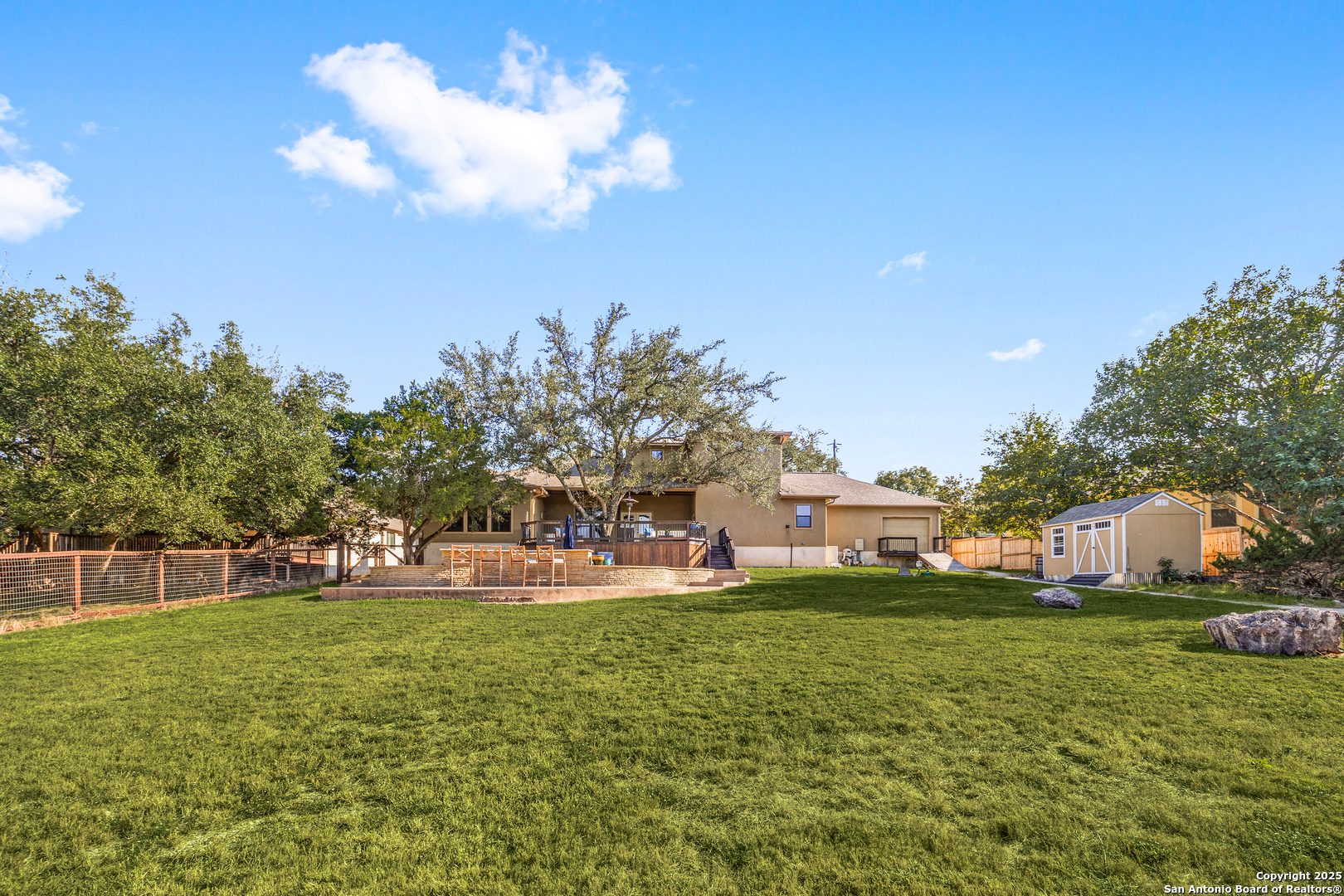 Incredible Opportunity to Own a Slice of Country Paradise! This stunning rustic Hill Country-style home, built by Serenity Custom Homes, is nestled on a Texas-sized 0.61-acre lot surrounded by mature trees and nature-inspired settings. With showstopping curb appeal and a spacious front porch, it's the perfect spot to enjoy your morning coffee at sunrise or unwind after a long day. Inside, the 1.5-story open floor plan was thoughtfully designed for seamless indoor-outdoor living, ideal for both everyday comfort and entertaining. Exquisite craftsmanship shines throughout - from the cozy floor-to-ceiling stone fireplace and sliding barn door, to the custom wood trim framing the family room entryway, adding warmth and rustic sophistication. The main-level primary retreat offers a private escape with a large walk-in closet, walk-in shower, and soaking tub - a perfect place to relax and recharge. Upstairs, the expansive 4th bedroom with its own full bath provides flexibility for a guest suite, mother-in-law retreat, or an impressive game or media room tailored to your needs. Step outside to your one-of-a-kind backyard oasis, featuring a large deck overlooking the sparkling pool - the ultimate backdrop for entertaining or enjoying peaceful Texas evenings. Located in a community with resort-style amenities, this home delivers the feeling of a year-round vacation. Truly, a rare find that captures the perfect balance of rustic charm and modern comfort.
