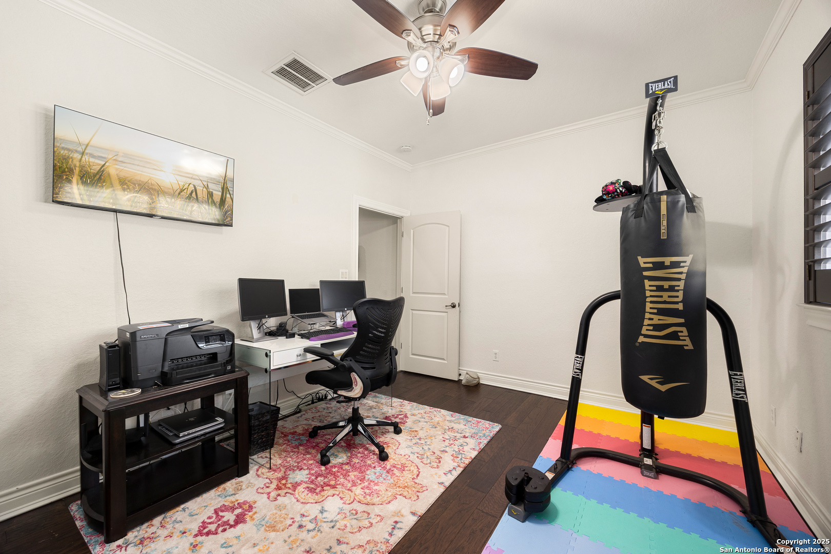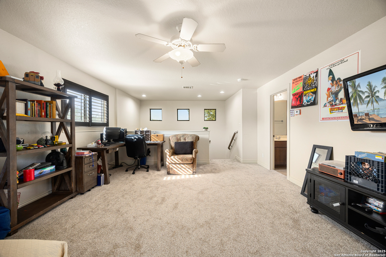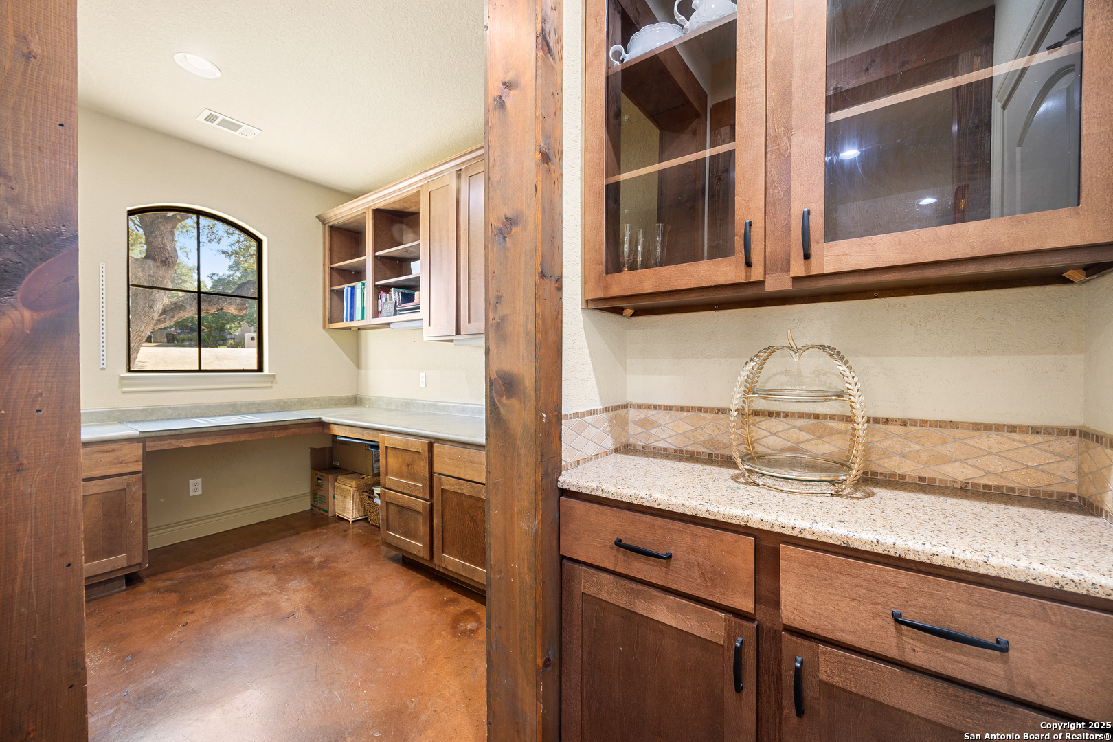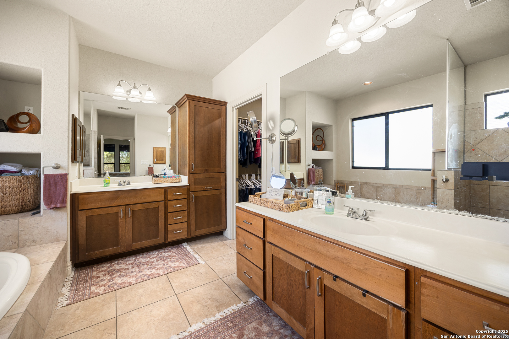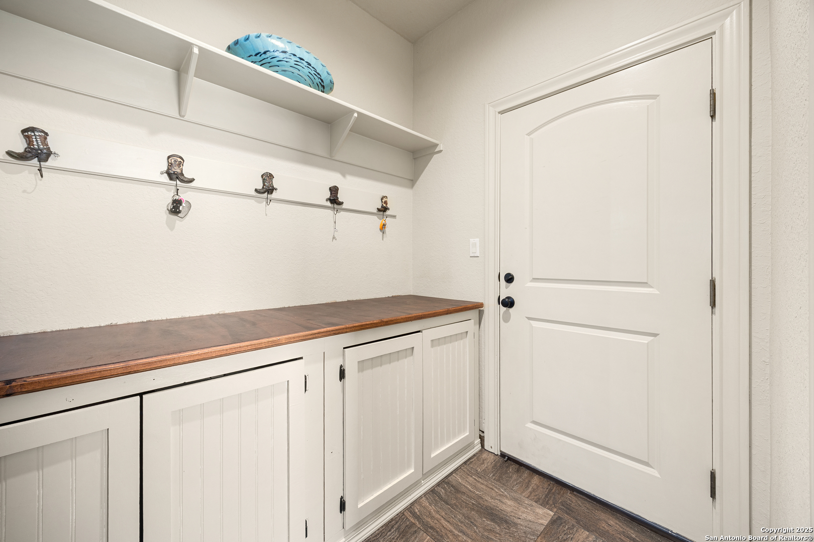 Incredible Opportunity to Own a Slice of Country Paradise! This stunning rustic Hill Country-style home, built by Serenity Custom Homes, is nestled on a Texas-sized 0.61-acre lot surrounded by mature trees and nature-inspired settings. With showstopping curb appeal and a spacious front porch, it's the perfect spot to enjoy your morning coffee at sunrise or unwind after a long day. Inside, the 1.5-story open floor plan was thoughtfully designed for seamless indoor-outdoor living, ideal for both everyday comfort and entertaining. Exquisite craftsmanship shines throughout - from the cozy floor-to-ceiling stone fireplace and sliding barn door, to the custom wood trim framing the family room entryway, adding warmth and rustic sophistication. The main-level primary retreat offers a private escape with a large walk-in closet, walk-in shower, and soaking tub - a perfect place to relax and recharge. Upstairs, the expansive 4th bedroom with its own full bath provides flexibility for a guest suite, mother-in-law retreat, or an impressive game or media room tailored to your needs. Step outside to your one-of-a-kind backyard oasis, featuring a large deck overlooking the sparkling pool - the ultimate backdrop for entertaining or enjoying peaceful Texas evenings. Located in a community with resort-style amenities, this home delivers the feeling of a year-round vacation. Truly, a rare find that captures the perfect balance of rustic charm and modern comfort.