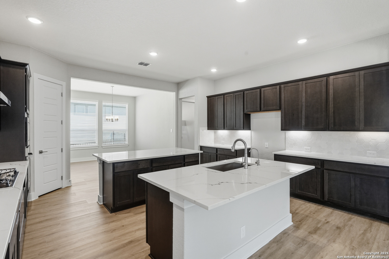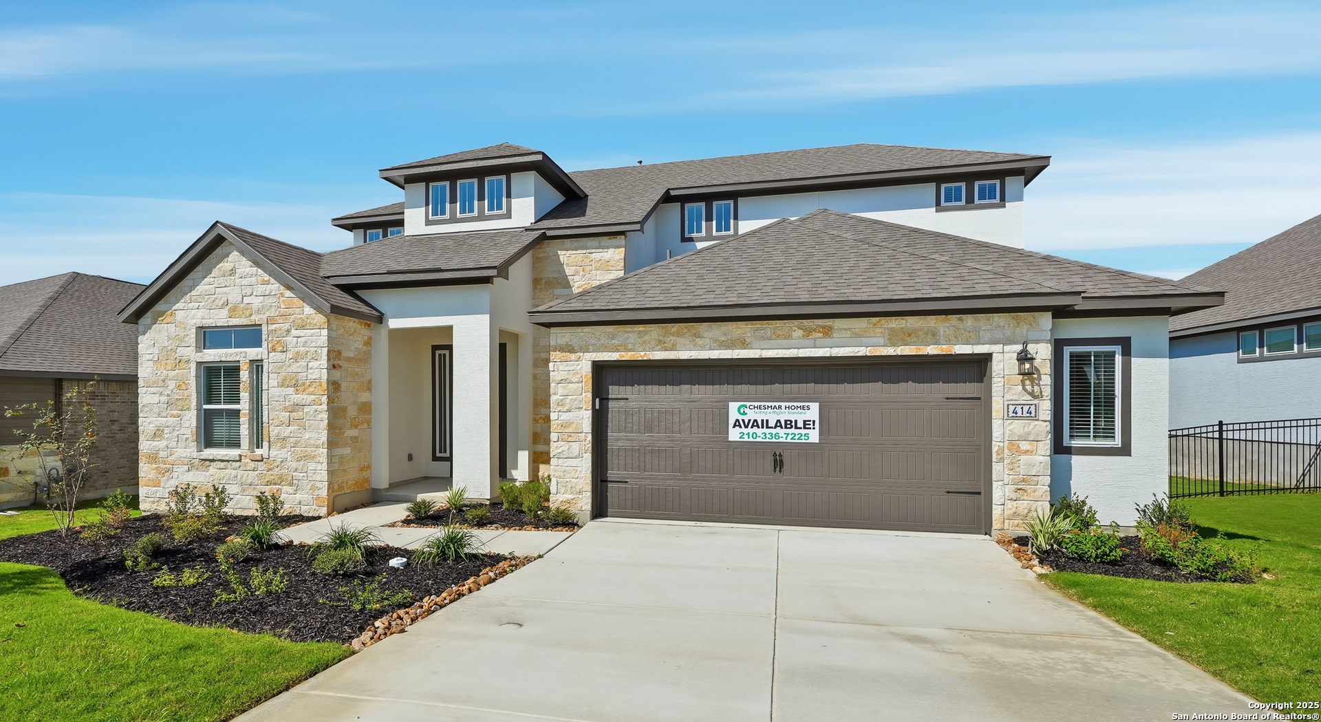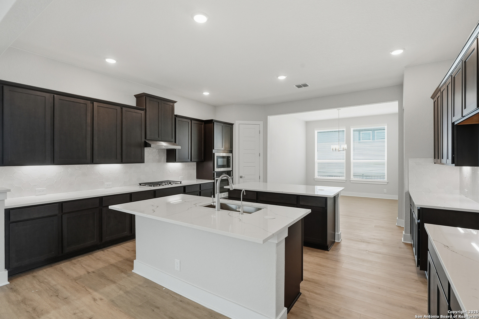 Move in Ready! Welcome to your dream home nestled in the highly desirable Hill Country of Boerne. This beautifully designed two-story home offers the perfect blend of elegance, comfort, and functionality, ideal for families or those who love to entertain. Boasting 5 spacious bedrooms and 4.5 luxurious bathrooms, this home provides ample space for everyone. The primary suite is conveniently located on the main level, with a spa like bathroom and walk in closet. At the heart of the home is a gourmet kitchen with double islands, built-in cooktop and microwave, and oven. With abundant countertop space and cabinets, you will fall in love with this kitchen immediately! Come see why so many people want a Chesmar Home in Esperanza!