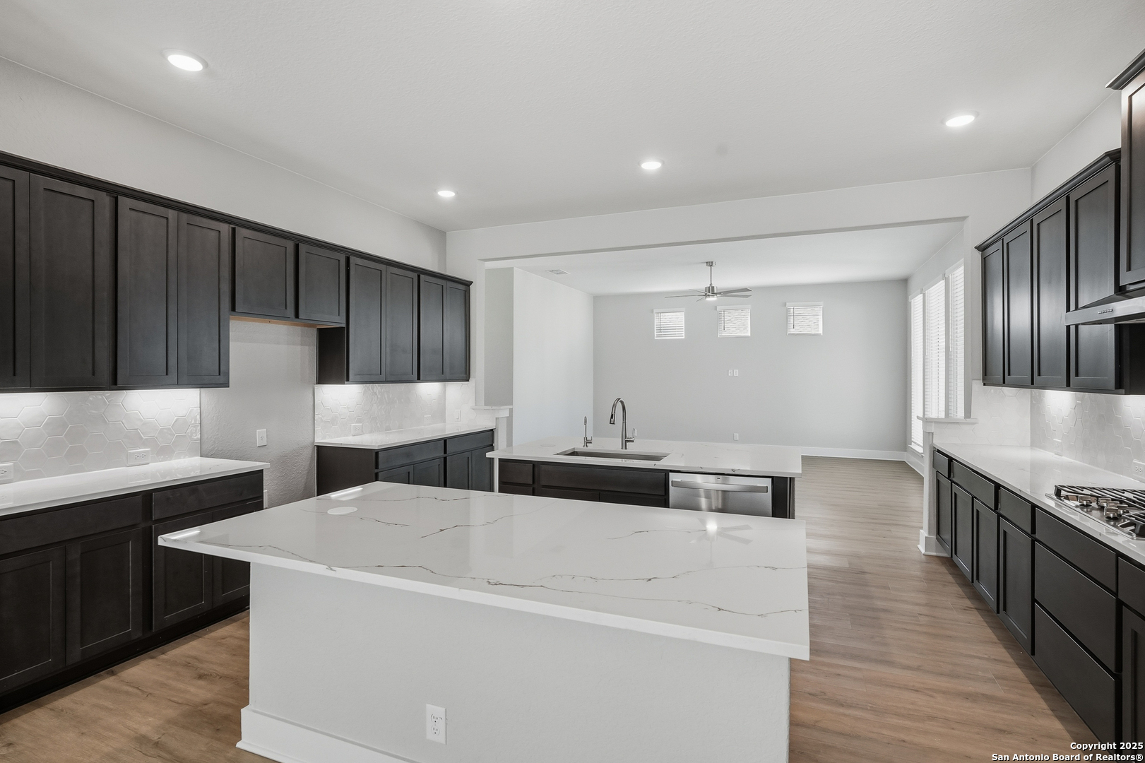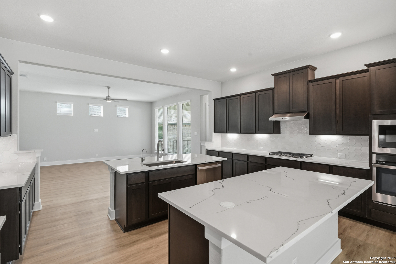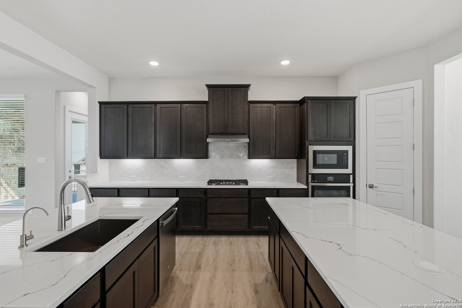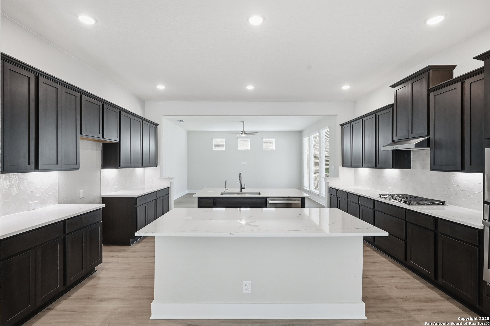 Move in Ready! Welcome to your dream home nestled in the highly desirable Hill Country of Boerne. This beautifully designed two-story home offers the perfect blend of elegance, comfort, and functionality, ideal for families or those who love to entertain. Boasting 5 spacious bedrooms and 4.5 luxurious bathrooms, this home provides ample space for everyone. The primary suite is conveniently located on the main level, with a spa like bathroom and walk in closet. At the heart of the home is a gourmet kitchen with double islands, built-in cooktop and microwave, and oven. With abundant countertop space and cabinets, you will fall in love with this kitchen immediately! Come see why so many people want a Chesmar Home in Esperanza!