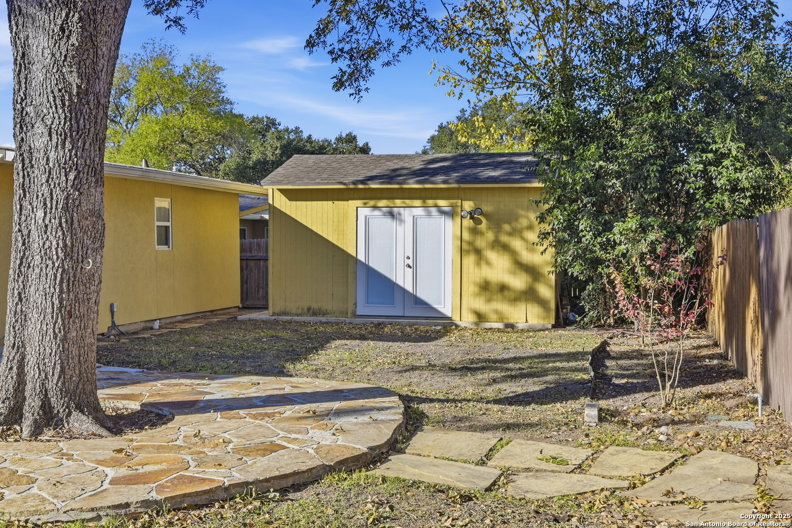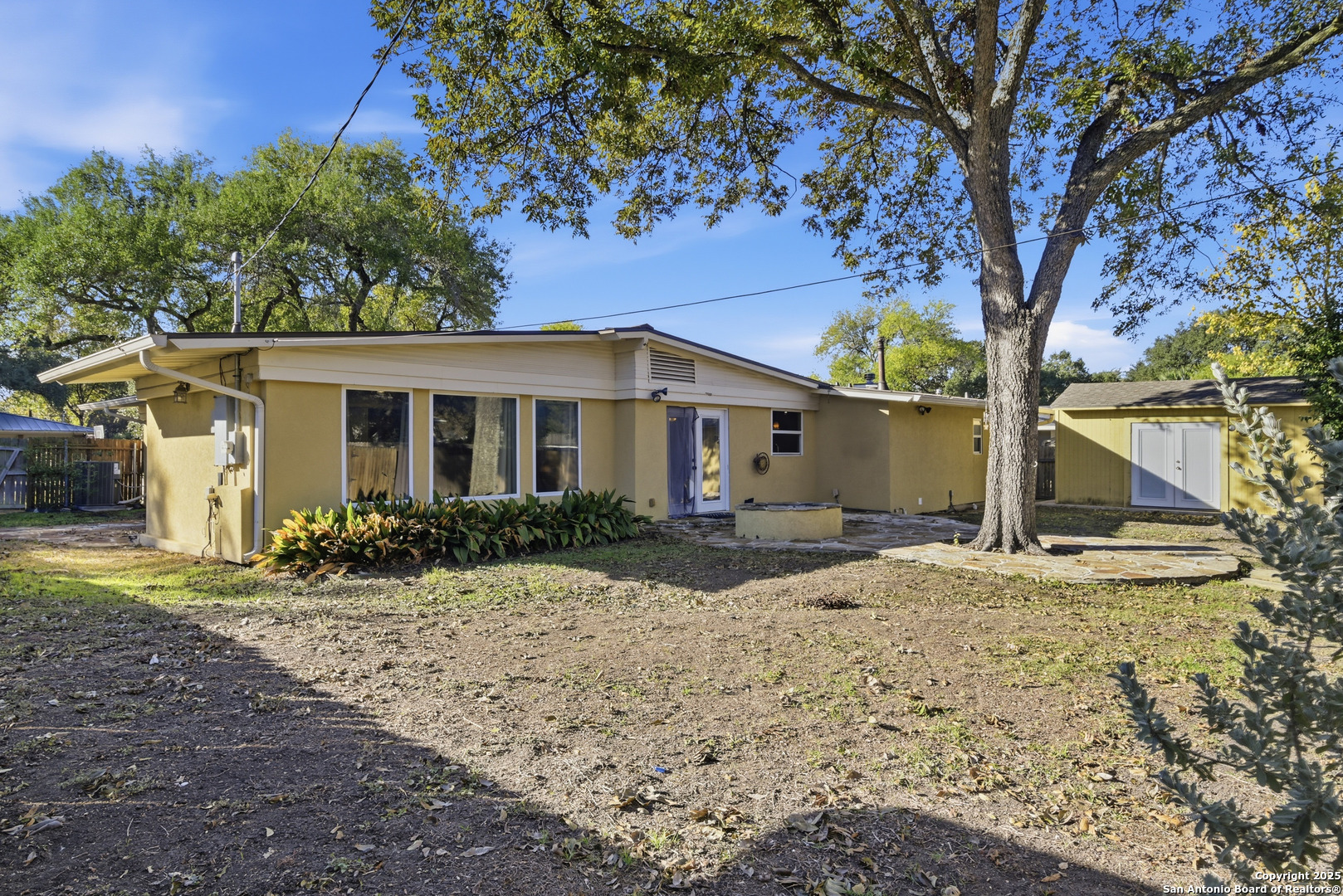 Located in the highly sought-after Alamo Heights Independent School District, this thoughtfully updated single-story home offers a bright, open-concept floor plan with hardwood floors throughout. An abundance of natural light fills the living spaces thanks to an expansive wall of windows that seamlessly connects the indoors with the outdoor living areas. The updated kitchen features granite countertops, stainless steel appliances, and a spacious layout ideal for everyday living and entertaining. The primary suite is privately situated and includes a cedar-lined walk-in closet. The secondary bedrooms are generously sized, including one with its own en-suite bath. The fourth bedroom offers flexibility as a study or guest room while still providing a large walk-in closet. Step outside to your backyard oasis, complete with a charming rock patio, multiple seating areas, and a gas fire pit perfect for gatherings. A durable storage shed provides ample space for yard equipment and tools. Additional upgrades include: Metal roof Tankless water heater Water Softener Updated windows Indoor laundry room