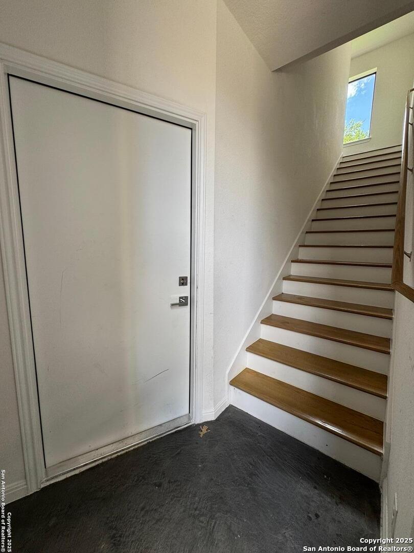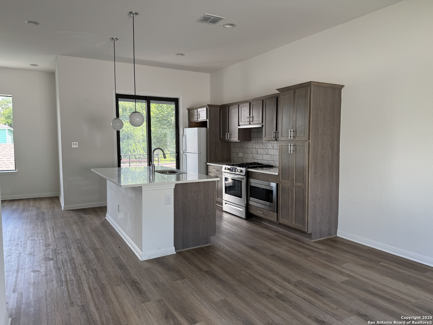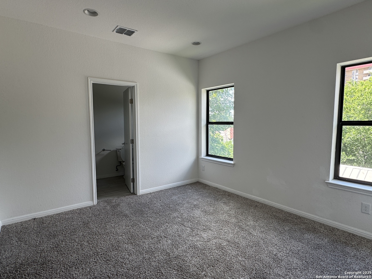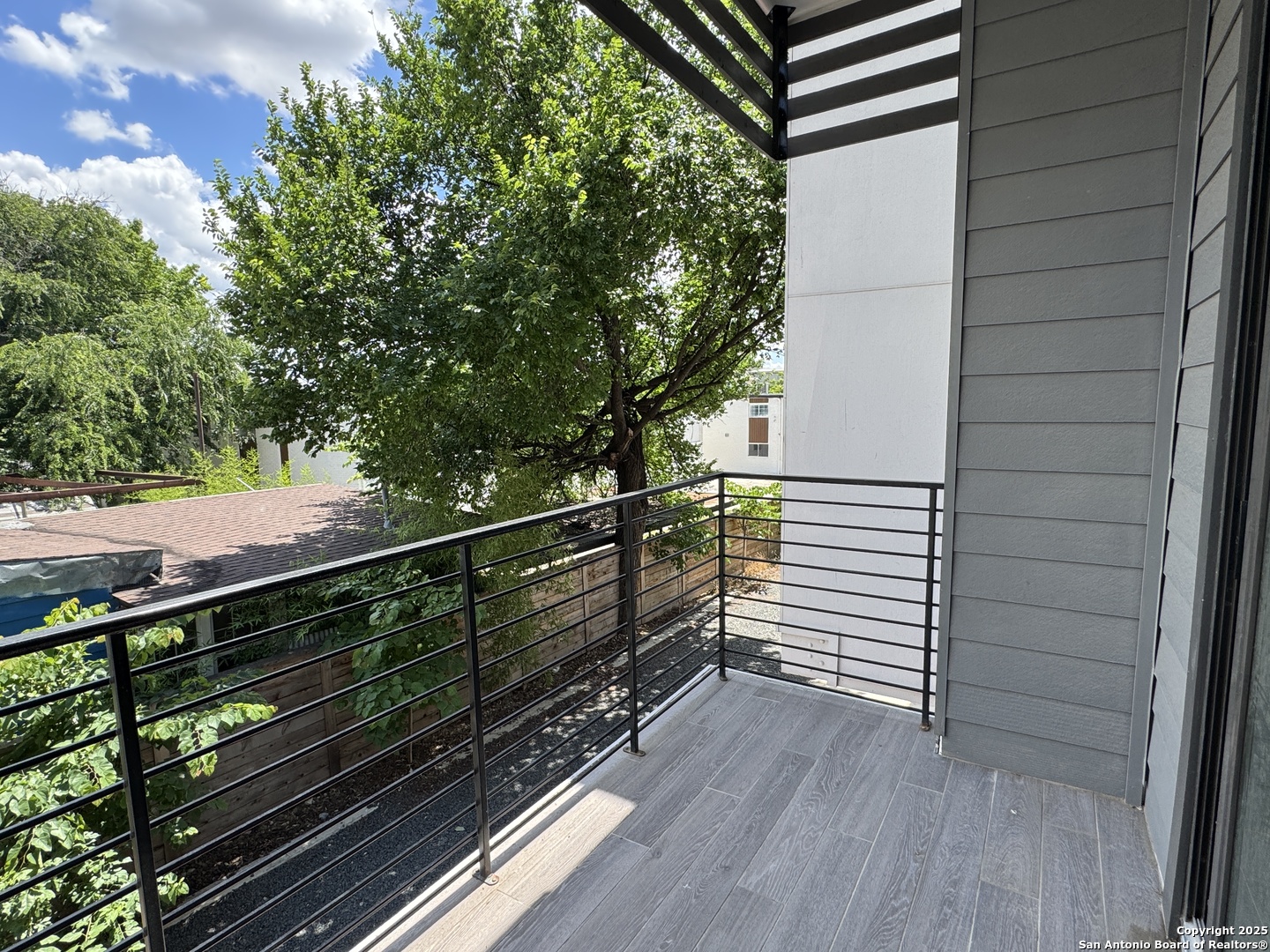 Constructed in 2023, The Jackson at Five Points urban community is located just minutes from a diverse selection of dining, shopping and entertainment options with The Pearl to the north and the heart of vibrant Downtown San Antonio to the south. The layout for Unit 201 features a 2-car garage on the ground level, half-bath, kitchen, dining and living areas in an open floor plan on the second level, and bedrooms with full-baths on the third level. The kitchen features stainless steel appliances, solid-stone countertops and a generously sized island. Leading off of the kitchen is the balcony with excellent views of the city skyline. Each bedroom has its own en-suite bathroom and walk-in closet. The hallmark of the primary bathroom is the spacious layout, large glass enclosed shower and solid-stone double sink vanity. Large windows throughout fills the home with natural light. Don't miss this opportunity to own a piece of the ultimate urban living experience!
