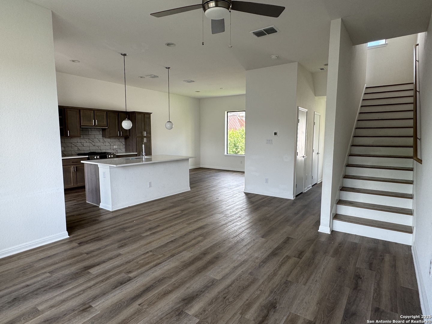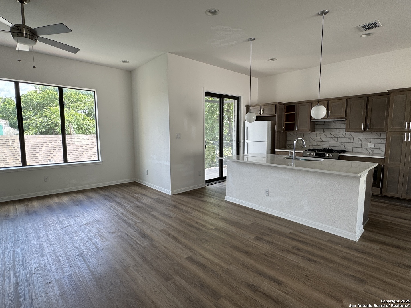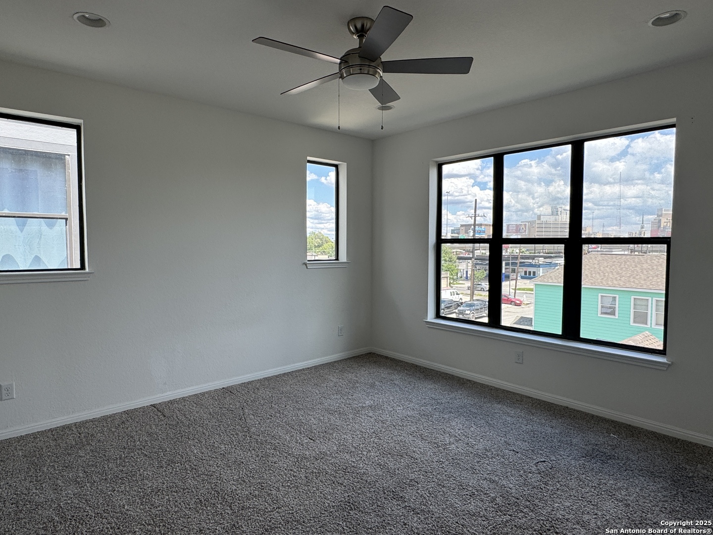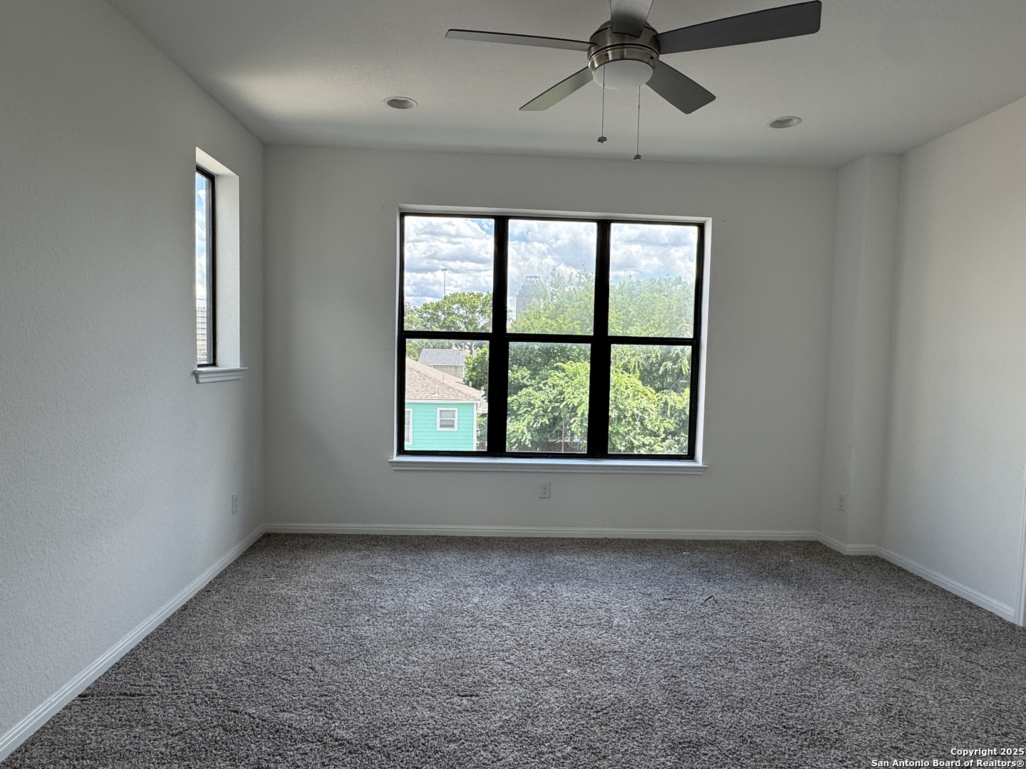 Constructed in 2023, The Jackson at Five Points urban community is located just minutes from a diverse selection of dining, shopping and entertainment options with The Pearl to the north and the heart of vibrant Downtown San Antonio to the south. The layout for Unit 201 features a 2-car garage on the ground level, half-bath, kitchen, dining and living areas in an open floor plan on the second level, and bedrooms with full-baths on the third level. The kitchen features stainless steel appliances, solid-stone countertops and a generously sized island. Leading off of the kitchen is the balcony with excellent views of the city skyline. Each bedroom has its own en-suite bathroom and walk-in closet. The hallmark of the primary bathroom is the spacious layout, large glass enclosed shower and solid-stone double sink vanity. Large windows throughout fills the home with natural light. Don't miss this opportunity to own a piece of the ultimate urban living experience!