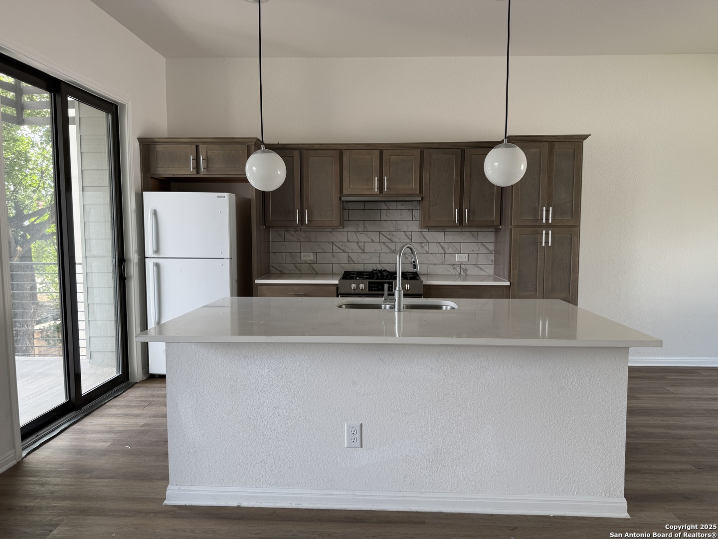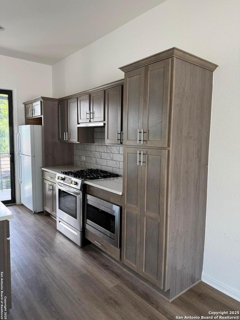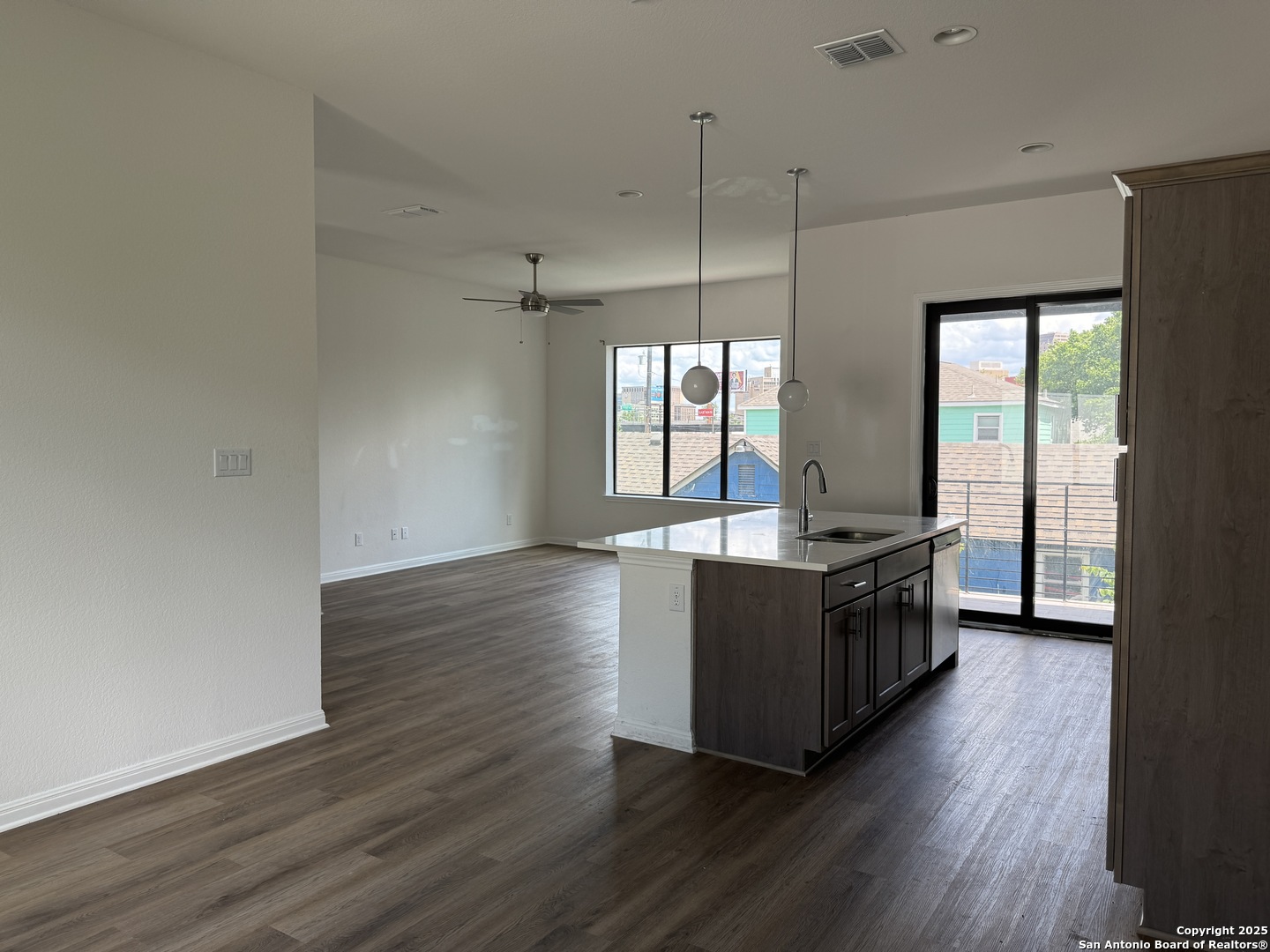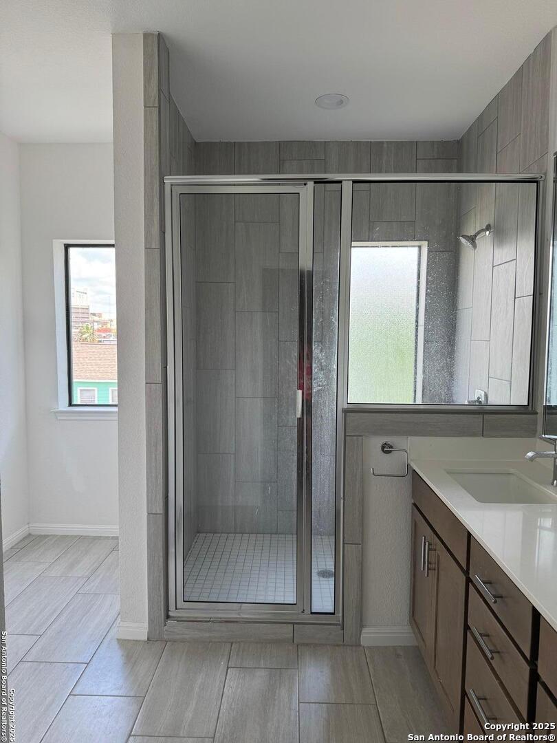 Constructed in 2023, The Jackson at Five Points urban community is located just minutes from a diverse selection of dining, shopping and entertainment options with The Pearl to the north and the heart of vibrant Downtown San Antonio to the south. The layout for Unit 201 features a 2-car garage on the ground level, half-bath, kitchen, dining and living areas in an open floor plan on the second level, and bedrooms with full-baths on the third level. The kitchen features stainless steel appliances, solid-stone countertops and a generously sized island. Leading off of the kitchen is the balcony with excellent views of the city skyline. Each bedroom has its own en-suite bathroom and walk-in closet. The hallmark of the primary bathroom is the spacious layout, large glass enclosed shower and solid-stone double sink vanity. Large windows throughout fills the home with natural light. Don't miss this opportunity to own a piece of the ultimate urban living experience!