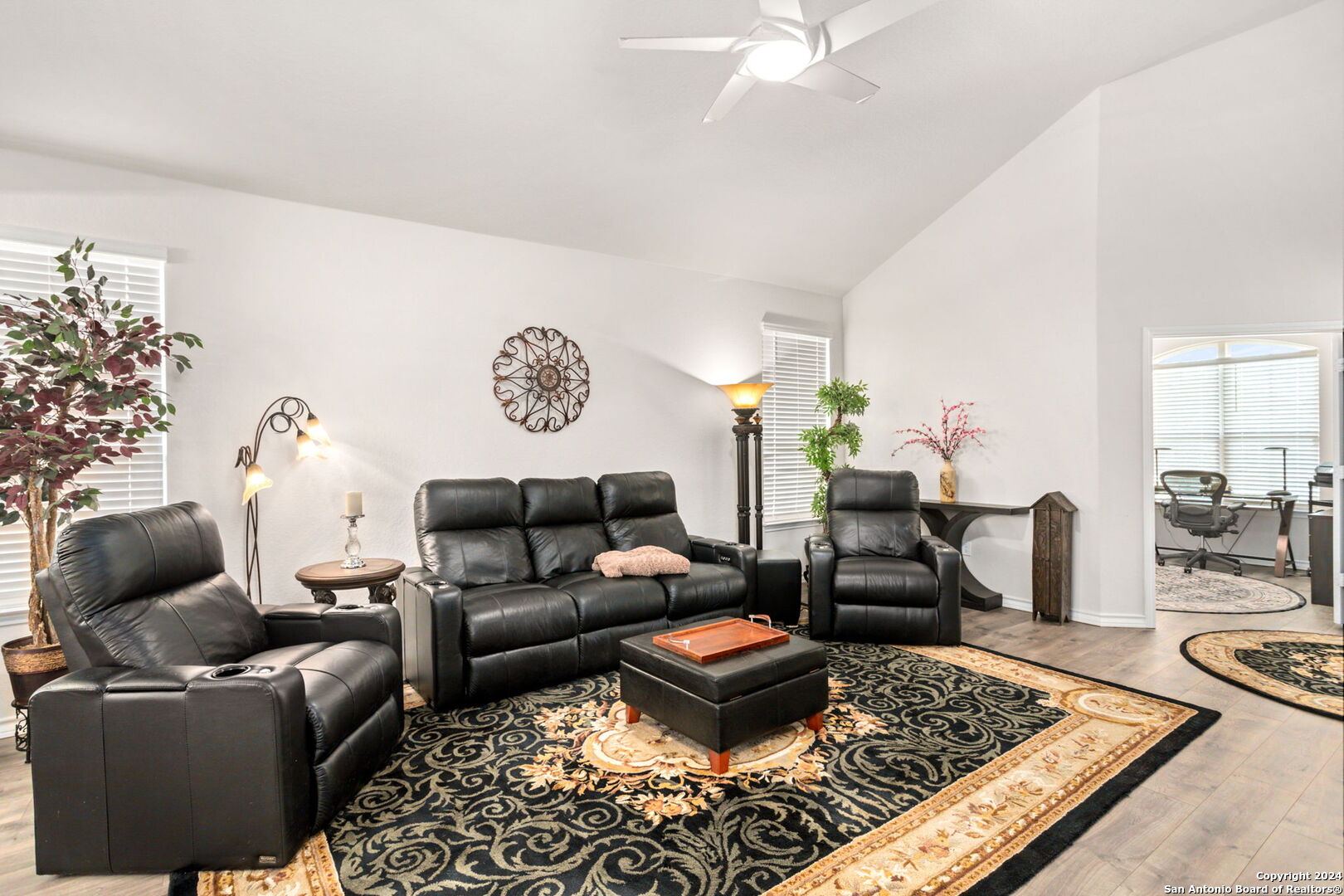 Welcome home to this rare New Braunfels find! This 2625 sqft home has 4 bedrooms, with dual "primary" suites, and a SEPARATE office space. The second floor boasts a large loft living area along with a secondary "primary" bedroom space with a large walk in closet and ensuite bathroom. This home is in immaculate condition with stunning high ceilings, and room to relax.