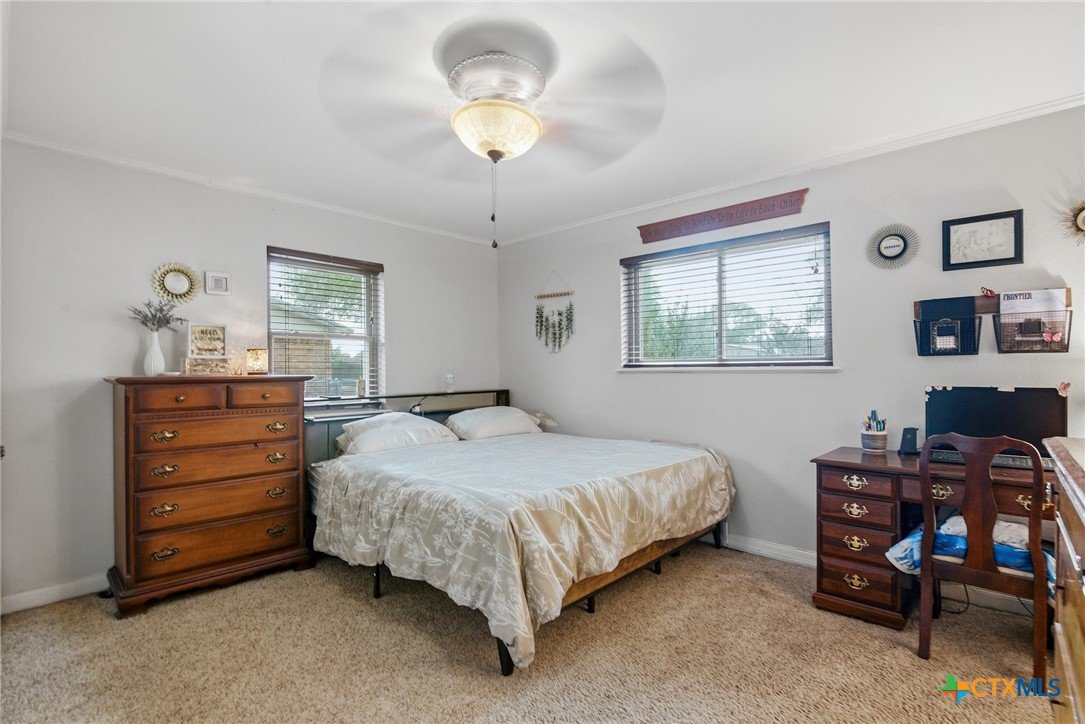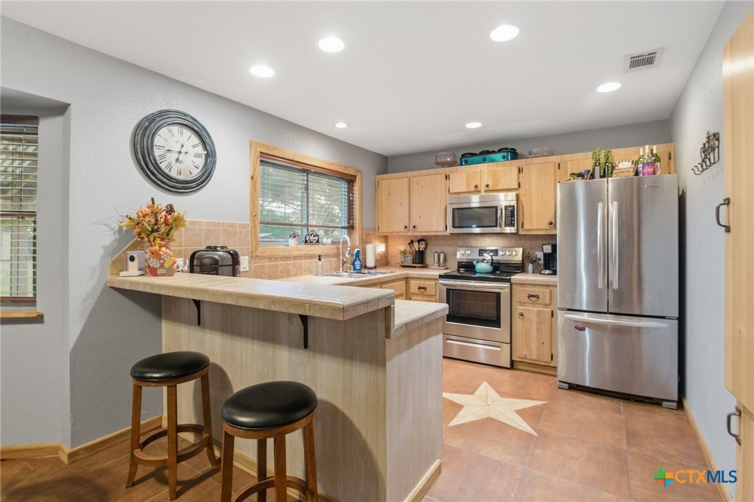 Discover the charm, comfort, and country-style living of 417 Dove, nestled in the highly desirable Quail Creek neighborhood—just outside city limits where you can enjoy extra freedom, pop fireworks, and appreciate the benefits of a neighborhood MUD instead of city water. This community is known for going all out during the holidays, creating a fun, festive, and welcoming atmosphere year-round. Step inside this warm and inviting 4-bedroom, 2-bath home filled with thoughtful updates that make it feel truly cozy and homey from the moment you walk in. The spacious primary suite features a double vanity with stunning copper sinks, granite countertops, and a beautifully tiled walk-in shower. The second bathroom also offers a granite countertop and a shower/tub combo—perfect for guests or family. The heart of the home opens to a covered back patio equipped with side-mounted fans to help keep the space comfortable while you entertain or relax outdoors. The oversized backyard—over .30 of an acre—provides endless possibilities: build your dream shop, add a pool, start a garden, or create a custom outdoor oasis. Major updates add peace of mind, including a 2021 range and HVAC, and a roof installed after Hurricane Harvey. Please note: the security system is privately controlled and will not convey. Homes in Quail Creek are in high demand, and this one checks all the boxes. Don’t miss out—417 Dove won’t last long!