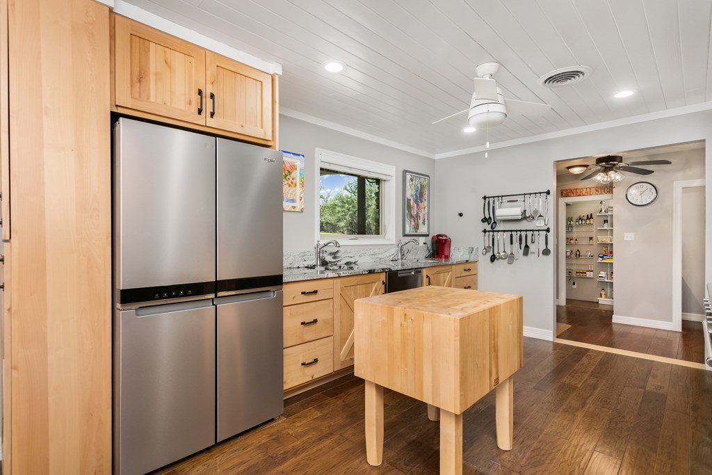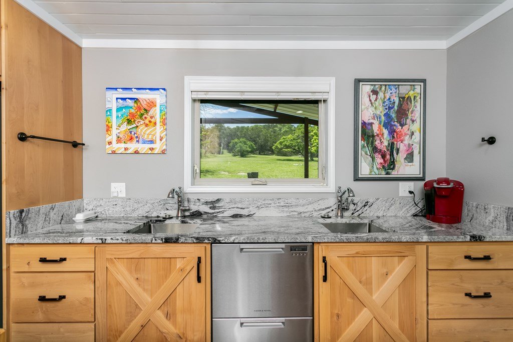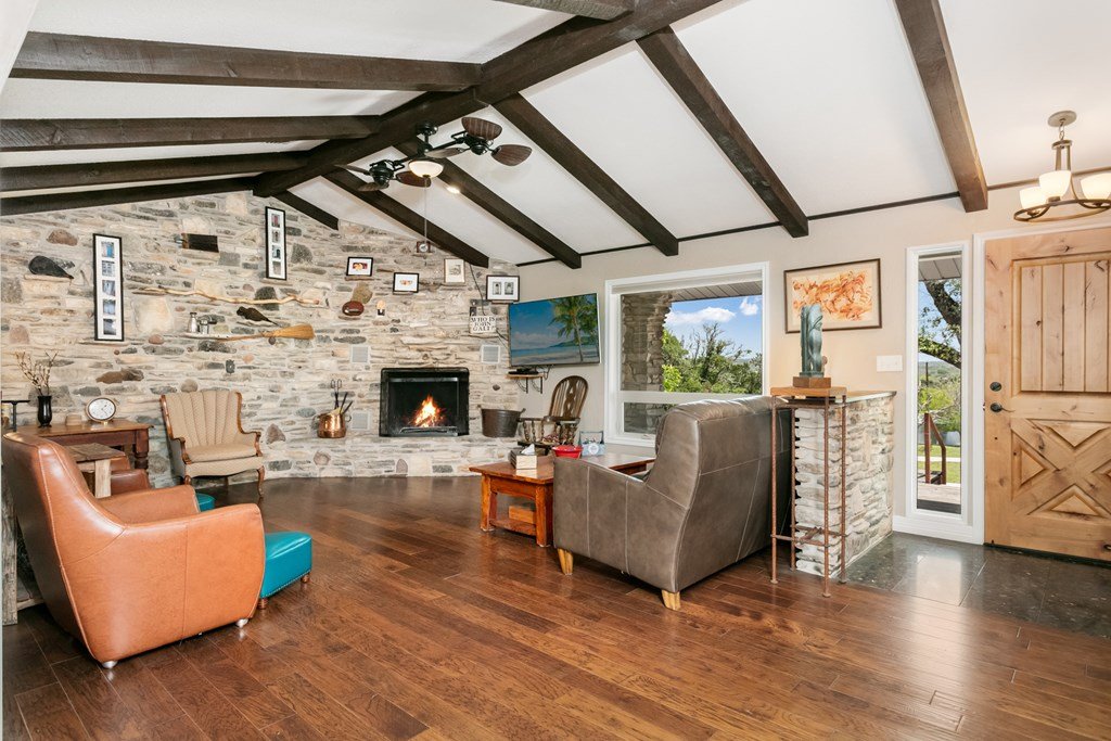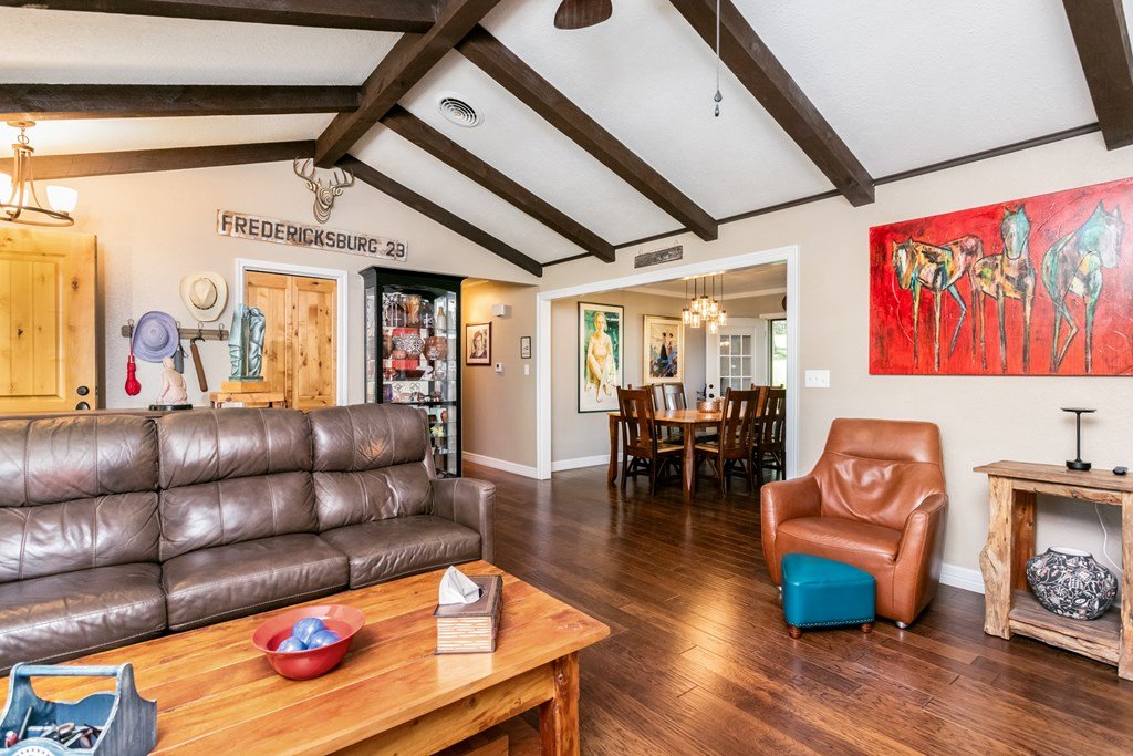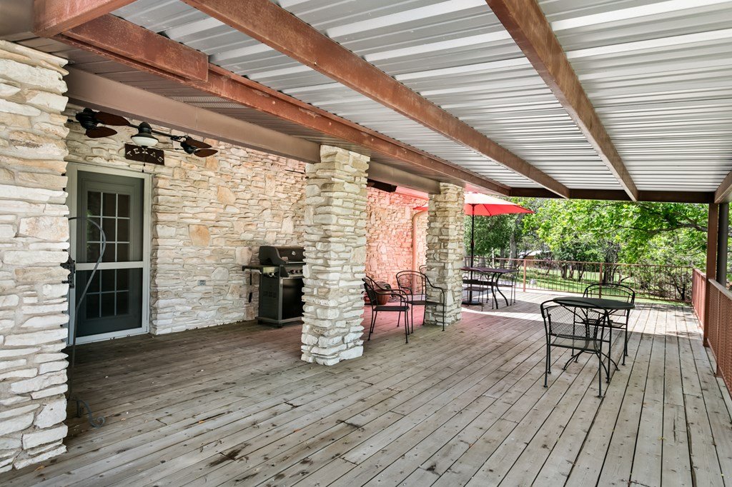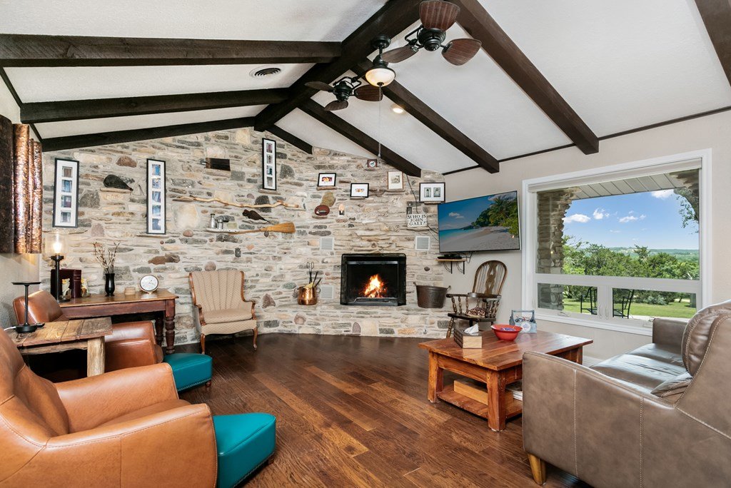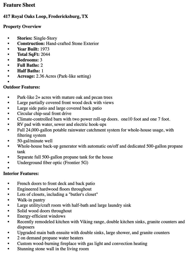 This meticulously cared for property offers an excellent investment or the perfect place to live just 1.5 miles from Fredericksburg. Dreaming of a hobby farm or the perfect entertaining retreat? Enjoy the views & 2.36 gentle acres w/ mature oak & pecan trees. Entertain from your large front deck, side patio or large covered back patio. The stone hand-crafted exterior is complemented by energy-efficient windows, engineered hardwood floors & solid wood doors. The living room has high ceilings w/ exposed beams, a large rock fireplace (w/ gas start & convection heating) & a stunning stone wall. In the remodeled kitchen, find a Viking range, double sinks & granite countertops. The upgraded main ensuite has double sinks, a large shower, & granite counters. A circular front drive leads to an attached, climate-controlled double garage & carport. The property includes a climate-controlled barn w/ 2 power roll-up doors, RV pad w/ hook-ups, & 5G fiber optic. You will take comfort knowing you have a full 24,000-gallon potable rainwater catchment system, a 50 gal/minute well, a whole-house automatic back-up generator (w/ propane tank), + a 2nd 500-gallon propane tank. See flyer for more info.