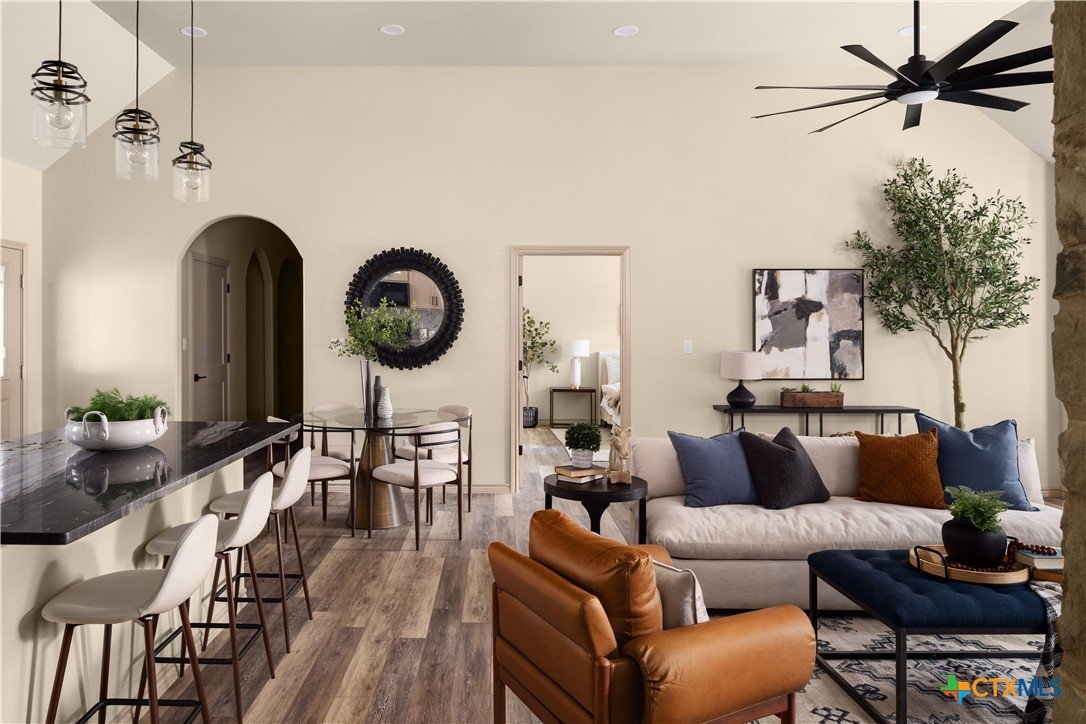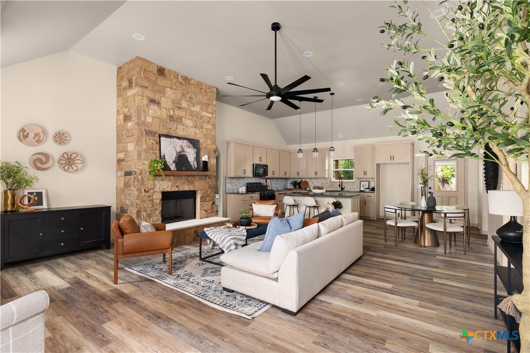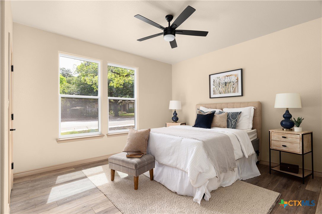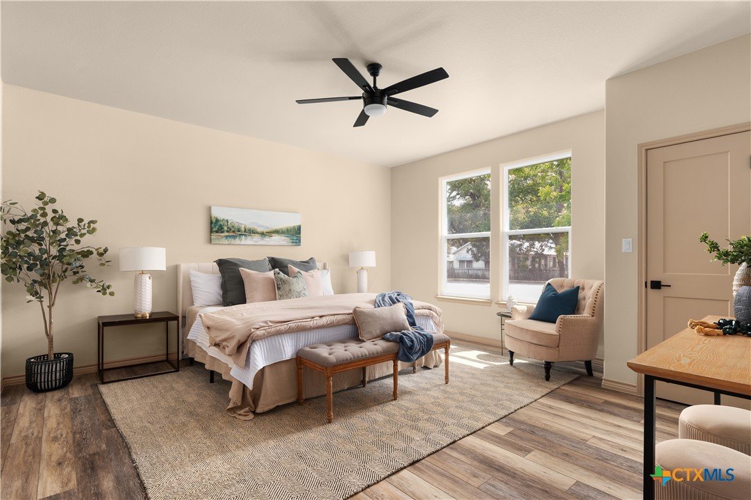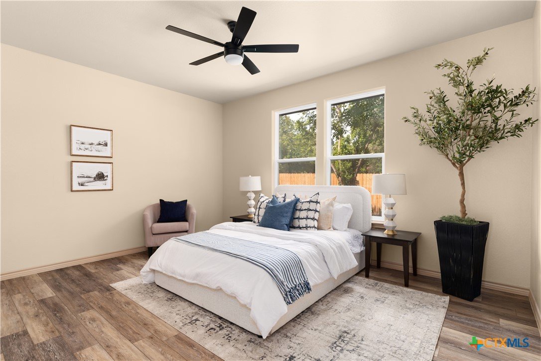 Discover Lockhart's newest gem, the modern home of your dreams with everything you could ever want from a short walk to downtown, to expansive opportunities! This new construction home sits on two lots with attention to detail in every corner just waiting for you to make it home. The home greets you with a coffered ceiling and an open floor plan with luxurious granite counters and the space you need to entertain all of your guests. The backyard has an expansive covered patio perfect for those chilly mornings to drink your cup of coffee or warm afternoons with friends and enough space in the yard to park your RV or add a play set for the kids. Both baths are outfitted with custom features and elevated finishes from dual vanities, to frameless glass and a walk in closet. The best part is that this home has plenty of individuality so you won't see this home twice! Have an EV? no problem! You get an EV charger in the garage and a bonus area located on top of the garage as well with exterior access that's 338 sq. ft. The bonus area upstairs has its own suite outfitted with a full kitchen, W/D connections and loft area perfect the growing family or extra curricular use offering privacy away from the main area. If going out is your thing, you can take a short walk to downtown Lockhart for some good BBQ or a good time with friends, convenience is everything with this home. With this area only being about 25 minutes away from Austin and 1 hour from San Antonio you'll see why there's so much buzz in this charming town! Be the first to own this wonderful home and enjoy all that this town has to offer. Welcome home!
