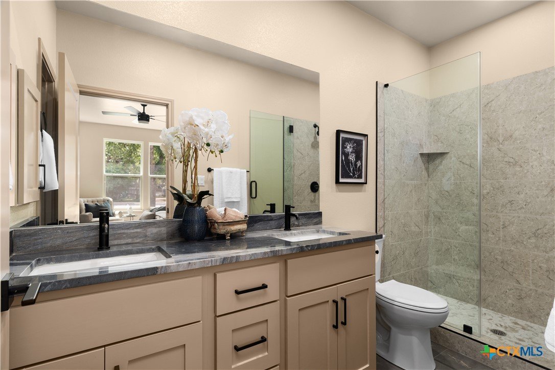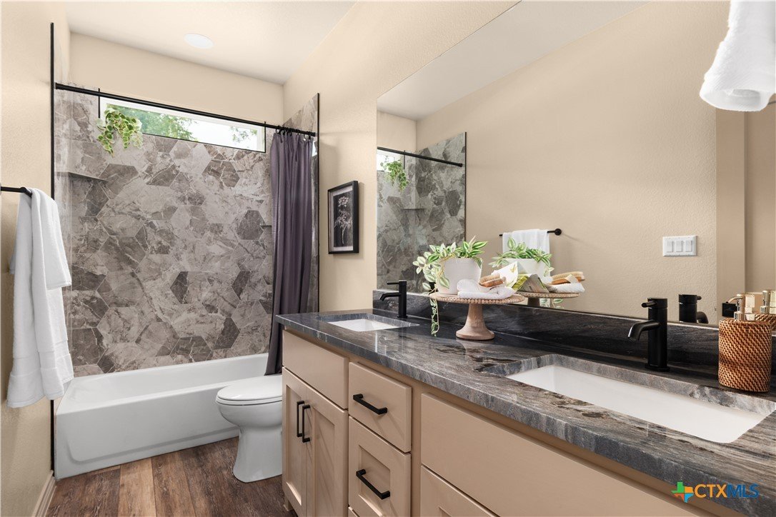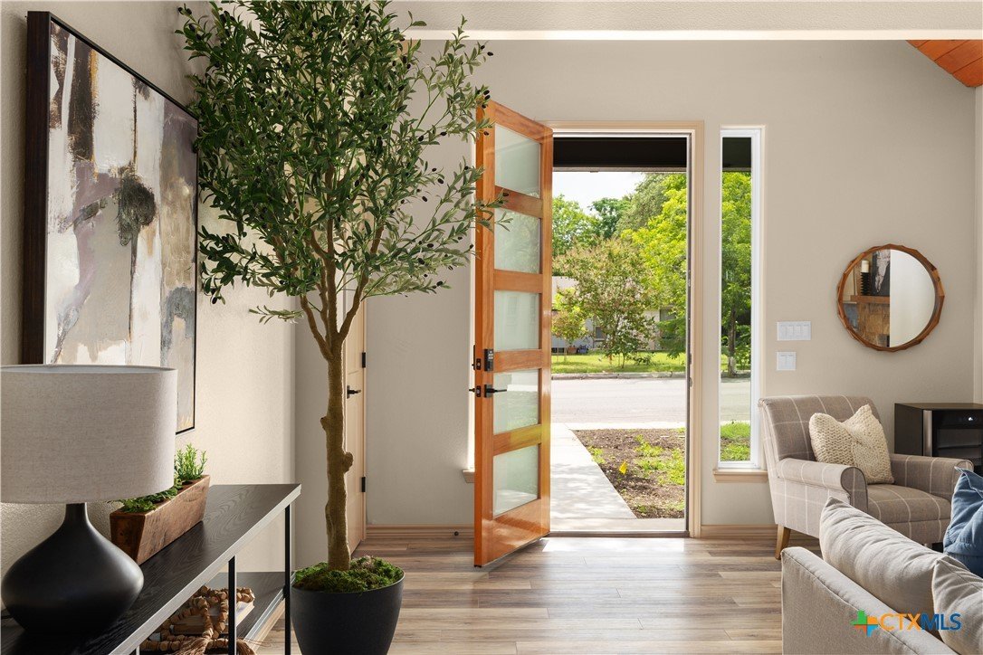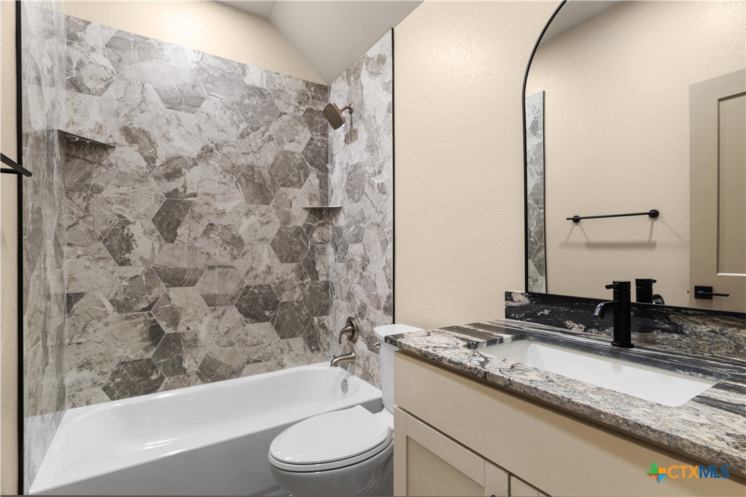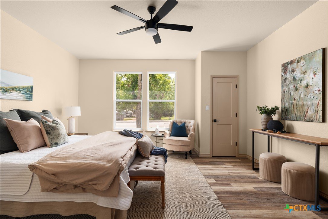 Discover Lockhart's newest gem, the modern home of your dreams with everything you could ever want from a short walk to downtown, to expansive opportunities! This new construction home sits on two lots with attention to detail in every corner just waiting for you to make it home. The home greets you with a coffered ceiling and an open floor plan with luxurious granite counters and the space you need to entertain all of your guests. The backyard has an expansive covered patio perfect for those chilly mornings to drink your cup of coffee or warm afternoons with friends and enough space in the yard to park your RV or add a play set for the kids. Both baths are outfitted with custom features and elevated finishes from dual vanities, to frameless glass and a walk in closet. The best part is that this home has plenty of individuality so you won't see this home twice! Have an EV? no problem! You get an EV charger in the garage and a bonus area located on top of the garage as well with exterior access that's 338 sq. ft. The bonus area upstairs has its own suite outfitted with a full kitchen, W/D connections and loft area perfect the growing family or extra curricular use offering privacy away from the main area. If going out is your thing, you can take a short walk to downtown Lockhart for some good BBQ or a good time with friends, convenience is everything with this home. With this area only being about 25 minutes away from Austin and 1 hour from San Antonio you'll see why there's so much buzz in this charming town! Be the first to own this wonderful home and enjoy all that this town has to offer. Welcome home!