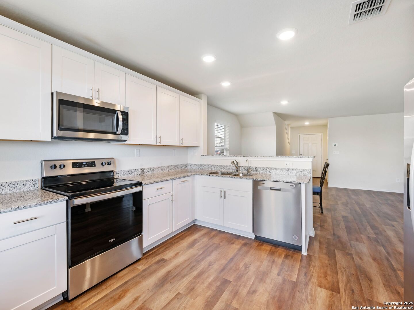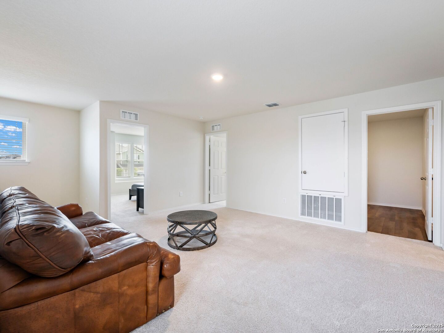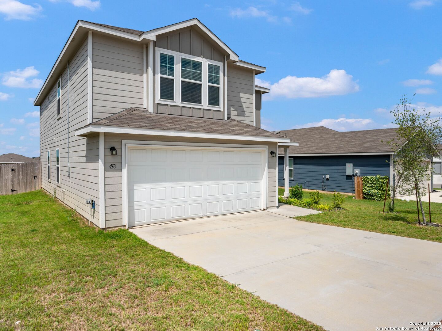 Welcome to this inviting two-story home in the Elley Crossing community! Front Yard Mowing Included and Option to lease furnished. Thoughtfully designed with a smart layout, this home offers generous space for comfortable living. Inside, you'll find custom accents, LED lighting, and excellent storage throughout. The kitchen opens seamlessly to the family and dining areas, perfect for both everyday living and entertaining. A secondary bedroom and full bath on the main floor are ideal for guests or multigenerational living. Upstairs, a spacious game room provides flexible living space. Laundry room upstairs offers ultimate practicality. The private primary suite features an oversized shower and a large walk-in closet. Additional bedrooms offer versatility and can easily serve as a home office, hobby room, or guest space. Enjoy the outdoors from the covered patio overlooking a generously sized backyard with a full irrigation system to keep the lawn lush year-round. The two-car garage includes a Tesla charger for added value and functionality. Ideally located just off Highway 46 and minutes from I-35, this home offers convenient access to shopping, dining, and amenities New Braunfels has to offer-all within the acclaimed Comal ISD.