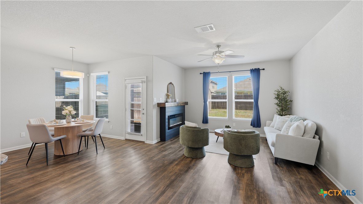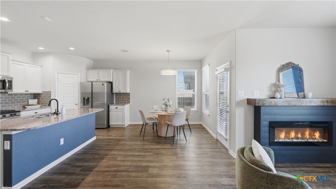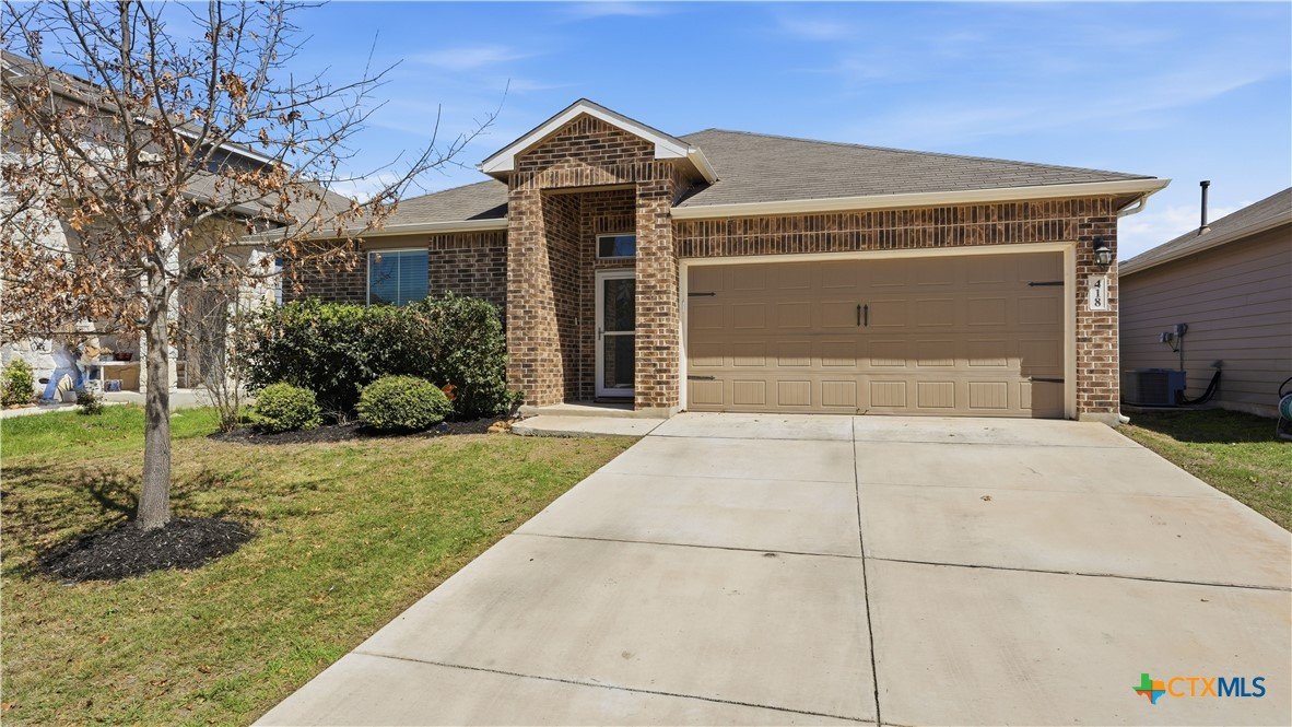Welcome to 418 Moonvine Way in New Braunfels, a charming single-story home offering 3 bedrooms, 2 bathrooms, plus a dedicated office-perfect for working from home, hobbies, or additional flex space. The open and comfortable layout creates a warm atmosphere, highlighted by a cozy electric fireplace that makes the living area inviting year-round. The garage has been customized for versatility, making it ideal for a workshop, home gym, or additional storage space. Step outside and enjoy evenings around the backyard fire pit, creating the perfect setting for relaxing or entertaining guests. The home is also equipped with a Vivint security system, providing added convenience and peace of mind. Located in a desirable New Braunfels neighborhood, this home offers easy access to shopping, dining, entertainment, and major roadways, and is just minutes from historic Gruene. Residents can also take advantage of the community pool, perfect for cooling off during the Texas summers. Whether you're looking for comfort, functionality, or a great location, this home has it all. Schedule your showing today and see everything 418 Moonvine Way has to offer.