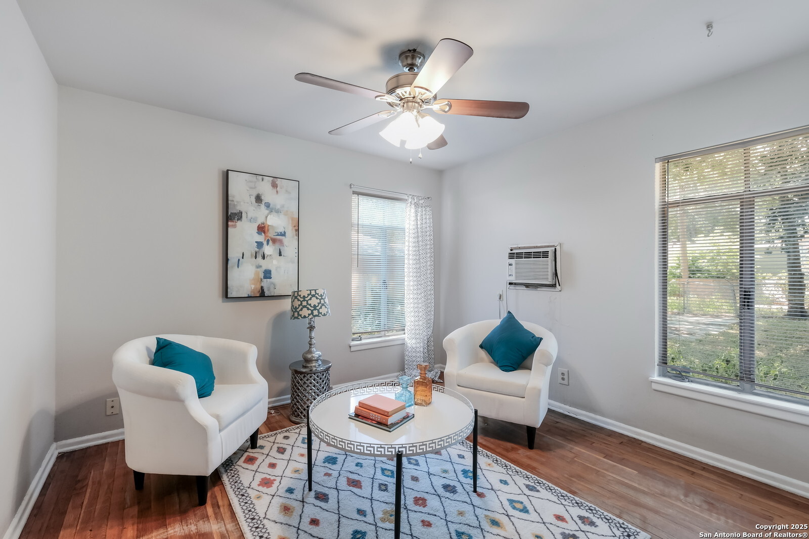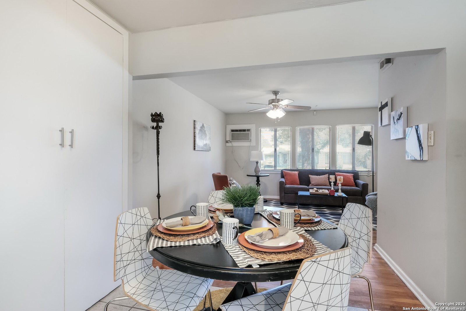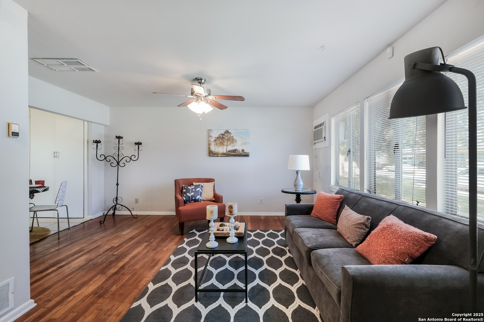 Move-in ready! This charming 2-bedroom, 1-bath, single-story rental home in the established Dellview community offers a convenient central location near the Medical Center, USAA, and major routes, including Loop 410 and I-10. Everyday essentials-restaurants, shopping, grocery stores, and neighborhood services-are just minutes away, creating an ideal hub for comfortable city living. Inside, the home features a functional layout with wood flooring in the main living areas and fresh interior paint. The bright eat-in kitchen offers plenty of cabinet space and natural light from an oversized front-facing window. The living/dining combo provides a flexible layout for everyday use, while both bedrooms provide comfortable space with easy access to the full bath, which showcases classic mid-century tile charm. A spacious, fully fenced backyard is perfect for unwinding, gardening, or creating your own outdoor setup. Recent exterior updates further enhance curb appeal and usability. Residents will appreciate close proximity to Dellview Park, featuring green space, playgrounds, and the free City of San Antonio community pool. The home is also convenient to Dellview Elementary and other North East ISD schools. Up to two dogs are allowed (maximum 40 lbs each) with a pet deposit and monthly pet rent required.