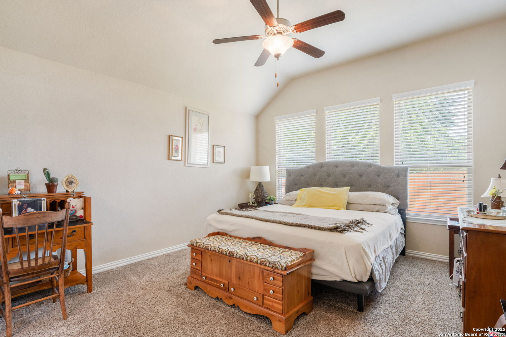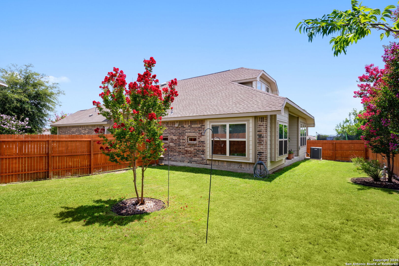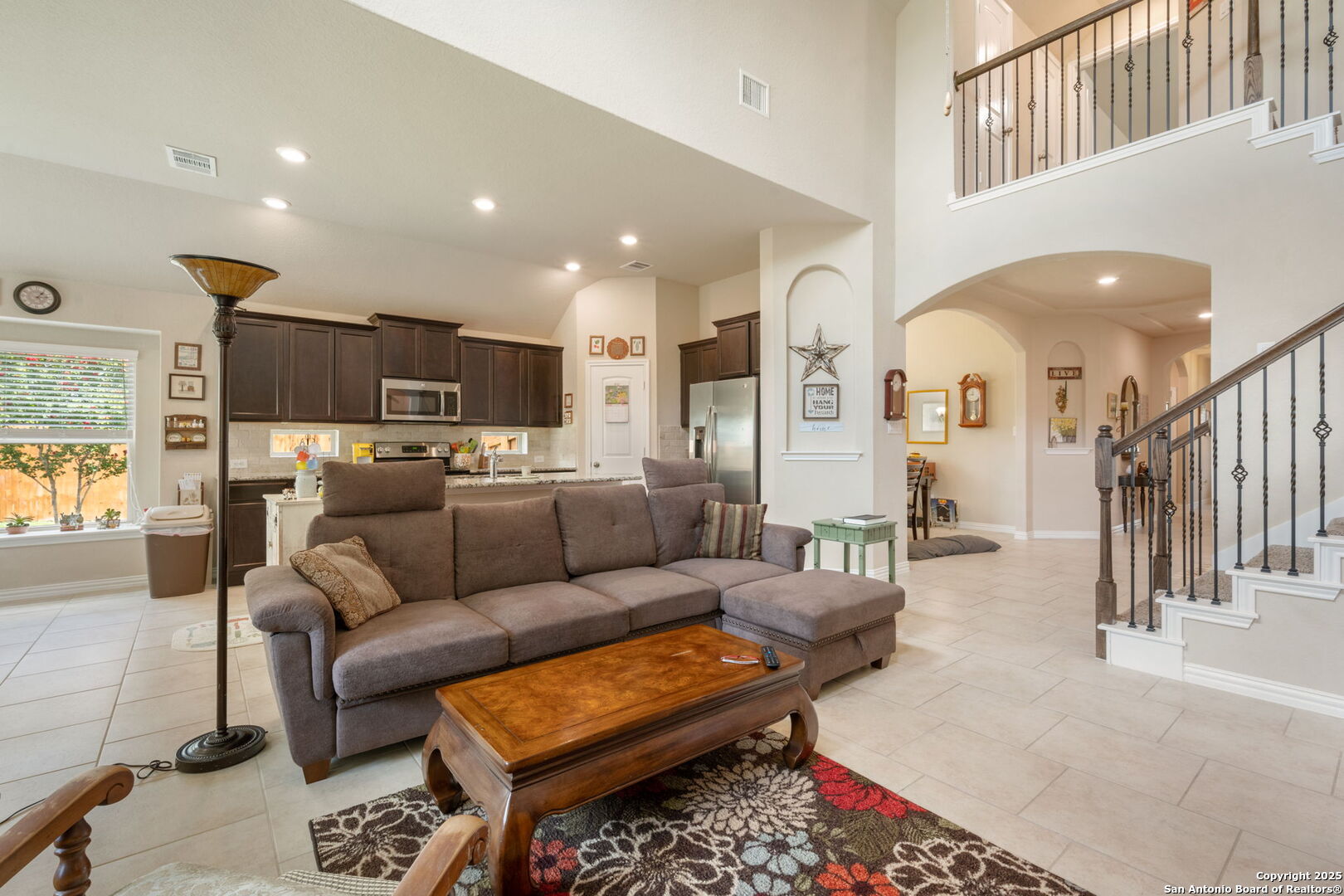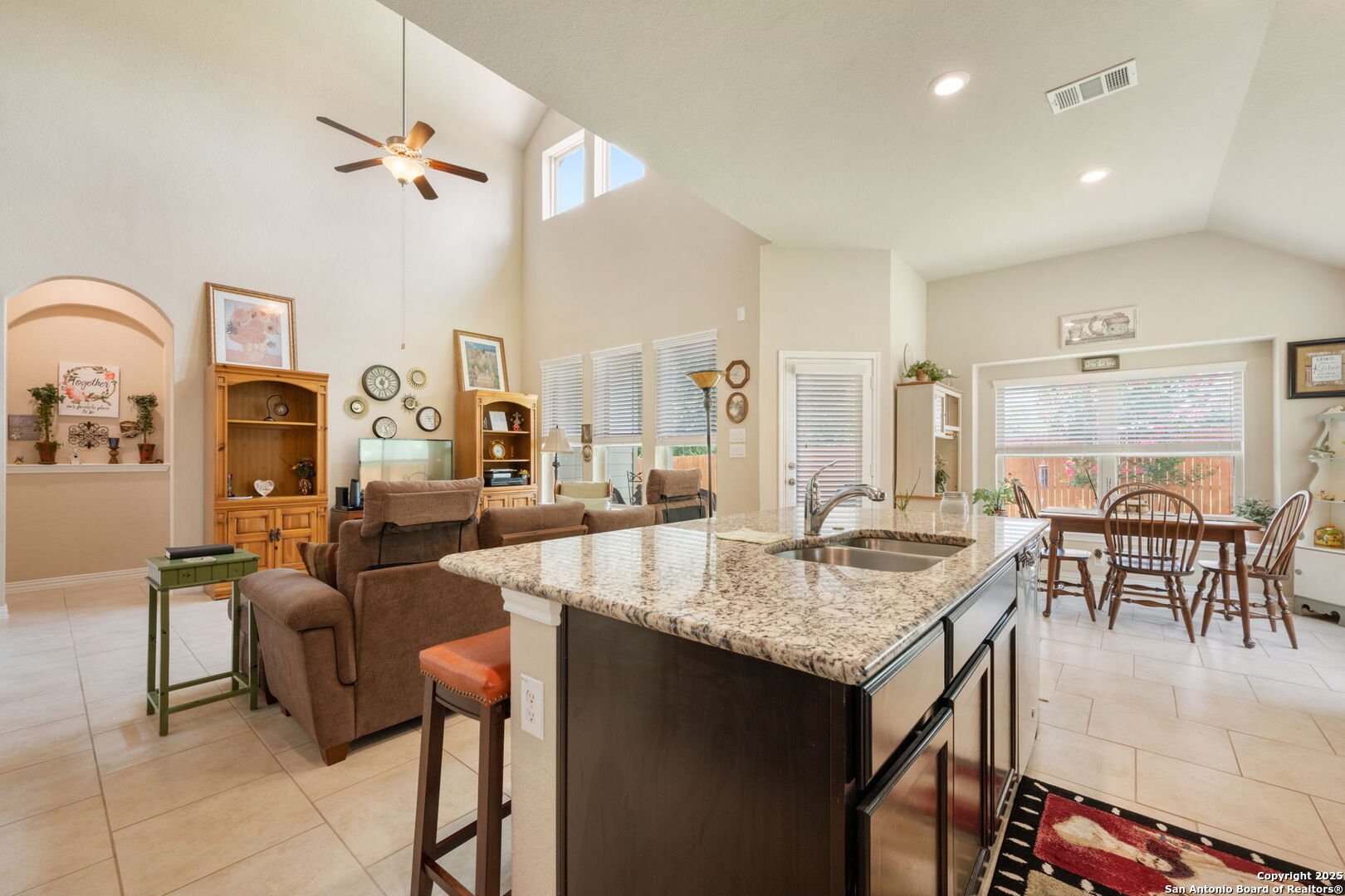 Immaculately Maintained 1.5 Story Beauty Near Randolph AFB! Welcome to this stunning 1.5 story home that blends style, space, and comfort. Boasting 3 sides of brick, this home offers long-lasting quality and great curb appeal. Step inside to an open floor plan filled with natural light, high ceilings, and oversized tile flooring throughout the main living areas. The heart of the home features a gourmet kitchen with granite countertops, stainless steel appliances, and an abundance of cabinet and counter space-perfect for entertaining or everyday living. All bedrooms are conveniently located downstairs, while a spacious loft with a half bath upstairs provides the ideal flex space for a game room, office, or guest suite. Additional features include tray ceilings, ample storage throughout, and major system upgrades-all windows, HVAC, water heater, and roof were updated in 2016. Enjoy peaceful outdoor living on the covered patio with no home directly behind you, offering privacy and tranquility. Located just minutes from Randolph AFB, and close to great shopping, dining, and schools, this home is the perfect blend of convenience and comfort. Don't miss your chance to make this pristine home yours!