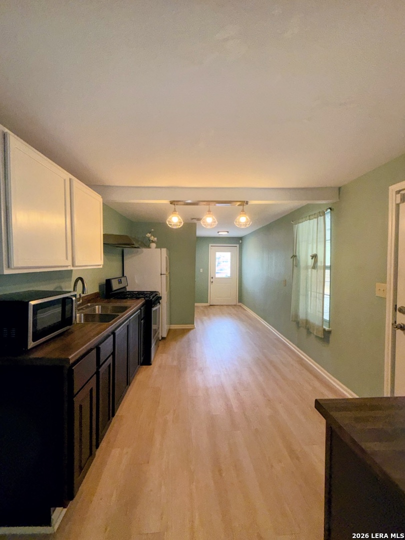 Welcome to this charming 2-Bedroom, 1.25 Bath home in Palm Heights!!! This delightful single-story home located on the southwest side of downtown San Antonio in the well-established neighborhood of Palm Heights. This inviting property invites you in with a spacious living room that feeds into the kitchen area with it's own eat-in area. Both bedrooms offer spacious living areas for your own privacy from the rest of the house and a hallway in between that hosts a shared bathroom with a single vanity with a convenient shower-tub combo. The backyard, shaded with mature trees, has a lot of versatility with a large decked patio that is great for entertaining or next grilling event!!! Ideally situated near downtown, this home provides easy access to dining, shopping and entertainment. It's prime location offers a great connectivity to these areas by access of Highway 90, IH-35 and Military Drive. Sold "As-Is," this home is move in ready and waiting for it's next family to plant their roots and grow new memories. We hope to see you soon!!!