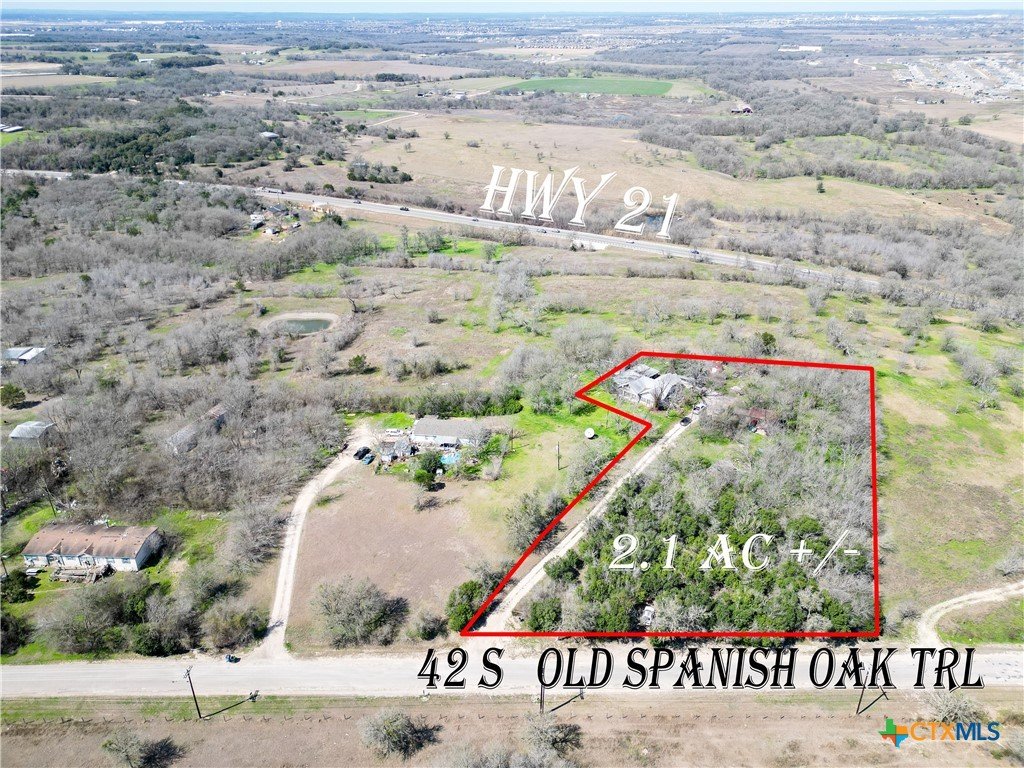 A secluded private driveway leads you to the hilltop of Old Spanish Trail, offering a rare opportunity to create your own sanctuary on 2 acres. The existing 4 bedroom, 1 bath home requires extensive repairs and can either be restored or removed to make way for new possibilities. The rear and eastern side of the lot is bordered with mature pecan and native trees adding a peaceful stillness and providing a welcome escape from the city's daily hustle. Enjoy the scenic views of open pastures and ponds, and in the evening, the soft glow of city lights on the horizon. Conveniently located just 15 minutes from San Marcos and Lockhart, and only 28 minutes from ABI Airport. 42 S Old Spanish Trl is also available. MLS 4639806. Please review showing instructions