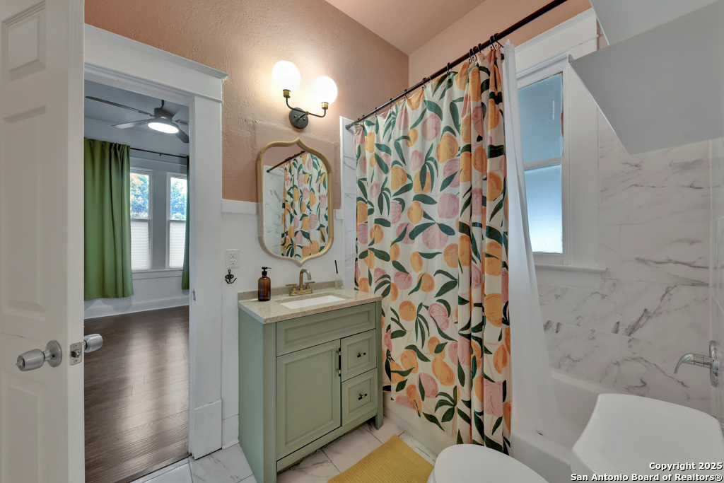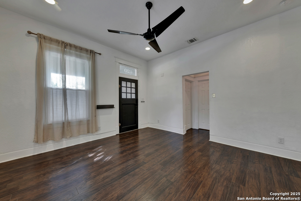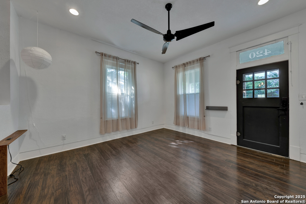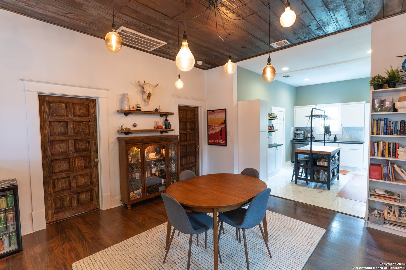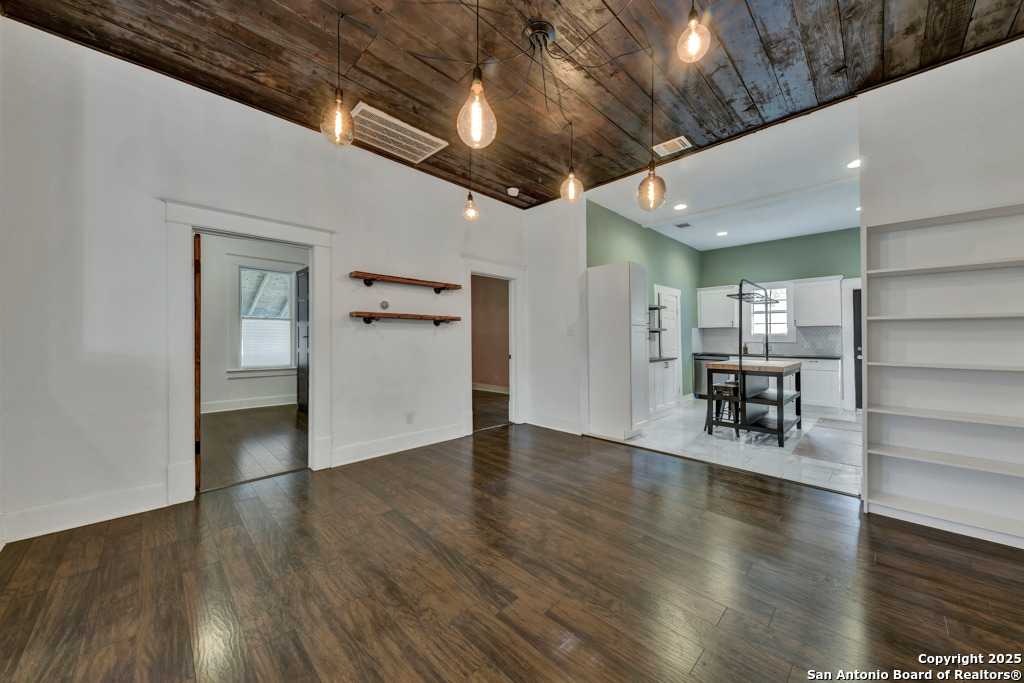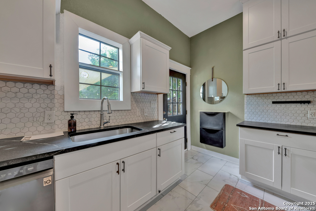 Experience the perfect blend of classic character and modern updates with this 3 bed, 2 bath single story home nestled in the heart of the Lavaca historic neighborhood. Built in 1910, the property highlights its heritage with reclaimed wood doors plus wood flooring while thoughtful renovations provide comfort and style for today's lifestyle. Step inside to an open floor plan that connects the living, dining, and kitchen areas. The island kitchen includes floor to ceiling cabinetry, leather finish granite counters and modern appliances. The primary bath, transformed in 2024, features an oversized shower and double vanity. The updated 2nd bedroom contains a wall length wardrobe with lighted storage. The exterior impresses with recently painted siding and a durable metal roof. A detached alley accessed two-car garage plus single-car carport provide ample parking rarely seen in this area. The backyard oasis is enclosed by a privacy fence and shaded by mature trees. Enjoy warm Texas days in the unique cowboy pool, perfect for cooling off or hosting gatherings. Located near downtown San Antonio and the vibrant King William district, this home places you close to the city's best dining, shopping, and entertainment, while still offering a peaceful retreat in a historic setting.