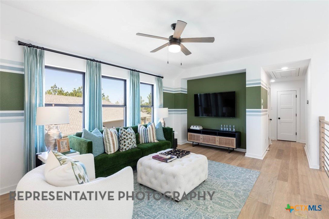 The Everette is a thoughtfully designed two-story home offering four bedrooms, three bathrooms, and an airy, open layout perfect for modern living. This home boasts an open concept kitchen, dining, and living space with large windows offering abundant natural light and a cozy atmosphere. Tucked at the back of the home, the primary suite provides a relaxing retreat with a spa-inspired bathroom and a spacious walk-in closet. With two bedrooms upstairs and a game room loft overlooking the living room, this home is the perfect balance of privacy and openness. Rates as low as 3.99 while funds last.