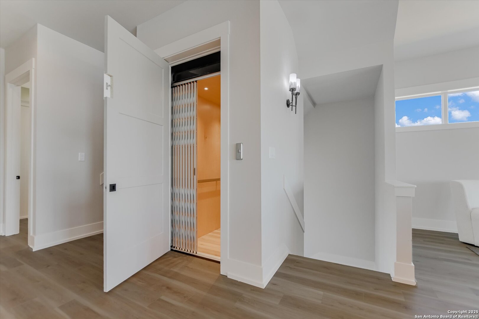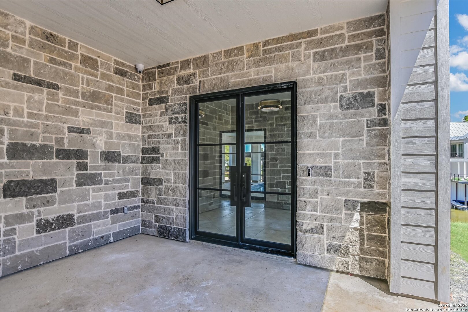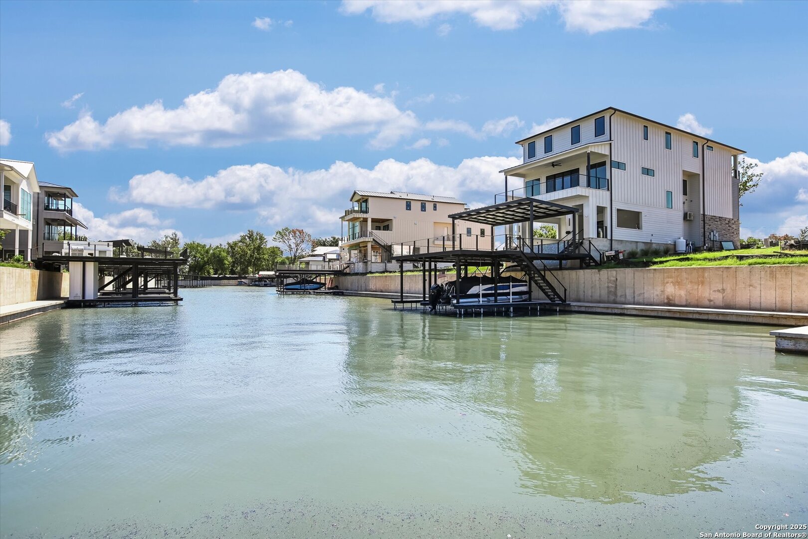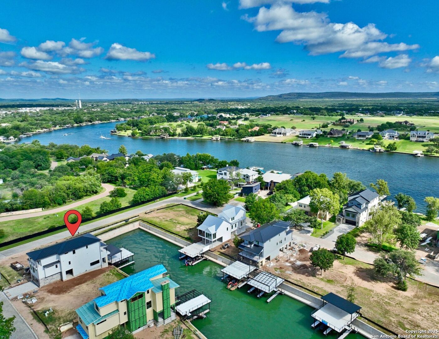 Set on the constant-level waters of Lake LBJ, 420 Lake Street presents a refined new construction residence within The Drace, Kingsland's most exclusive gated waterfront enclave. With 3,966 square feet of thoughtfully curated space, five bedrooms, and 5.5 baths, and from the covered pool terrace to the private boat/PWC dock below, every level of this residence is designed to elevate life on the water. The main living level unfolds in an open floor plan, centered around a marble fireplace and surrounded by expansive windows that blur the line between indoors and out. The kitchen is designed to impress and perform, with custom cabinetry, quartz countertops, a 48-inch gas range, double ovens, and a well-appointed butler's pantry with wine storage. Upstairs, four private guest suites include a custom bunk room with four built-in beds, plus a lounge. Outdoor spaces are covered for year-round enjoyment and include a swimming pool, outdoor kitchen, and multiple balconies. An elevator connects all levels, while modern conveniences include an EV charging station and a comprehensive security system. The Drace amenities include a private boat ramp and overflow parking for vehicles and trailers, supporting both full-time living and short-term rental use. This home was built to modern elevation standards and is situated outside the flood plain, eliminating the need for mandatory flood insurance, offering peace of mind and significant annual savings, plus serving as a major asset for future resale value.