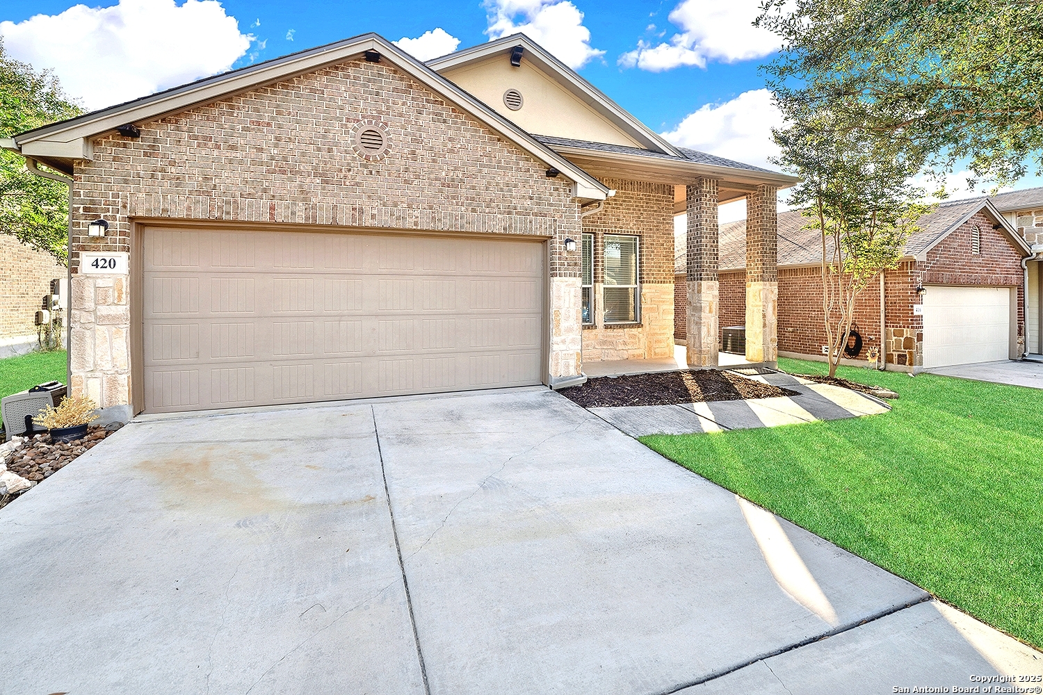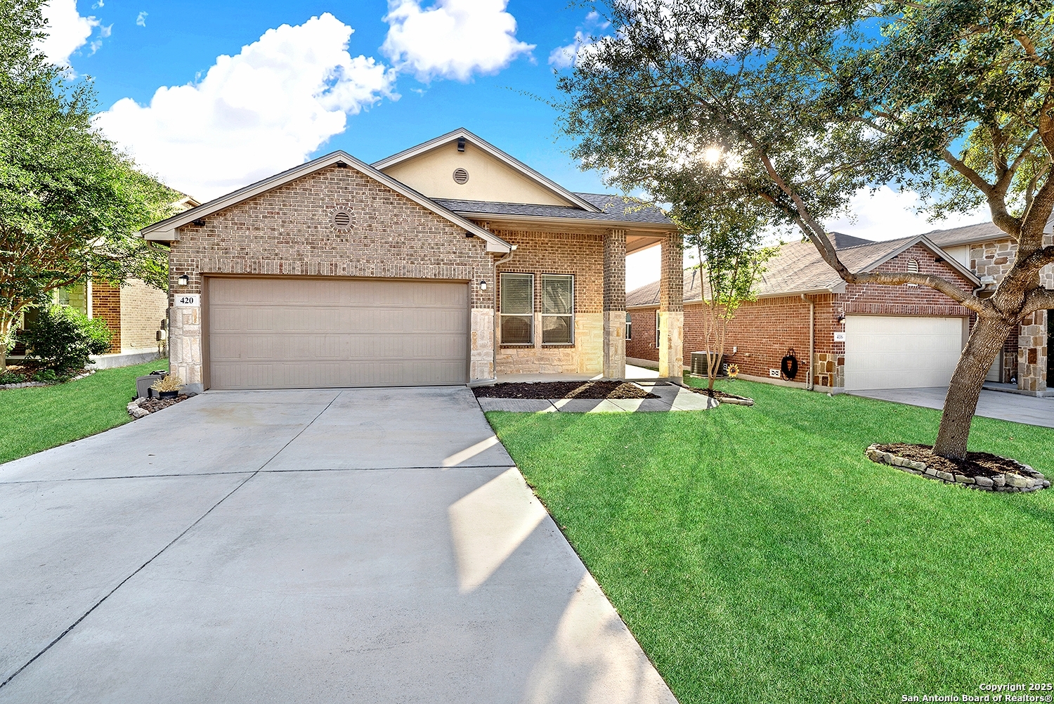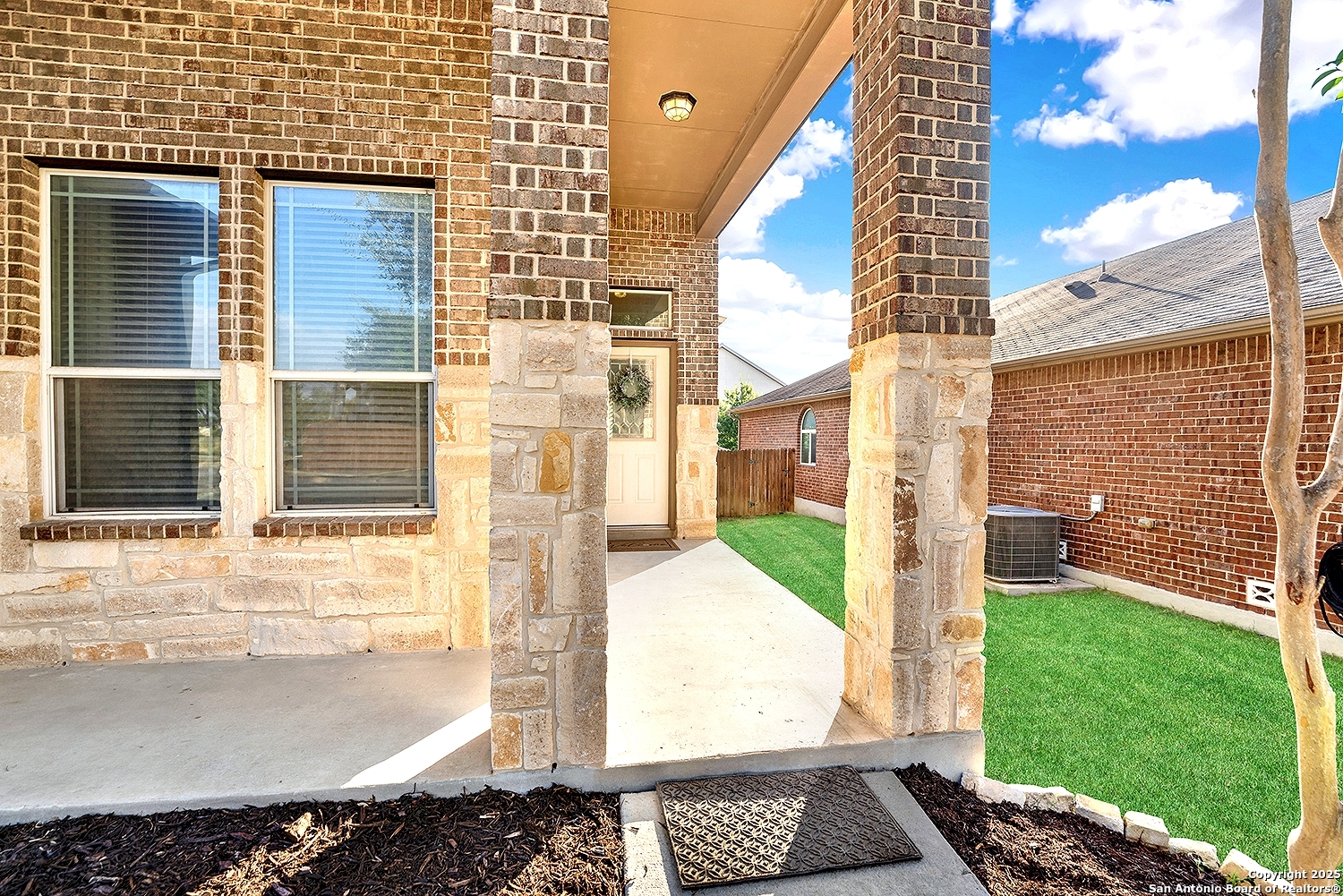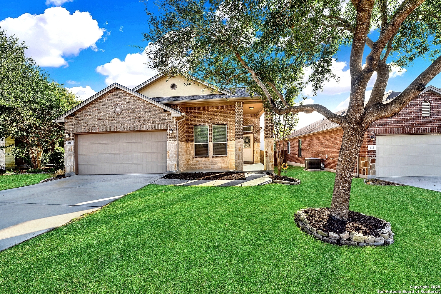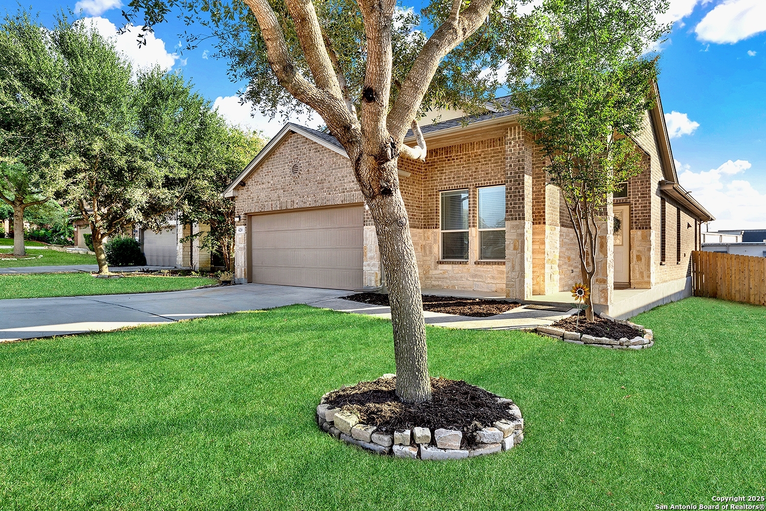 Exquisite 1 Story 4-Sided Brick Home in the highly sought-after Turning Stone community in Cibolo! Ideally situated just minutes from Randolph AFB, Cibolo's charming Main Street, top-rated schools, and vibrant shopping centers * 3 Bedrooms, 2 Full Bathrooms * Step inside to discover a bright and open layout with tall ceilings throughout * The kitchen featuring Stainless Steel Appliances, Tile Backsplash, 42" Cabinets-all overlooking the inviting family room * The split primary suite boasts Double Vanities, a Large Walk-In Closet, a Soaking Tub, and a separate Shower * The thoughtful layout continues with two additional bedrooms offering ample space for everyone * Many upgrades to include 3 year old HVAC, newer Water Heater, newer Roof, newer microwave, newer fence, gutters, walk-in shower in secondary bathroom and newer LVP Vinyl Flooring * Outside, enjoy the Covered Patio that overlooks a privacy-fenced backyard perfect for outdoor relaxation and entertaining * Very short walk to Turning Stone's vibrant community amenities including a sparkling pool, basketball and tennis courts, a volleyball court, and more-ensuring endless opportunities for recreation and leisure * Close to military bases and shopping * Don't miss this the chance to own a Very Well Maintained Home and make it yours!