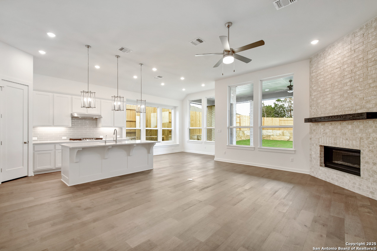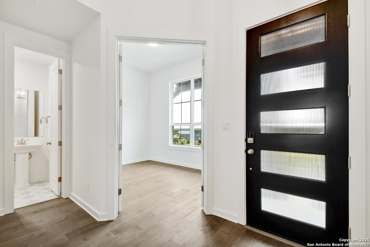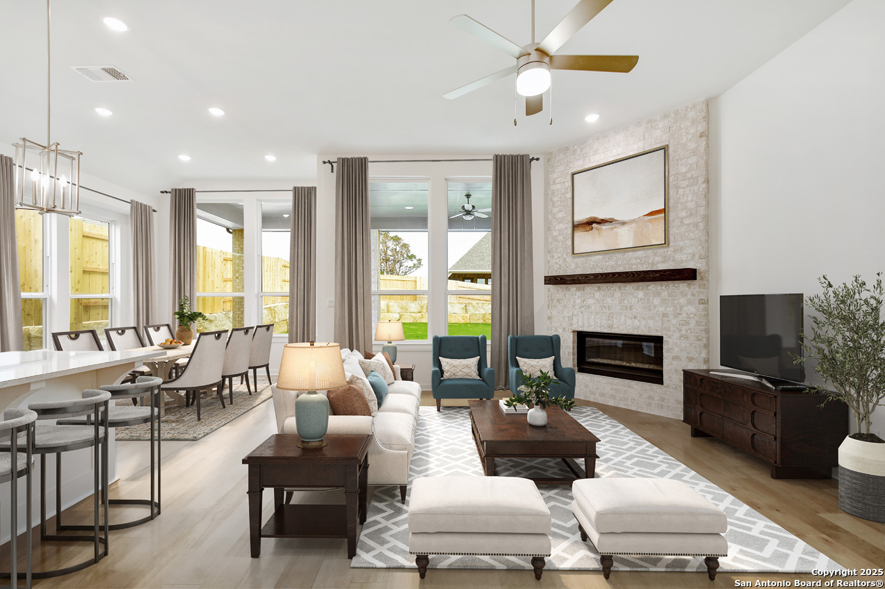 Experience the charm of the Denton plan by Highland Homes, a stunning 1-story residence designed for comfort and style. Boasting 3 bedrooms, 2.5 full baths, a dedicated Entertainment room and a front study, this home is perfect for modern living. The exterior features eye-catching brick and stone masonry and beautiful curb appeal on an oversized lot. Step inside to discover wood floors, 8-ft interior doors, and a spacious kitchen with quartz countertops, and an oversized patio for outdoor entertainment. The primary suite offers a serene retreat with a bay window and a spa-like bath featuring a freestanding tub. This home seamlessly blends elegance and functionality for your ultimate enjoyment.
