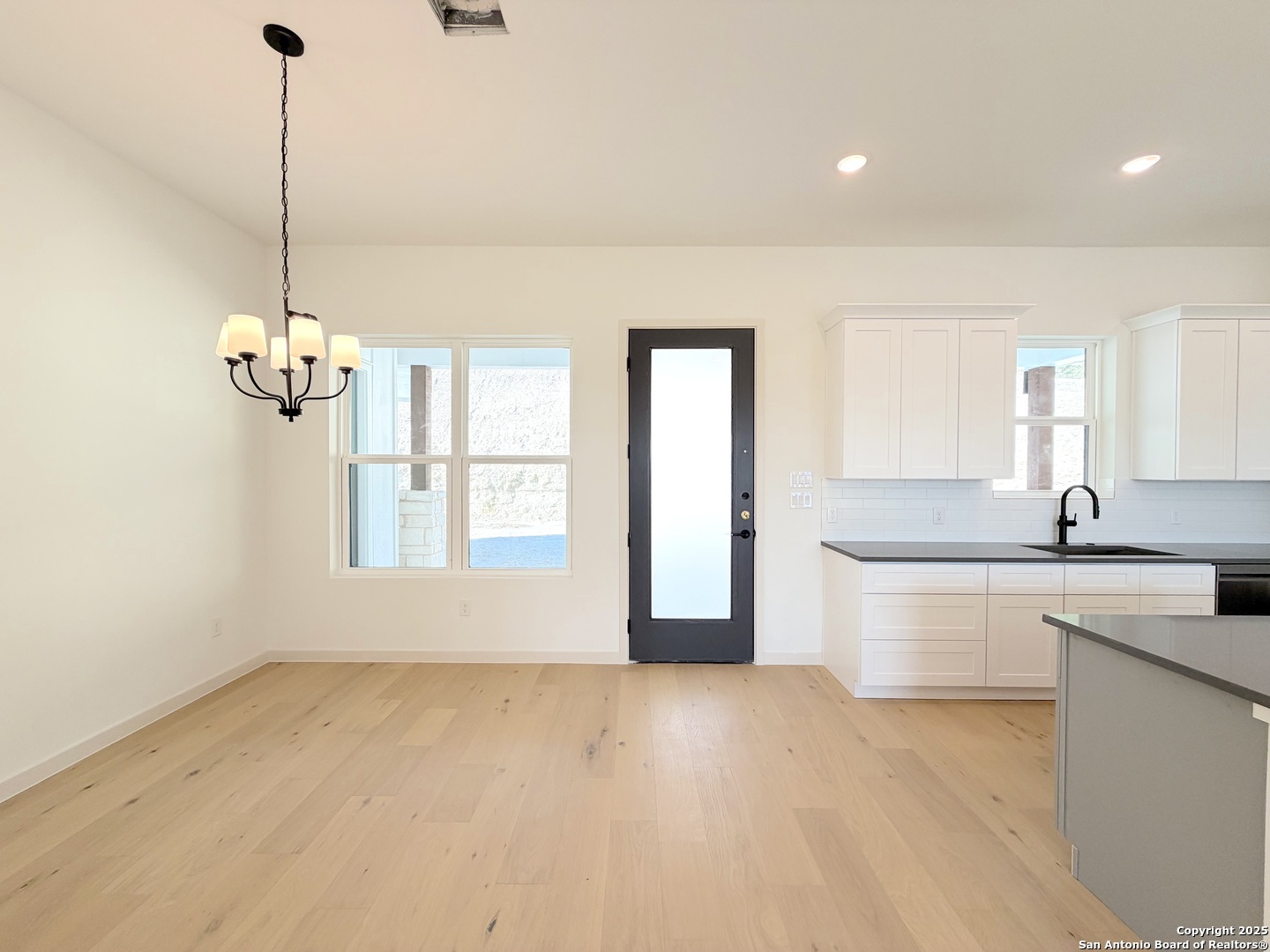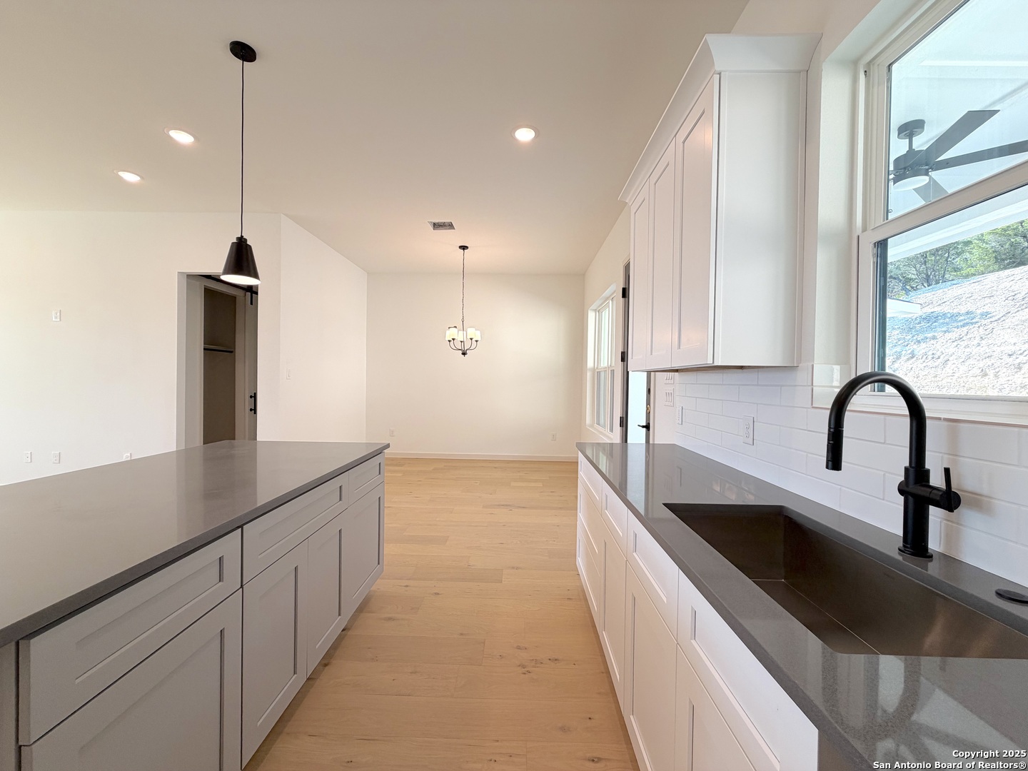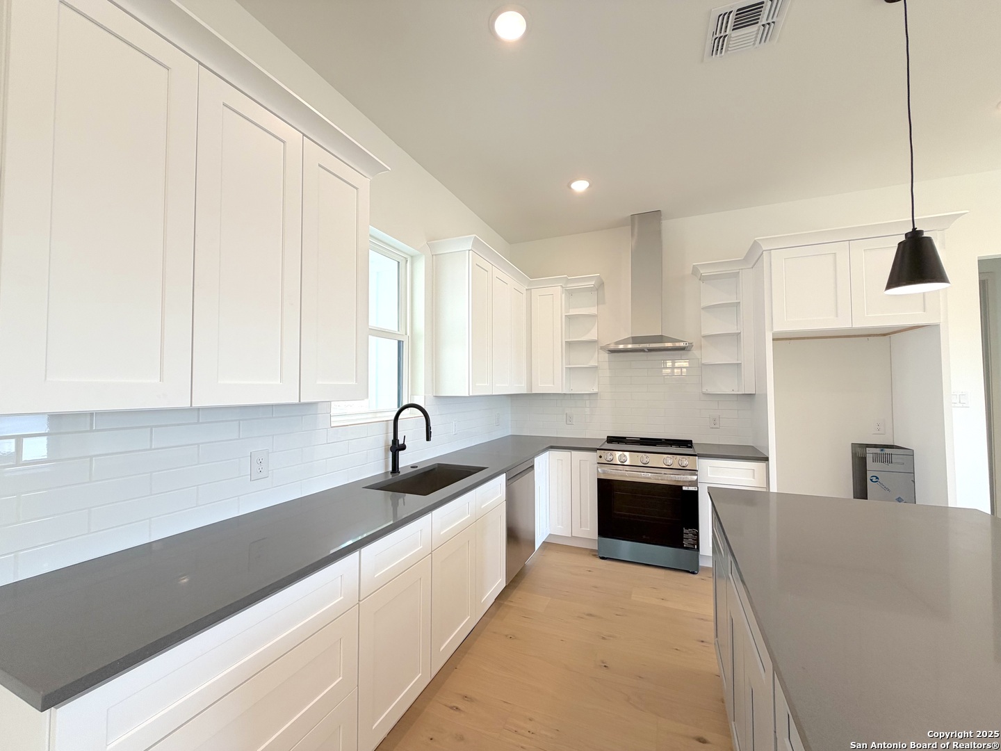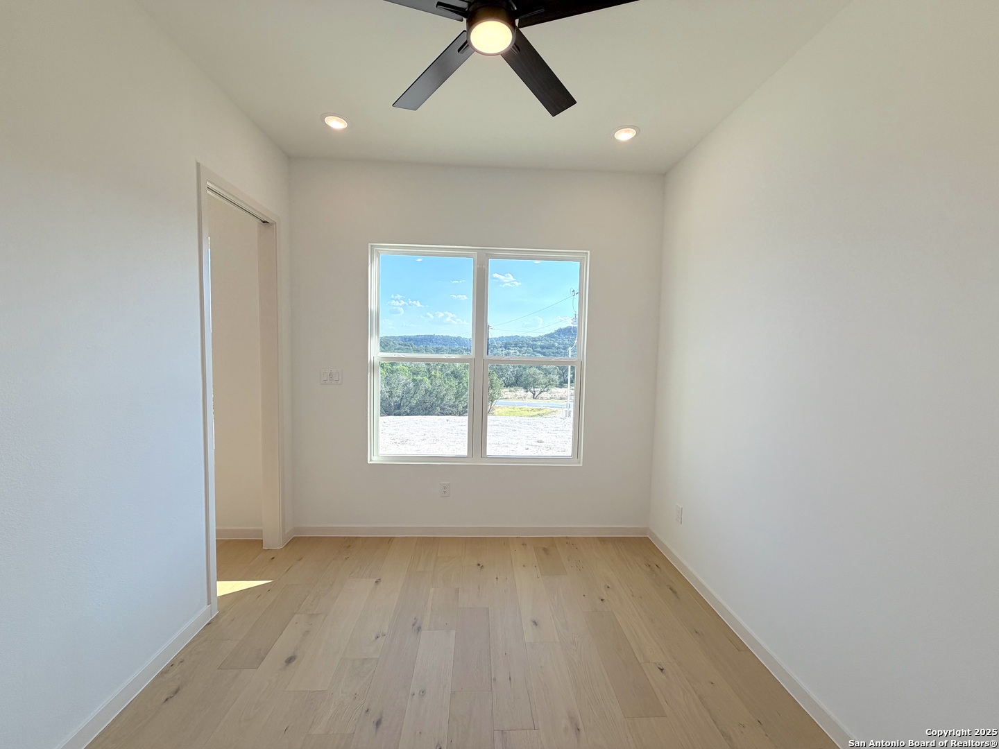 Welcome to your future dream home in the beautiful new subdivision of Sendera Vista in Canyon Lake. Nestled on a spacious one-acre lot, this stunning home offers breathtaking panoramic views of the Texas Hill Country, providing the perfect backdrop for peaceful living. Designed with comfort and functionality in mind, the open floor plan features soaring 11-foot ceilings in the family room, creating a bright and airy space ideal for relaxing or entertaining. Durable and stylish laminate and vinyl flooring run throughout the home, combining low maintenance with modern appeal. The kitchen is a chef's delight, complete with a central island, granite countertops, and sleek stainless steel appliances. Whether you're preparing meals for family or hosting guests, this space is as practical as it is beautiful. Adjacent to the main living areas are three generously sized bedrooms and a dedicated office-perfect for remote work or a quiet study space. The primary suite is a true retreat, offering a spacious bedroom, a luxurious bath with dual sinks, a walk-in shower, and an expansive walk-in closet. Step outside to enjoy both front and rear covered porches, ideal for sipping coffee or watching sunsets over the rolling hills. Additional features include a side-facing two-car garage with a concrete driveway, providing ample space and curb appeal. With no HOA restrictions, this property allows for poultry and horses, giving you the freedom to enjoy a more rural lifestyle while still being just minutes from local dining, shopping, and recreation.