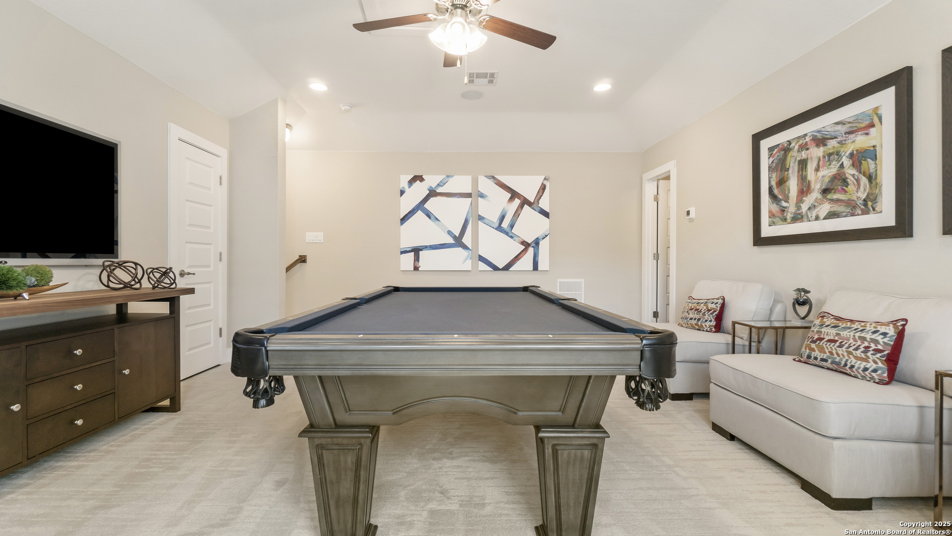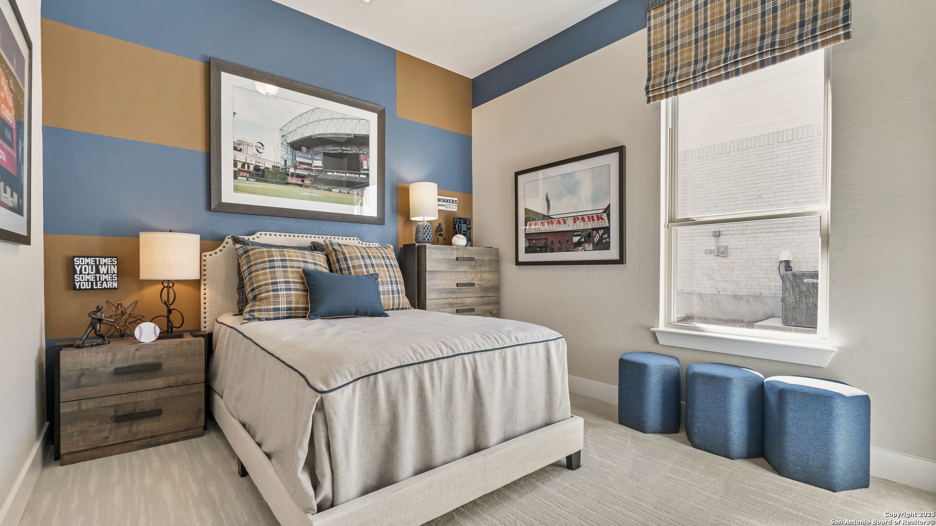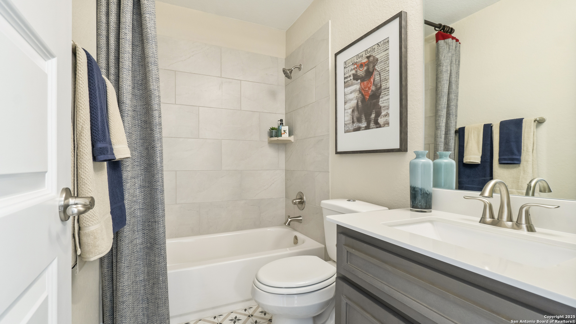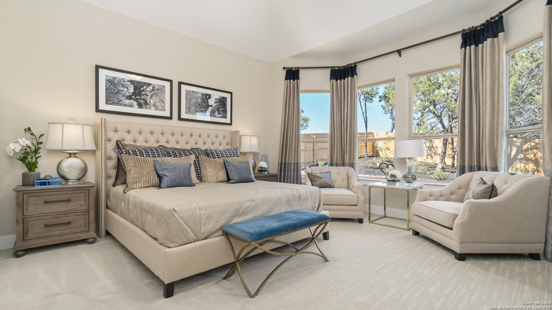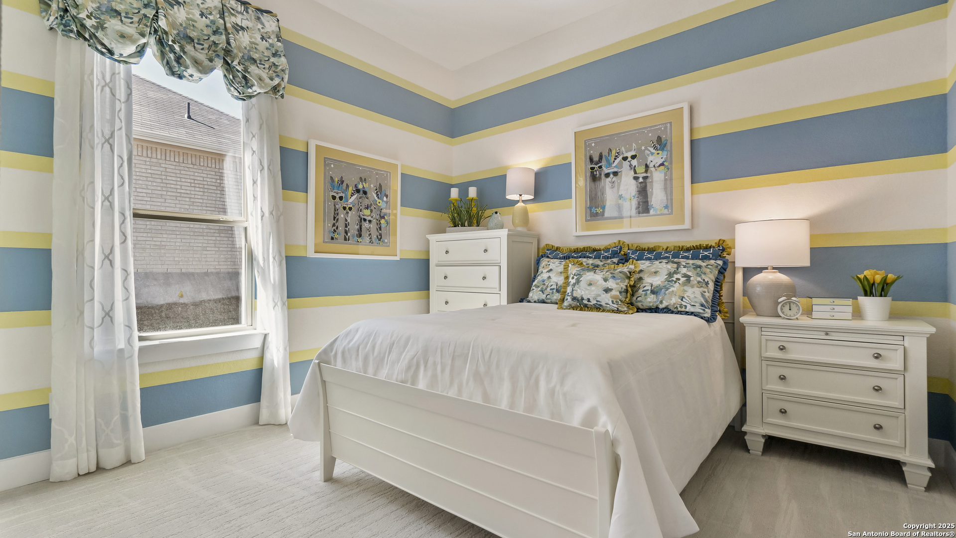 The Rollingwood is a perfect plan to consider whether you are just starting your family or you are empty-nesters wanting to downsize. This former model home is an open-concept floor plan with 3 bedrooms, 3 baths with loft/bonus space up, measuring 2,200 sq. ft. The home comes equipped with GE stainless steel appliances including a built in microwave and single oven, dishwasher, gas cook top, and a side by side stainless steel French door refrigerator. Additional structural and design upgrades include a study with glass barn-doors, level 4 quartz counters throughout, wood flooring in main areas, custom mud-bench off the 3 car garage, morning kitchen/coffee bar with custom cabinetry and two walk-in pantry areas for plenty of storage. The high ceilings with ample lighting at the family and dining area is the perfect place for gathering with family and friends. Venture up to the bonus room for more space to entertain and gather and enjoy the gorgeous view of the hill country. Retreat to the primary suite with bay window, walk-in shower with upgraded tile, linen closet, private water closet and 36" dual vanities. Exit the primary walk-in closet through a door directly into the laundry room for your convenience. The home also includes a home security system, ring door bell, keyless entry front door, tank-less water heater, water softener loop, and garage door opener. The fully sodded front and back yard with additional landscaping comes with a 6 foot privacy fence and in-ground programmable irrigation.