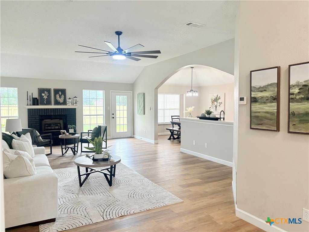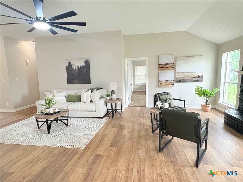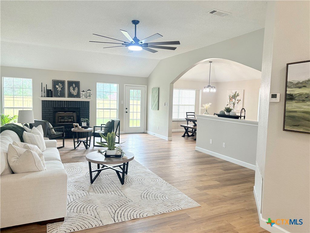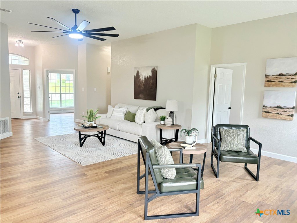 This beautifully updated home is move-in ready with fresh interior and exterior paint, brand-new flooring throughout, and modern light fixtures. The kitchen shines with freshly painted cabinets and new appliances, while the spacious, open living room offers a perfect space for relaxing or entertaining. Enjoy peace of mind with a new HVAC system, water heater, and garage door. The large fenced yard, new privacy fence, and extended driveway add both functionality and curb appeal. Conveniently located near top-rated schools, shopping, and easy highway access, this home has it all!
