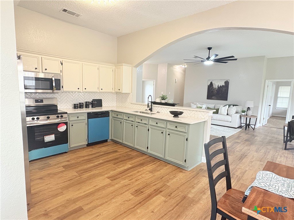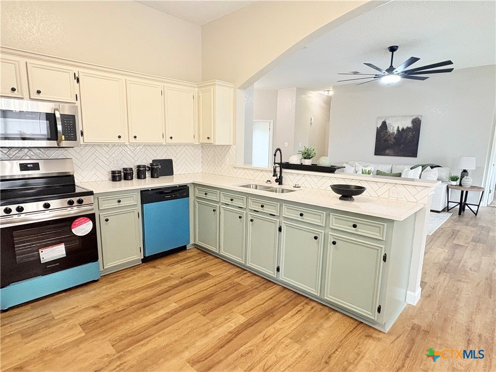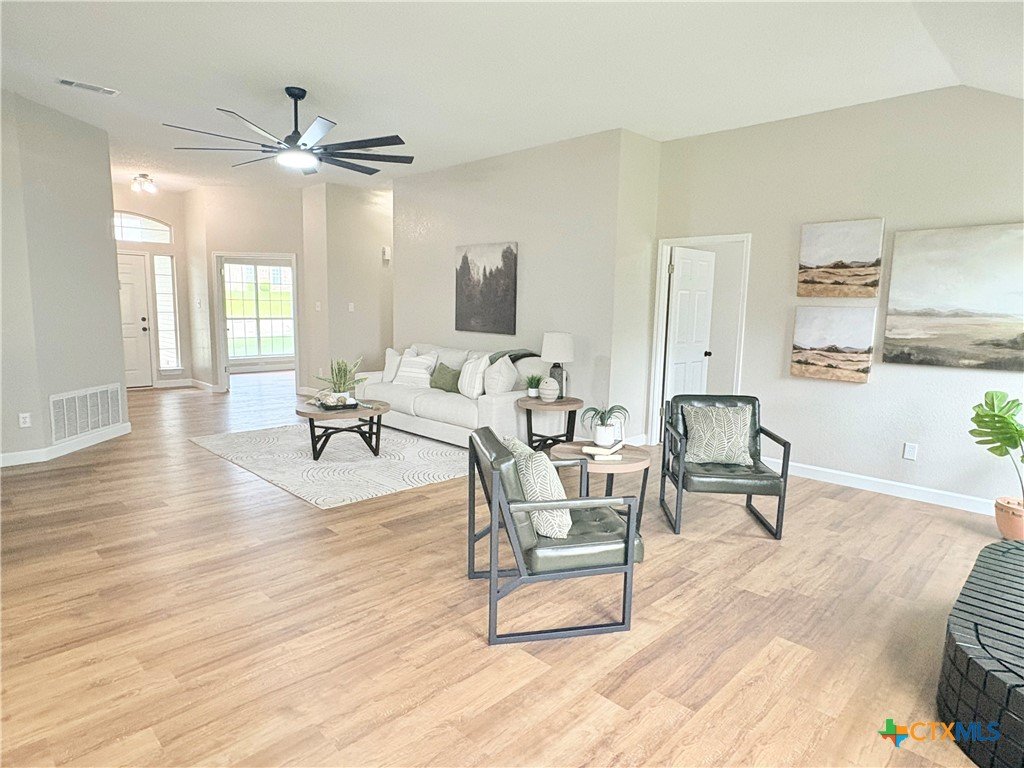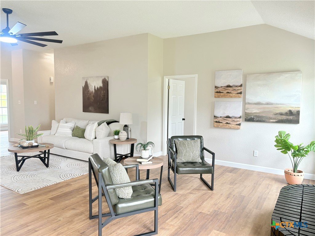 This beautifully updated home is move-in ready with fresh interior and exterior paint, brand-new flooring throughout, and modern light fixtures. The kitchen shines with freshly painted cabinets and new appliances, while the spacious, open living room offers a perfect space for relaxing or entertaining. Enjoy peace of mind with a new HVAC system, water heater, and garage door. The large fenced yard, new privacy fence, and extended driveway add both functionality and curb appeal. Conveniently located near top-rated schools, shopping, and easy highway access, this home has it all!