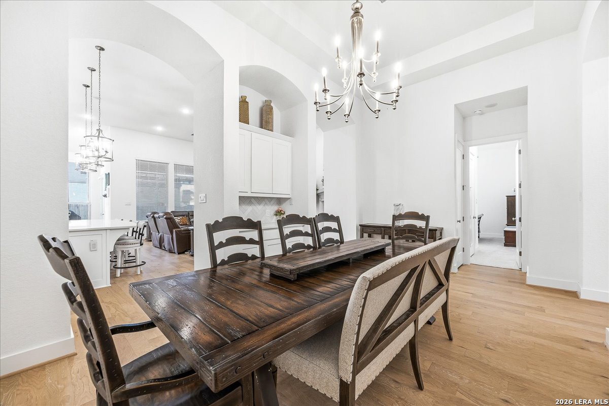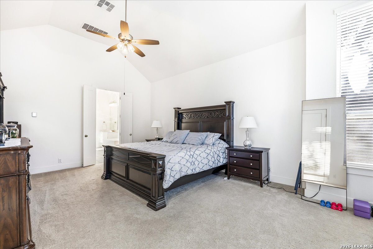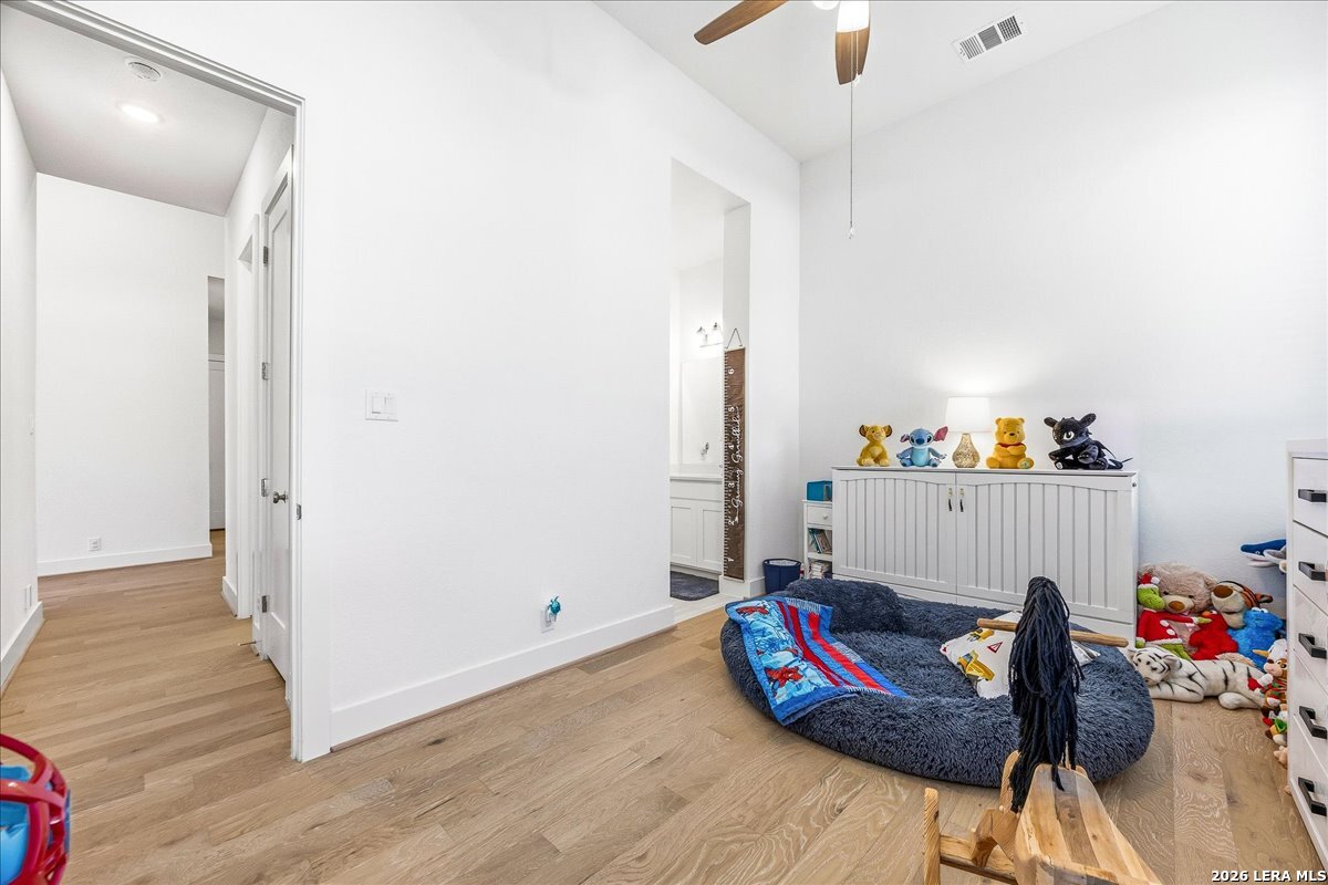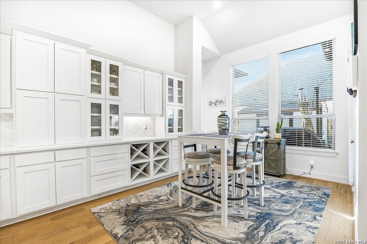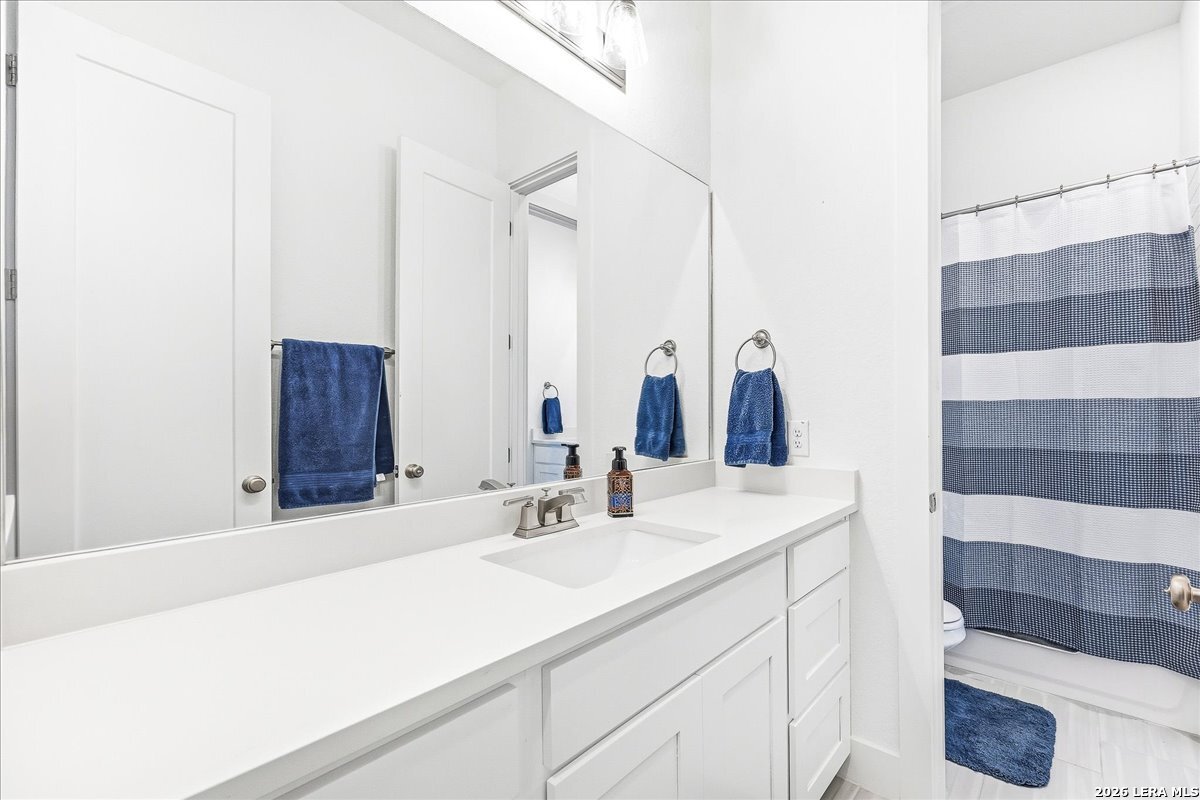 Welcome to this beautifully upgraded single-story home on a desirable corner lot in Cibolo. Offering 3,689 square feet of thoughtfully designed living space, this move-in ready property combines comfort, style, and functionality - all on one level. Since purchase, the homeowners have invested over $50,000 in additional upgrades, enhancing both the beauty and livability of the home. Inside, you'll find upgraded flooring throughout, including rich wood, tile, and plush carpeting, along with enhanced cabinetry, countertops, and a stylish backsplash that elevate the kitchen and main living areas. The bathrooms feature upgraded shower tile and flooring, creating a refined, spa-like feel. Custom 2" wood slat blinds throughout, ceiling fans in every room, and built-in internet drops in the bedrooms provide both comfort and modern convenience. Designed for flexible living and entertaining, the home includes a spacious game room plus a large private guest suite ideal for multigenerational living or extended stays. Step outside to a backyard built for enjoyment, featuring a substantial deck and pergola, permanent Astoria exterior lighting, and electrical service to both the deck and shed. Additional practical upgrades include full gutters, garage ceiling storage racks for excellent organization, and front and rear security cameras. Completing the property is a highly desirable three-car tandem garage, offering ample space for vehicles, storage, or hobbies. This exceptional home delivers extensive post-purchase upgrades, generous living space, and standout features in a prime corner-lot setting within one of Cibolo's most sought-after communities.