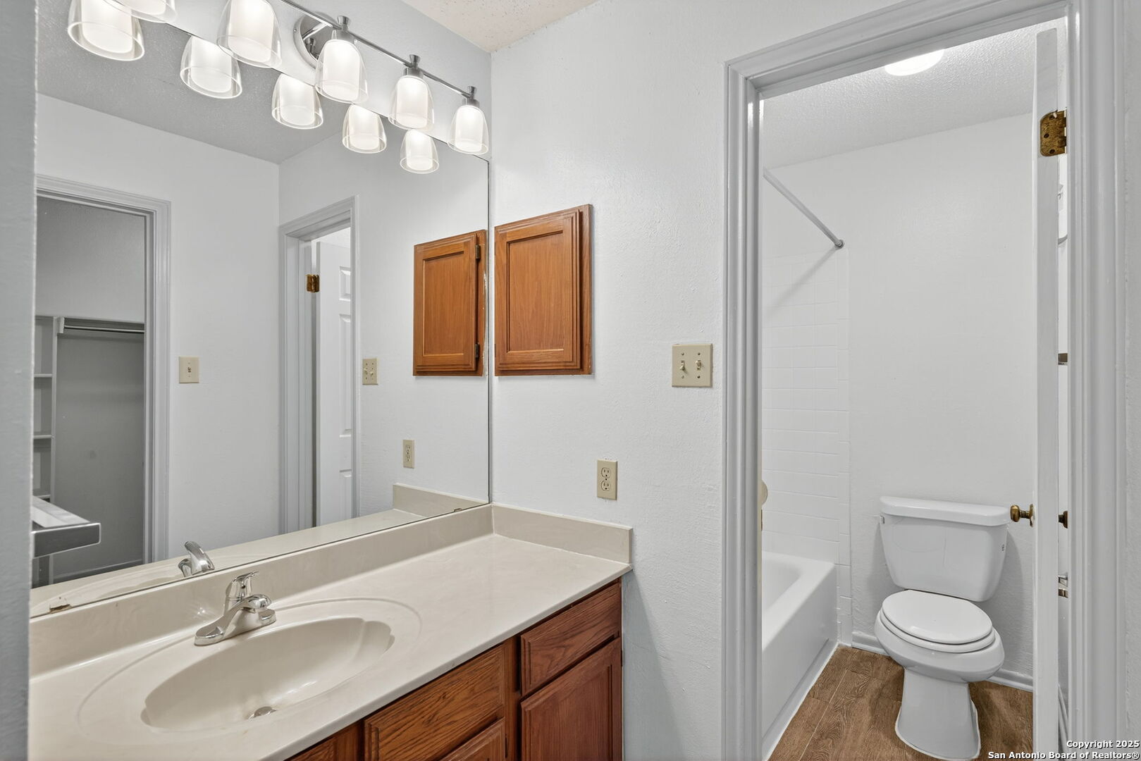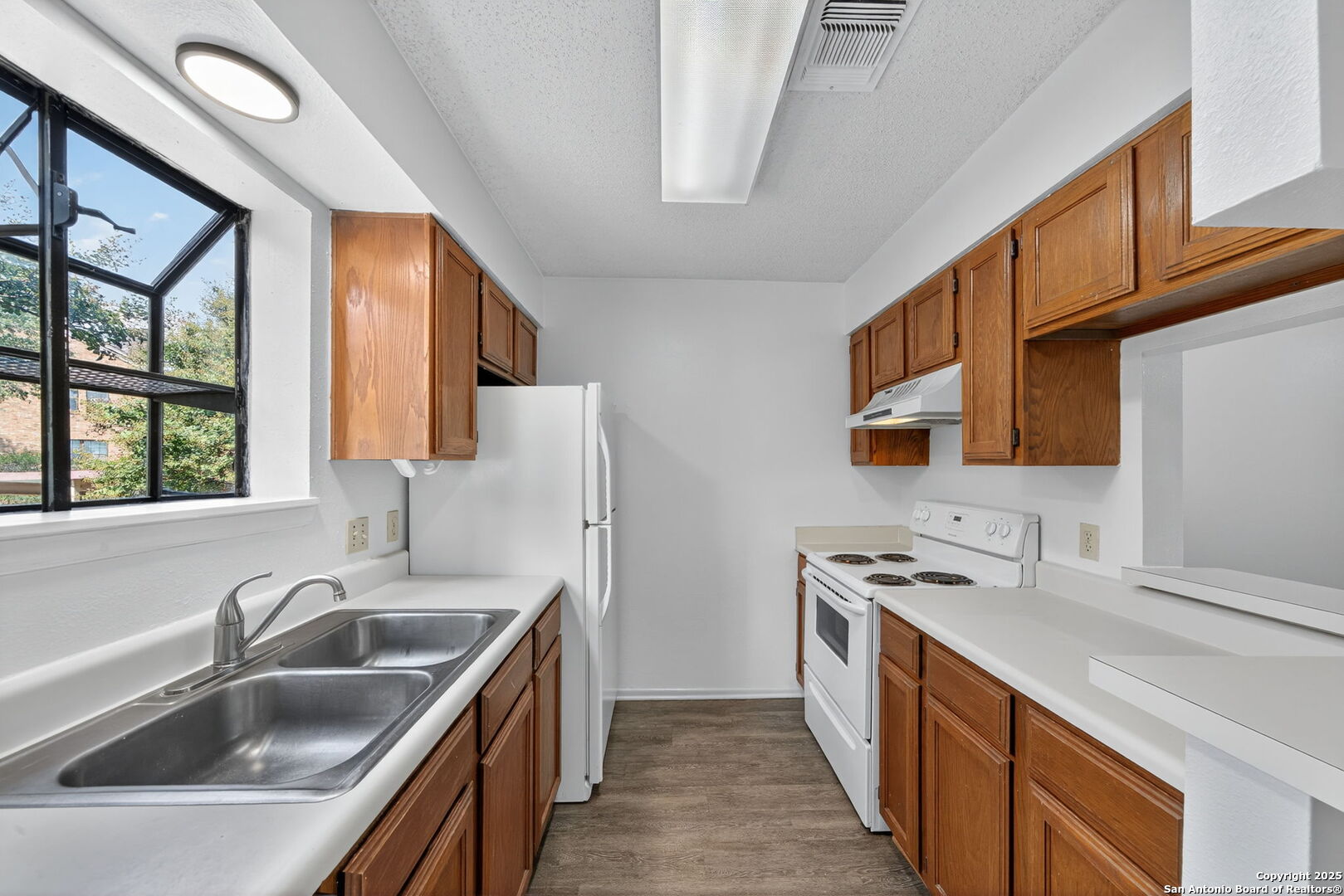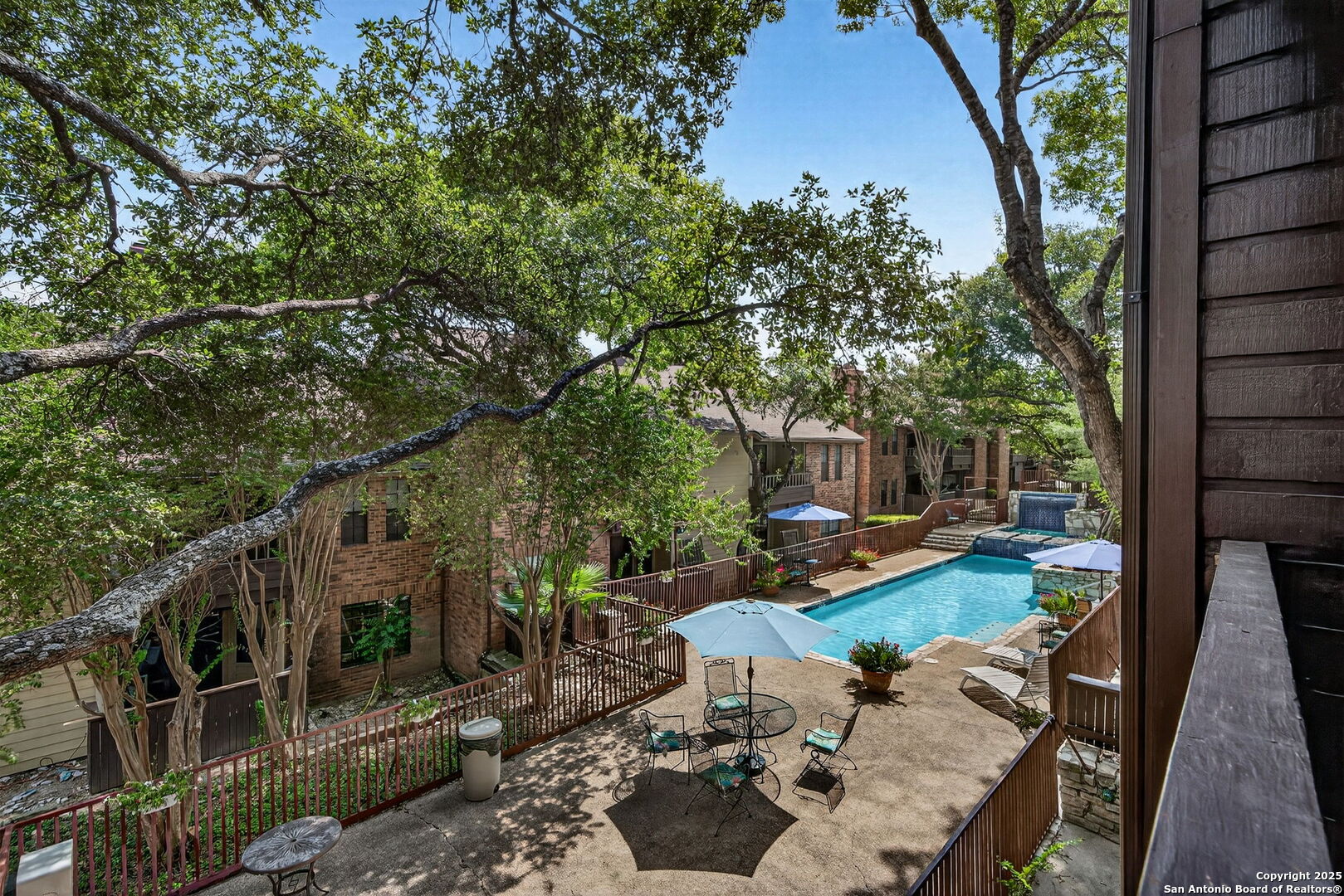 Welcome to Unit 1604 at Spyglass Hill Condominiums in the first building as you enter the gate that includes a personal covered parking space! It's the perfect home for those seeking both comfort and convenience in the heart of the medical center! This spacious 2-bedroom, 2-bathroom condo offers everything you need for easy, move-in-ready living, with a highly sought-after location just off Fredericksburg Rd, perfect for medical students, nurses, or physicians looking to be close to work and study. Move-In Ready Means that the washer and dryer, refrigerator, dishwasher, and stove are included! As you enter, you'll be greeted by an open floor plan with fresh two-tone paint throughout, creating a bright and welcoming atmosphere. The living area features a cozy wood-burning fireplace, perfect for unwinding after a long day, while large windows offer a view of the community pool just caddy-corner from your private covered patio-ideal for relaxing or entertaining on your downtime. The unit is modernized with updated light fixtures in the entryway, bathrooms, over the kitchen sink, and in the dining room, adding a contemporary touch to the space. The well-designed kitchen is functional and ready for meal prep. You'll have everything you need right at your fingertips including a brand new water heater. Enjoy the convenience of living in a controlled access community, with the added benefit of a bus stop just outside the main gate, making commuting a breeze. Whether you're heading to the medical center, exploring the vibrant surrounding area, or simply relaxing at home, this condo provides both an ideal location and a comfortable living space. Spyglass Hill Condominiums is the perfect place for those who need to balance work, study, and relaxation. With its move-in-ready features, modern updates, and prime location just minutes from the medical center, Unit 1604 offers everything a busy medical professional could need. Don't miss your chance to make this your home-schedule a tour today!