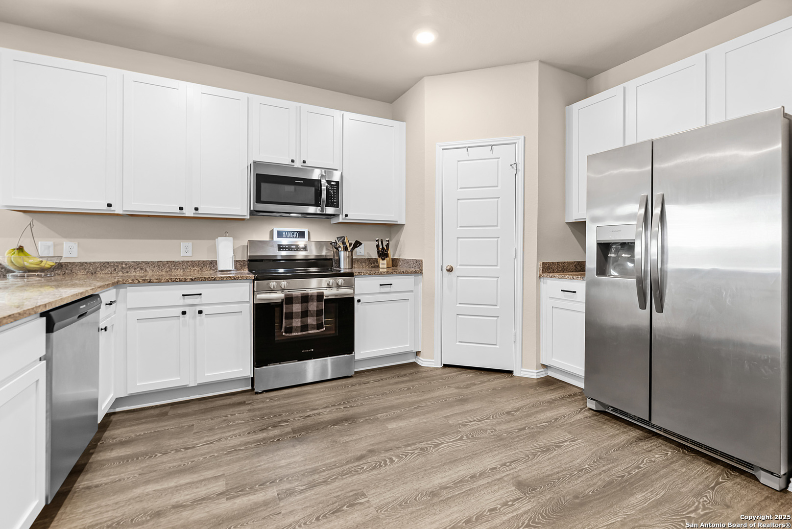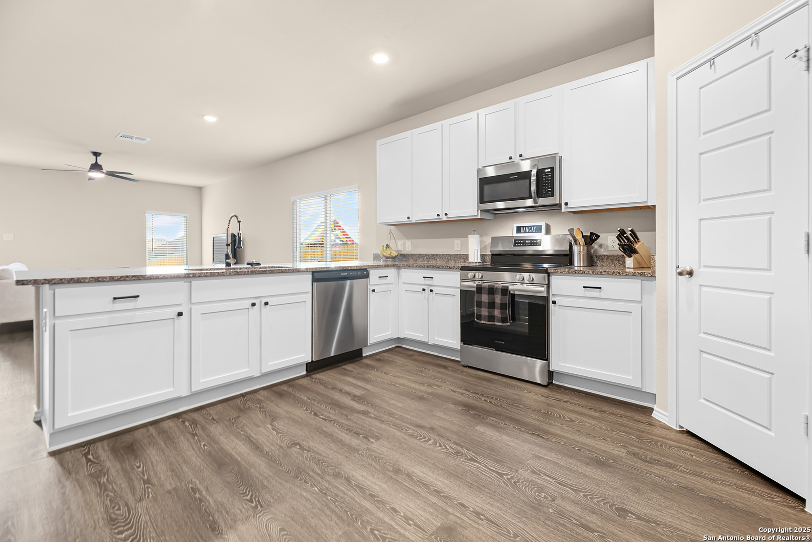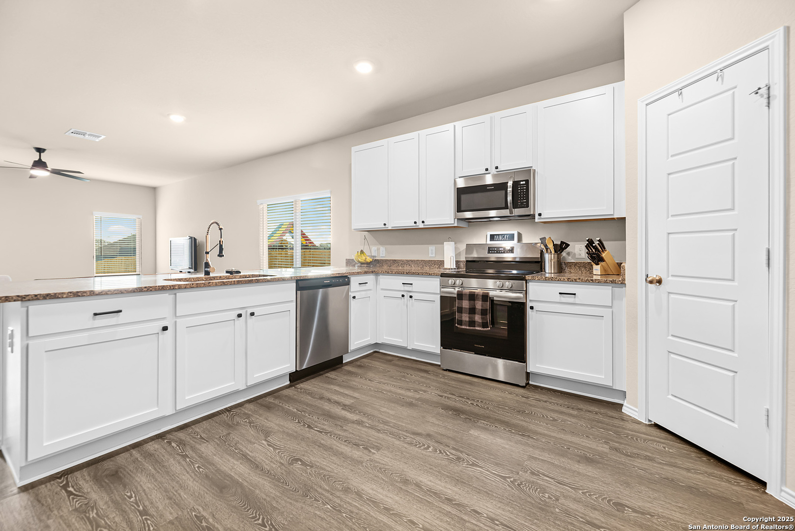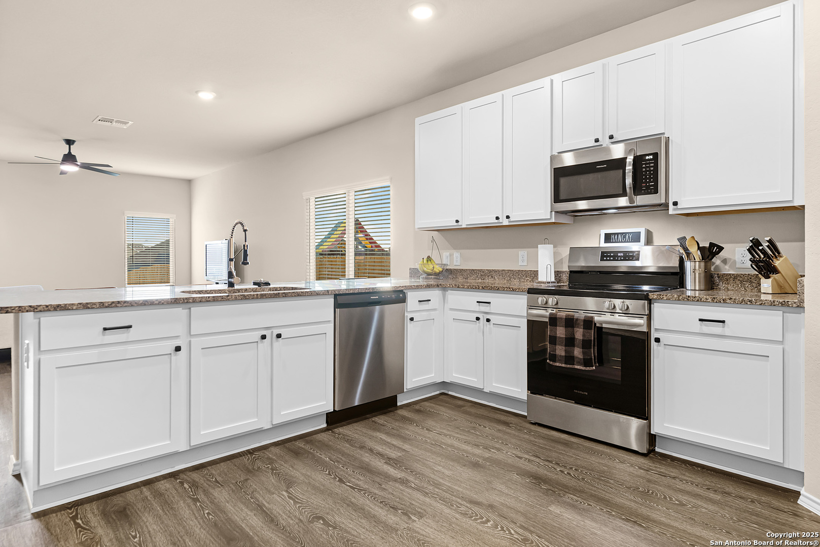 This home feels brand new - but it's even better! Not only does it offer modern style and comfort, it also comes with a low-rate assumable loan, making it as smart as it is beautiful. Inside, you'll find four spacious bedrooms, durable hard flooring throughout the common areas, and a stunning kitchen featuring white cabinetry, stainless steel appliances, a walk-in pantry, and an oversized breakfast bar perfect for gatherings. Step outside to enjoy the extended covered patio - ideal for relaxing or entertaining. Plus, a pre-listing inspection report is available for added peace of mind. Don't miss this one - schedule your showing today!