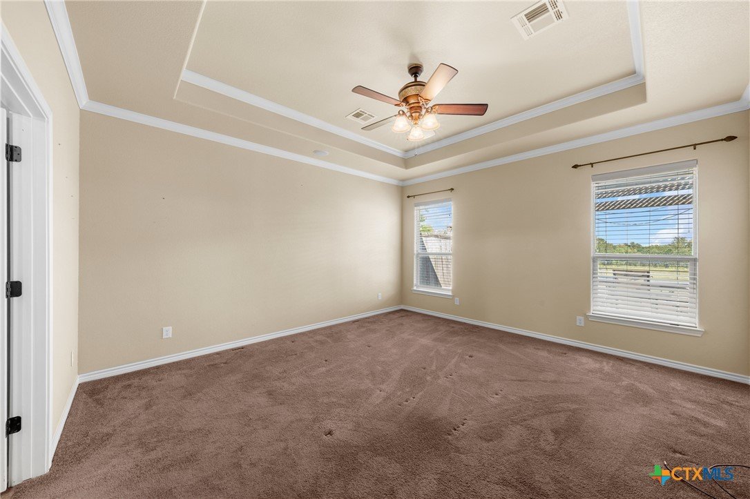 Discover refined country elegance in this stunning 3-bedroom, 2.5-bath custom home perfectly situated on 2.5 beautifully manicured acres. A stately brick driveway welcomes you home and a timeless front porch sets the tone for the quality and craftsmanship found throughout. Inside, you’ll find soaring ceilings, abundant natural light, and elegant tile floors that create a warm yet sophisticated ambiance. The open-concept layout is designed for both comfort and entertainment, highlighted by a gourmet kitchen featuring custom cabinetry, expansive countertops, and a layout that seamlessly connects to the dining and living areas. The primary suite offers a luxurious private retreat with a spacious ensuite bathroom and envious walk-in closet for two. Two additional bedrooms, a spacious guest bath, and a conveniently positioned powder room provide comfort and flexibility for family or guests. Step outside to enjoy the peace and privacy of the expansive grounds. A secondary detached garage-shop, plus the 24x36 workshop provides ample space for hobbies, storage, or business needs, while the picturesque pond adds to the tranquil country setting. The large backyard and expansive brick-paved patio are ideal for relaxing evenings or gatherings with friends and family. Located just minutes from Temple’s shopping, dining, and medical centers, this exceptional property offers the perfect blend of luxury, functionality, and country charm all within easy reach of city conveniences. Experience the elegance of 422 Callahan Loop where modern design, acreage, and timeless appeal come together to create the ultimate country estate.