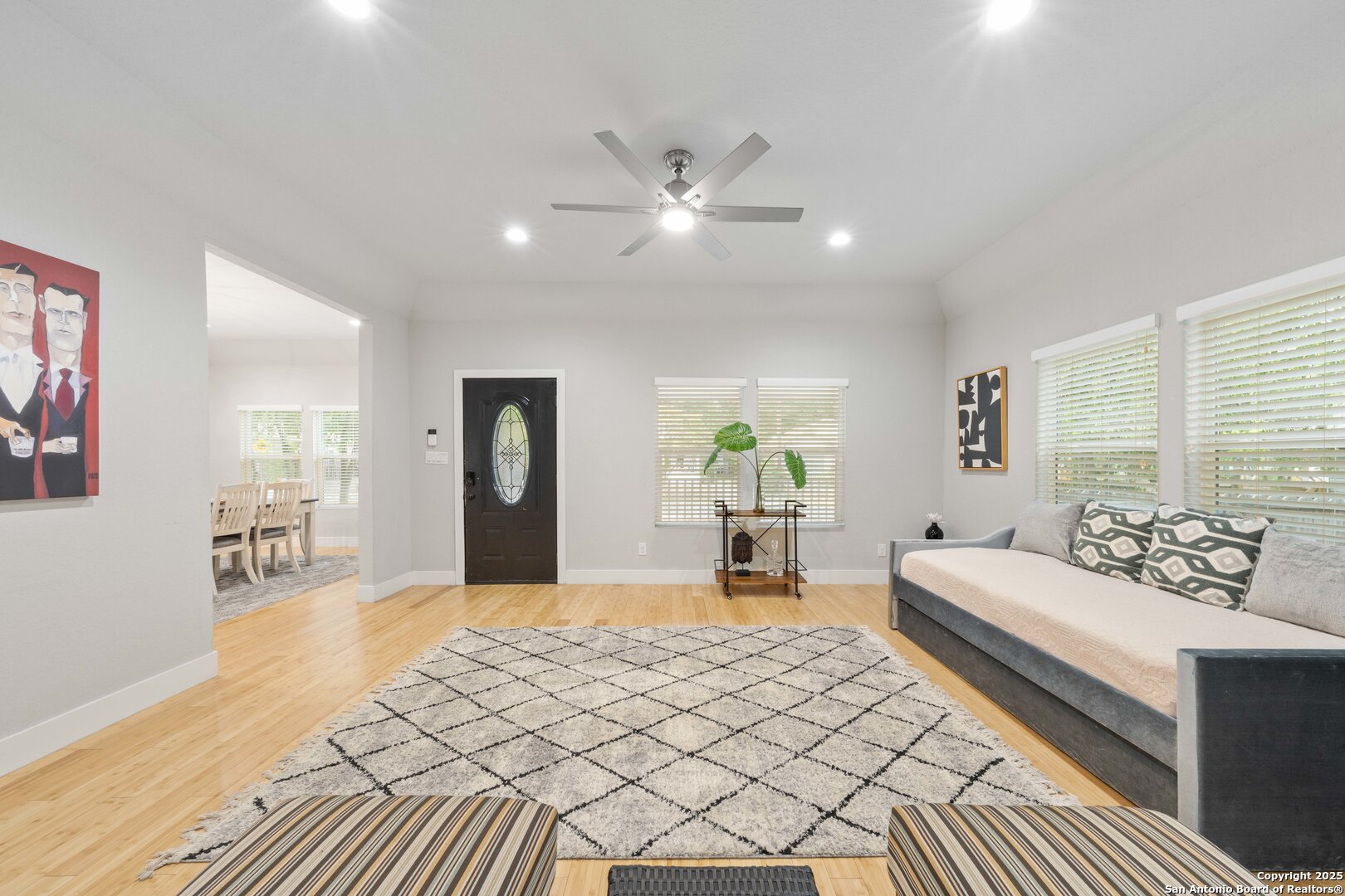 Welcome to 422 E. Woodlawn Ave., an extraordinary Craftsman-style cottage nestled in the heart of San Antonio's desirable 78212 zip code. This home is an exquisite blend of classic charm and modern elegance and was completely renovated and restored in 2021. The spacious open floor plan spans 2,786 sqft. and features an elevated, gourmet kitchen with quartzite countertops, custom cabinets, stainless steel appliances, and a gas cooktop. Exquisite white bamboo flooring extends throughout the property, unifying each room with a sleek and contemporary aesthetic. The luxurious primary suite offers tranquility and comfort complete with an en-suite bath featuring dual vanities, an oversized walk-in shower and a large walk-in closet. There are 3 additional spacious bedrooms plus two secondary bathrooms showcasing designer fixtures and modern designer tile. The dedicated laundry room is a must see! Outdoors, you'll find an inviting back patio perfect for relaxing and entertaining guests along with a covered front porch to enjoy peaceful Texas sunrises and sunsets. A dedicated gate adds an extra layer of privacy. Located just minutes from The Tobin Center, Trinity University, the Pearl Brewery, and the Quarry Market, this location offers endless options for dining, shopping, and entertainment. Enjoy trendy restaurants offering live music or unwind at one of the many nearby coffee shops. Minutes to walking and bike trails. San Antonio's vibrant culture can be experienced through its historic sites such as the Alamo or take advantage of the city's natural beauty by exploring the River Walk or Brackenridge Park. This home combines luxury living with a local, cozy neighborhood feel making it truly one-of-a-kind!