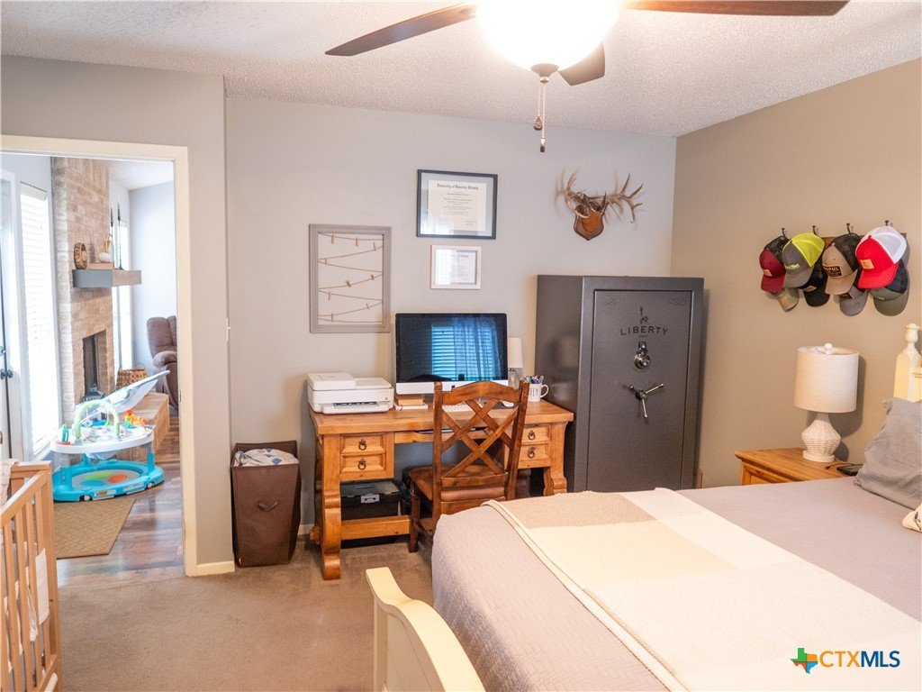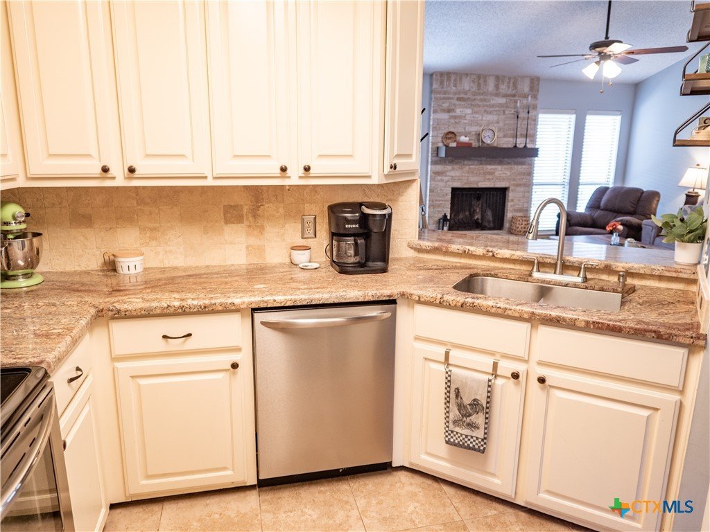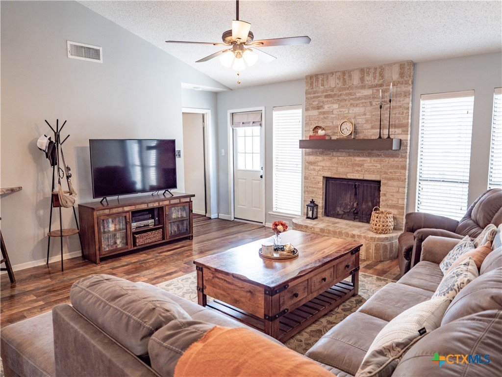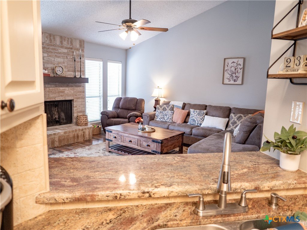Exciting opportunity coming soon! This charming home features vaulted ceilings that create an open and airy atmosphere, perfect for comfortable living. Imagine cozy winter evenings by the inviting fireplace in the living room, a focal point for relaxation and gatherings. The kitchen boasts beautiful granite countertops and a convenient view-through window into the living room, allowing you to engage with guests while showcasing your culinary skills. This thoughtfully designed split floor plan includes an expansive primary bedroom complete with a spacious walk-in closet and a private bath, providing a tranquil retreat at the end of the day. Step outside to enjoy the covered back porch, ideal for unwinding and entertaining. There's also an additional concrete slab and a shed equipped with electricity, offering plenty of storage options. This home truly combines comfort and functionality!