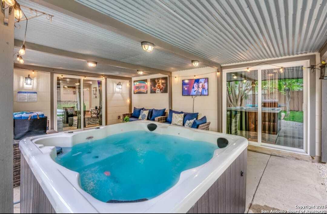 Beautiful, conveniently located home near the Medical Center, The Rim, USAA, and La Cantera with quick access to I-10. Remodeled in 2022 roof, windows, sliding doors, water heater, and updated kitchen and baths. Enjoy the covered patio with jacuzzi, perfect for gatherings. Furniture is for sale too. This is a must see!!!