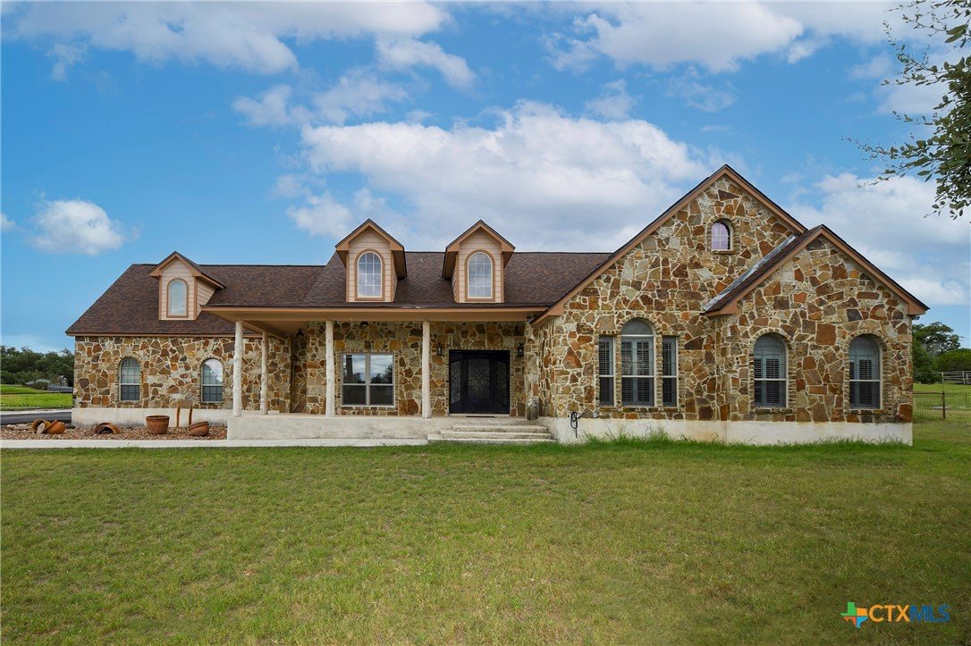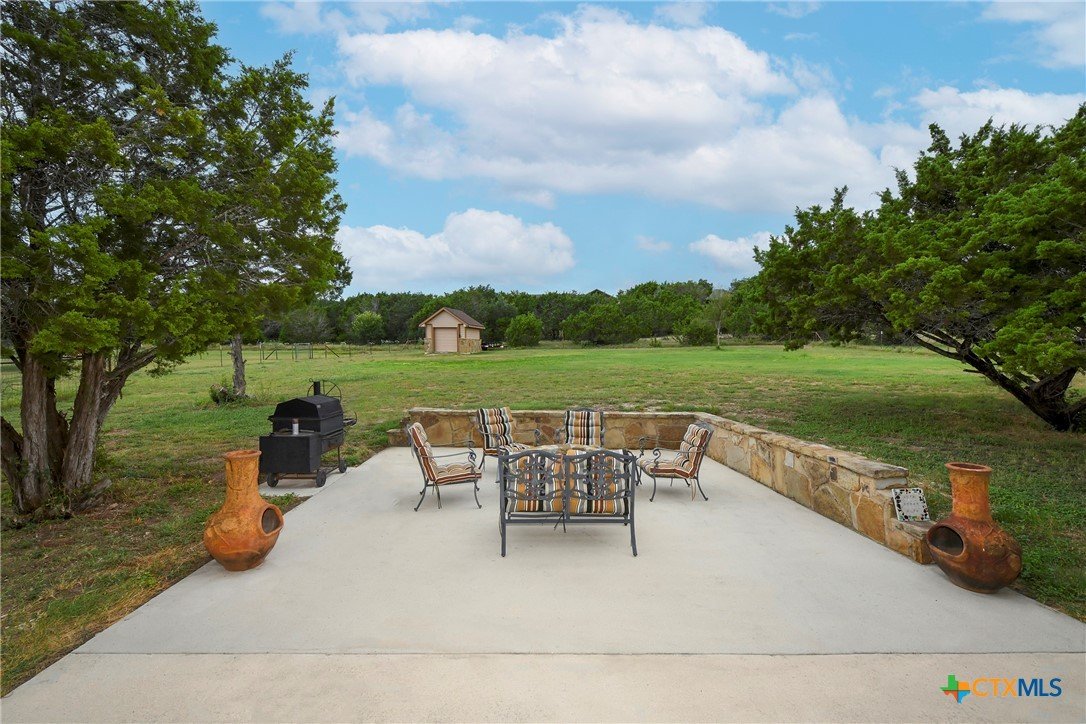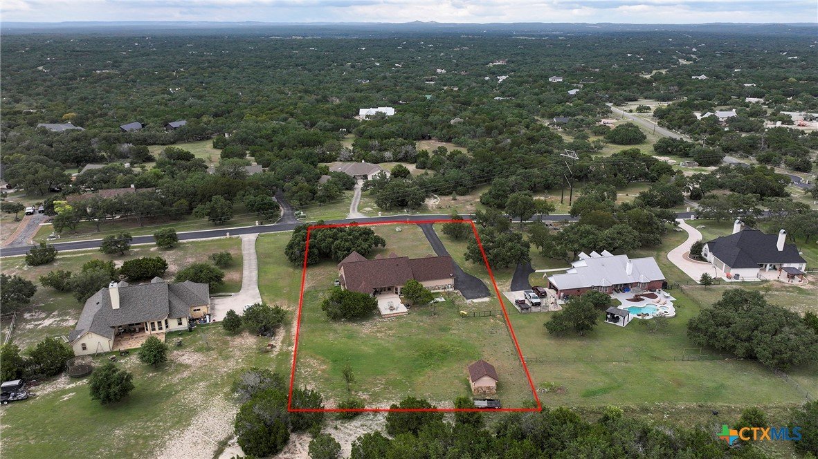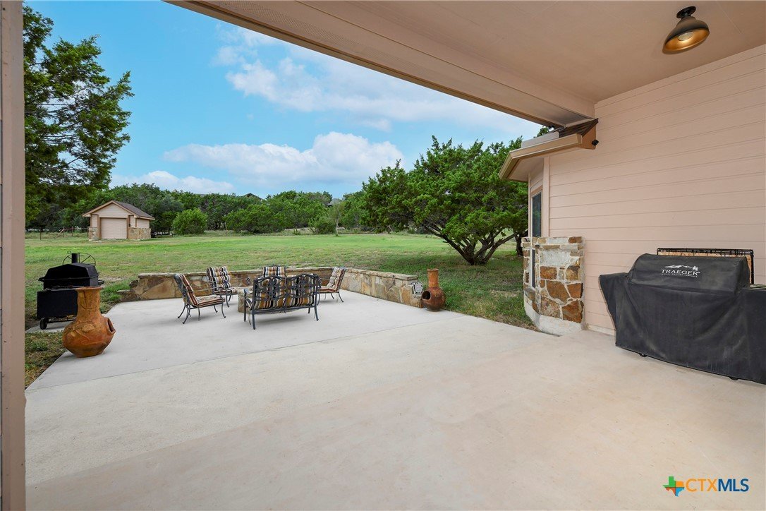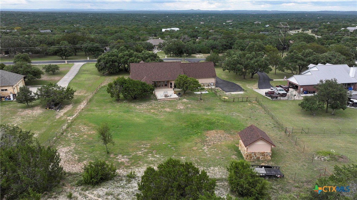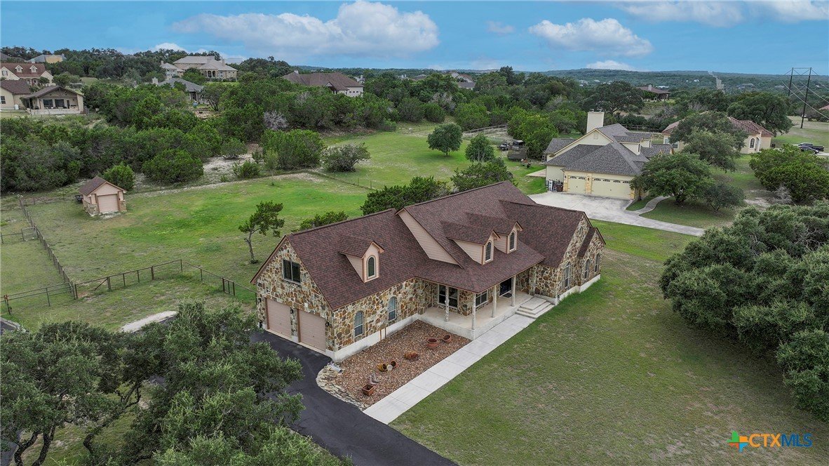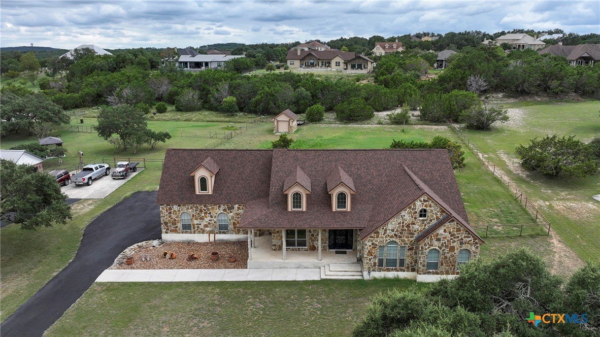 Welcome home! Custom STEEL FRAME home sitting on over an acre in the Texas hill country! 3 generous bedrooms plus a home office with a view! Upstairs bonus/game room or 4th bedroom over garage! Wonderful island kitchen loaded with custom all wood cabinets topped off with gorgeous granite counter tops!! Roof shingles replaced April 2024! Covered patio, burn pit, oversized garage, water softener, gutters, storage shed and fenced back yard are other notable features! Convenient to great schools, shopping, entertainment, the Guadalupe River and Canyon Lake!! Plenty of room for a pool!! Priced right, so don't hesitate on this one!