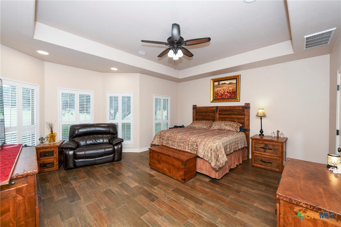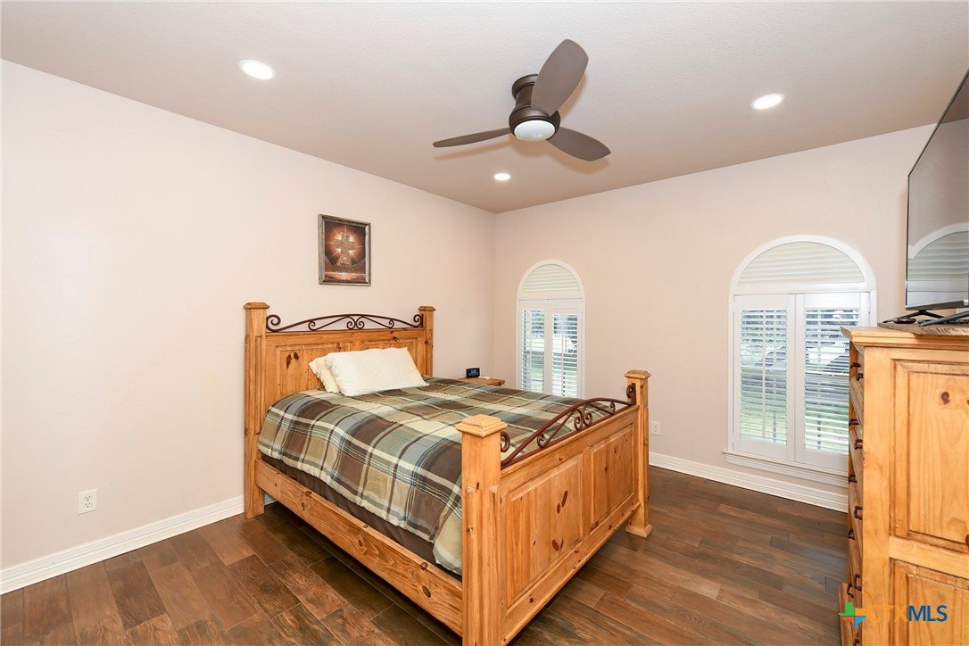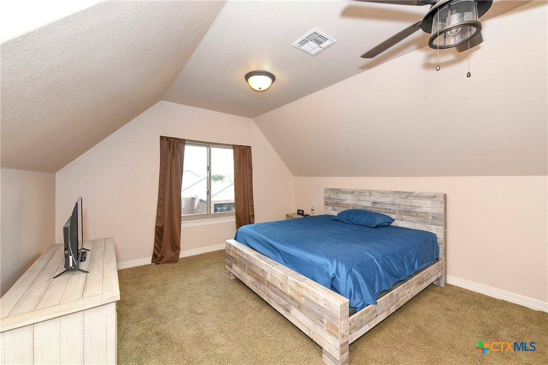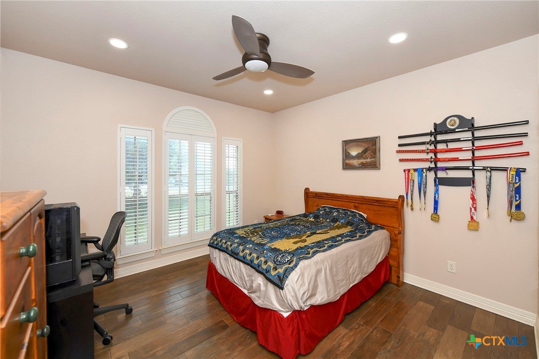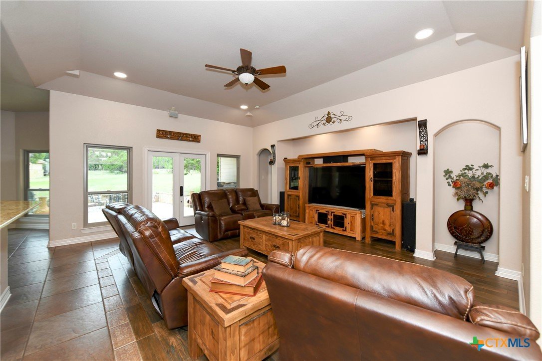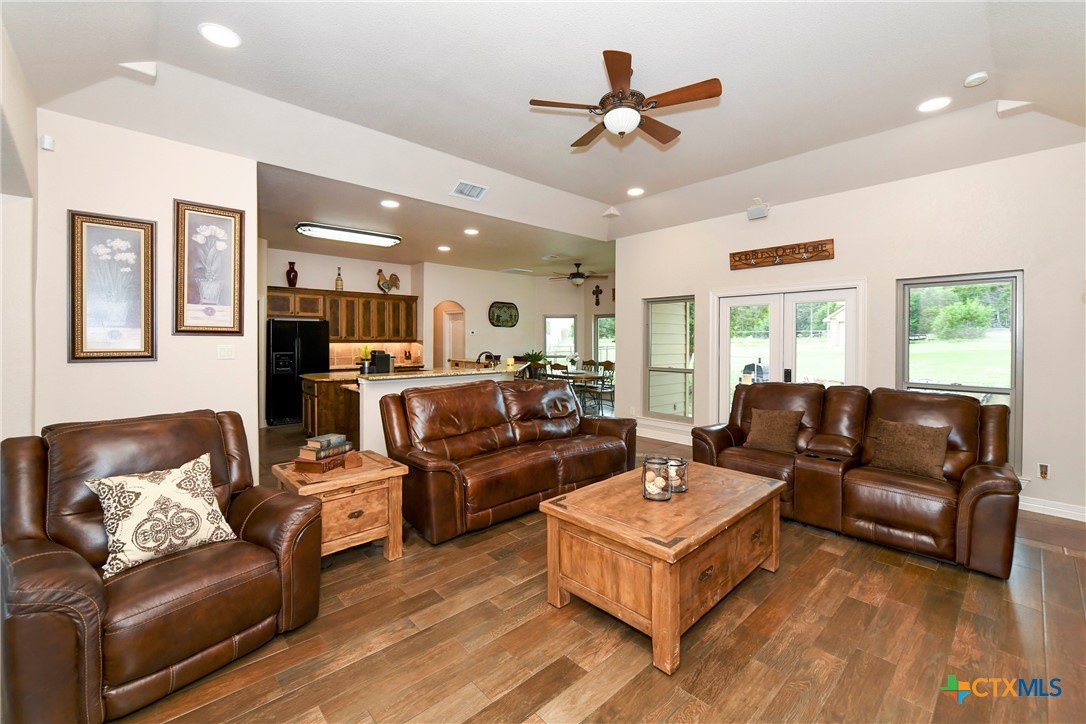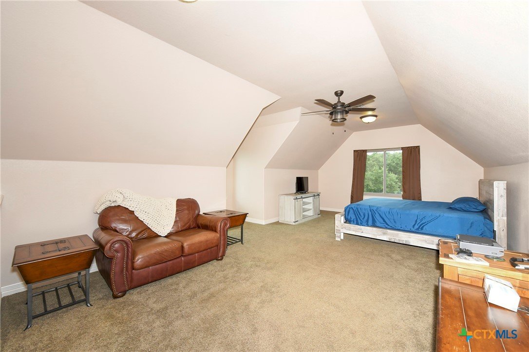 Welcome home! Custom STEEL FRAME home sitting on over an acre in the Texas hill country! 3 generous bedrooms plus a home office with a view! Upstairs bonus/game room or 4th bedroom over garage! Wonderful island kitchen loaded with custom all wood cabinets topped off with gorgeous granite counter tops!! Roof shingles replaced April 2024! Covered patio, burn pit, oversized garage, water softener, gutters, storage shed and fenced back yard are other notable features! Convenient to great schools, shopping, entertainment, the Guadalupe River and Canyon Lake!! Plenty of room for a pool!! Priced right, so don't hesitate on this one!