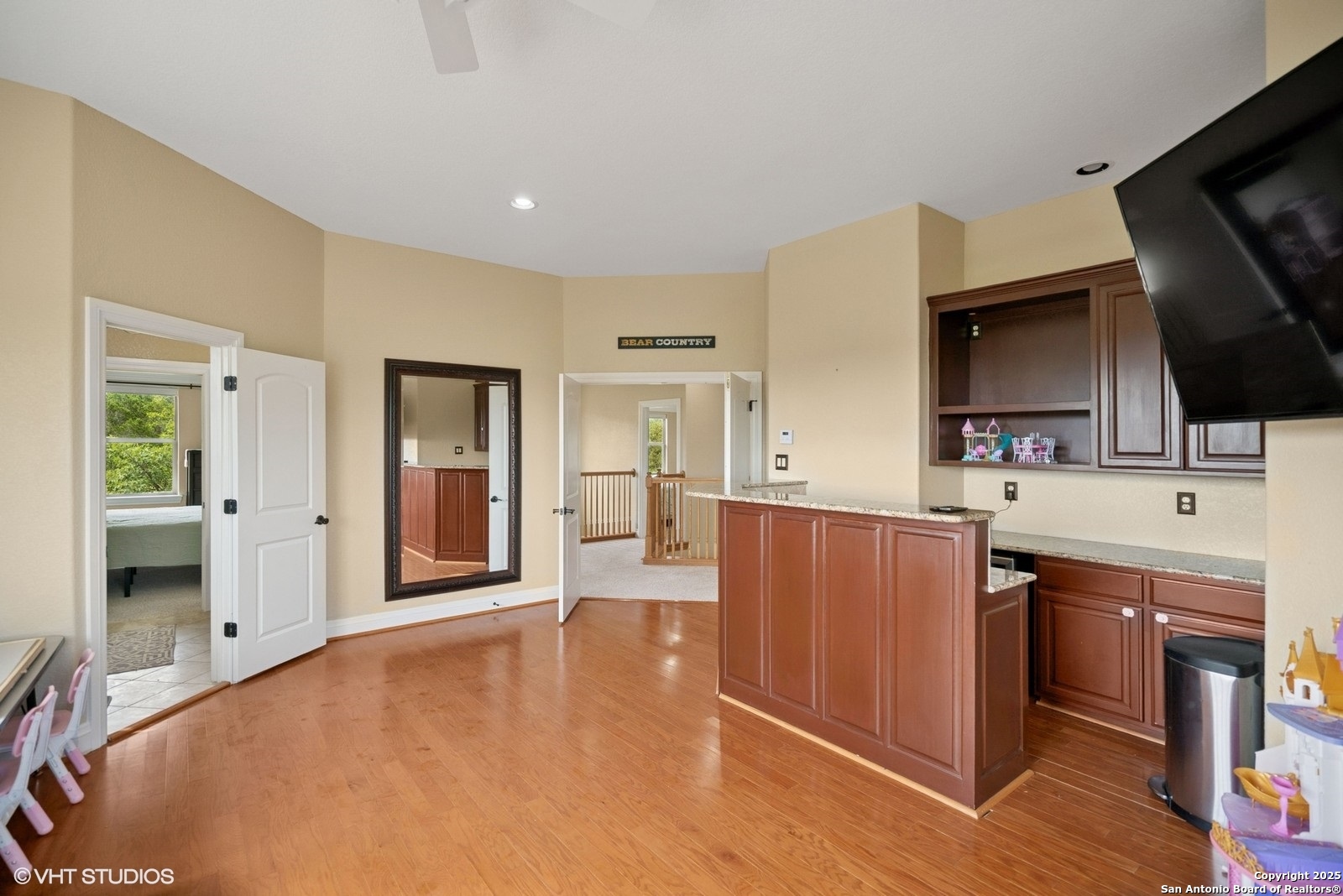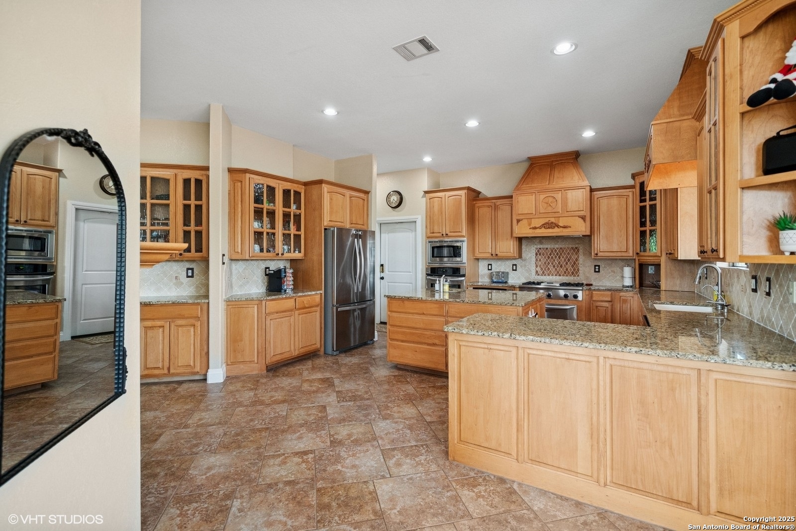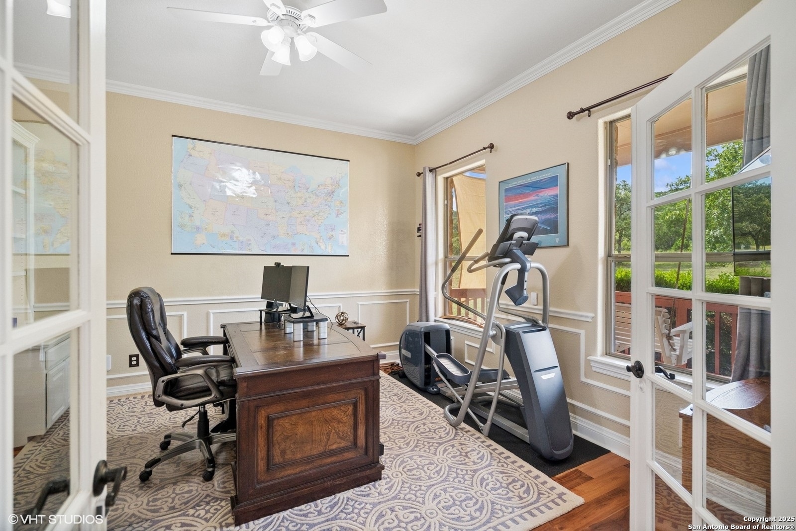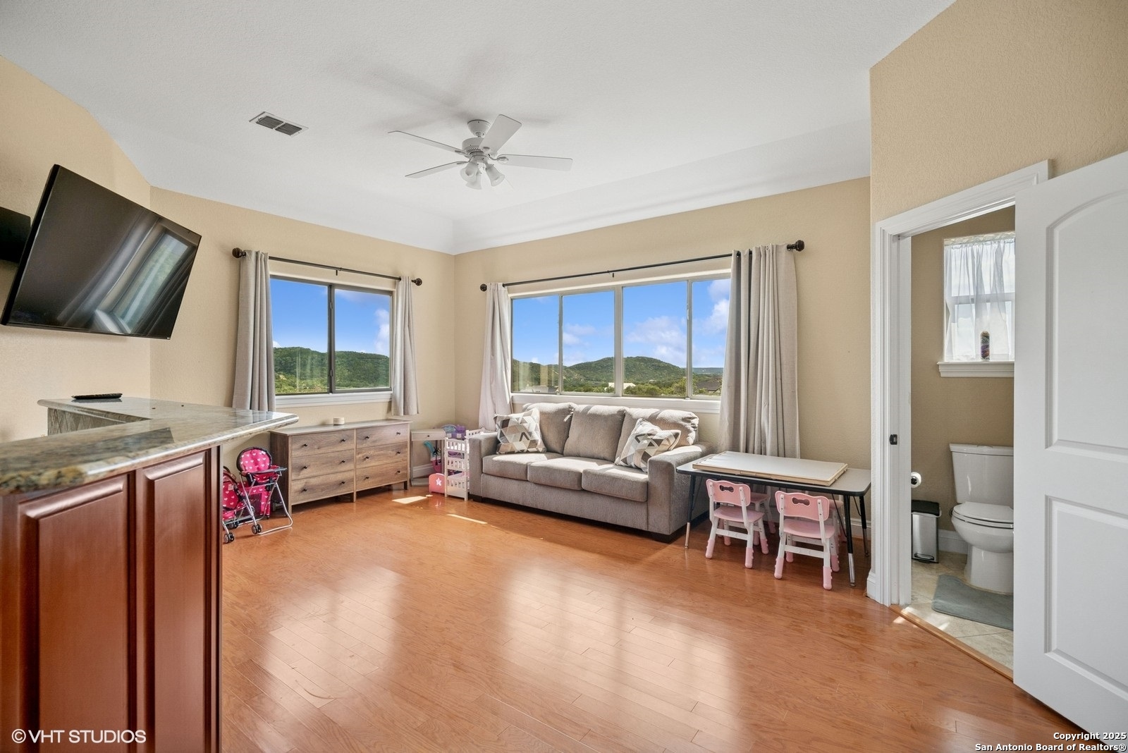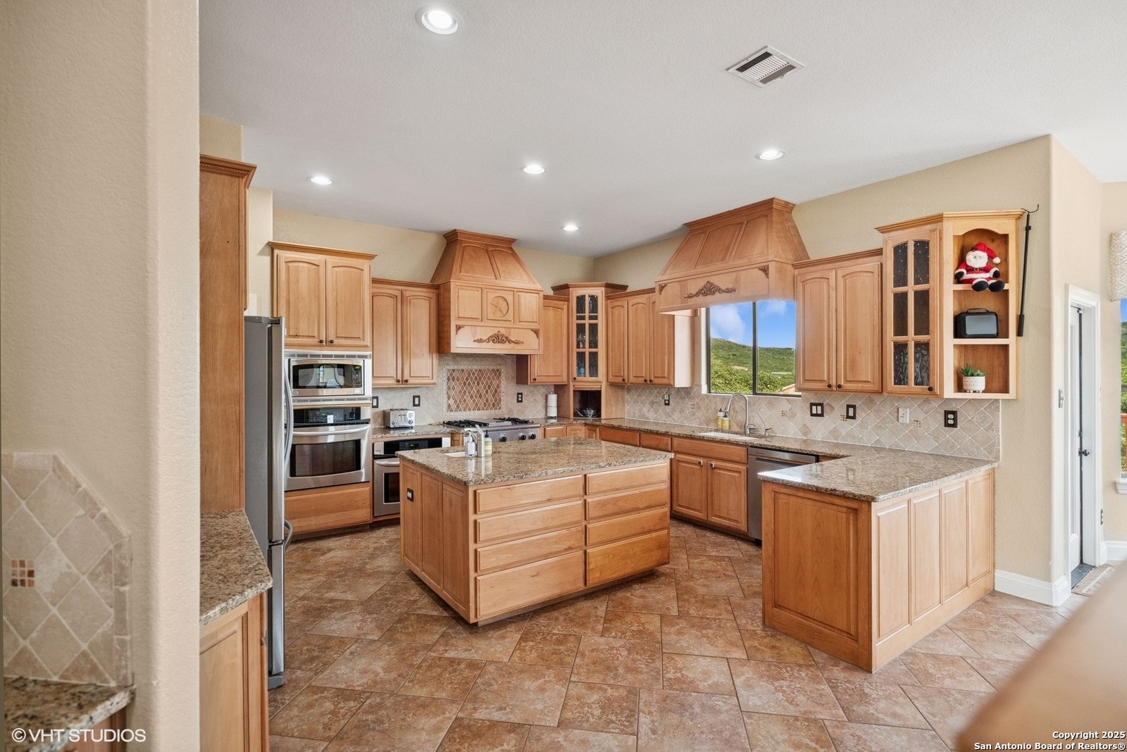 Expansive Hill Country retreat with acreage and plenty of wildlife. Home with Four-bedroom, 3.5-bath, 3900 sq ft. Downstairs you will find the gourmet kitchen, large double walk-in pantry, breakfast nook and separate dining room, enclosed office, and living room with propane fireplace. Upstairs the primary suite features large picture windows that overlook the nearby hills. The large master bathroom has a separate shower and tub, and a large walk-in closet with extensive shelving. A private balcony off the master bedroom upstairs has peaceful views. Home can be rented furnished or unfurnished. Kids swing set in backyard stays to enjoy. Close to new HEB and High School.