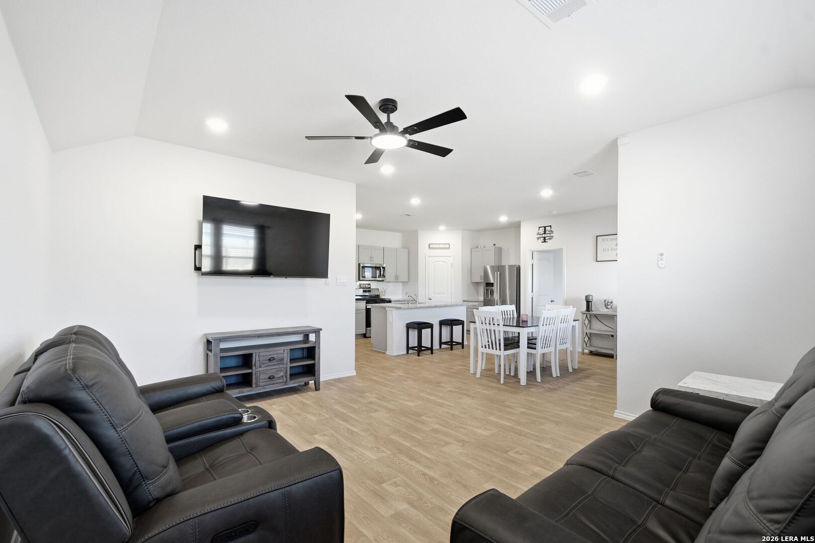 Welcome to this beautiful 3-bedroom, 2-bath home located in the heart of Lockhart, the BBQ Capital of Texas. The kitchen features granite countertops, stainless steel appliances, and an oversized island that opens seamlessly to the dining and family rooms-perfect for entertaining and everyday living. The private main bedroom is conveniently located off the kitchen and offers a ceiling fan, double vanity, walk-in shower, and a spacious walk-in closet. Vinyl wood-style flooring runs throughout the home, with cozy carpet in the bedrooms. Step outside to a large backyard ideal for entertaining, relaxing, or creating your own outdoor oasis. Enjoy easy access to SH-130 for commuting while still being close to town to experience the charm and small-town vibes Lockhart is known for.