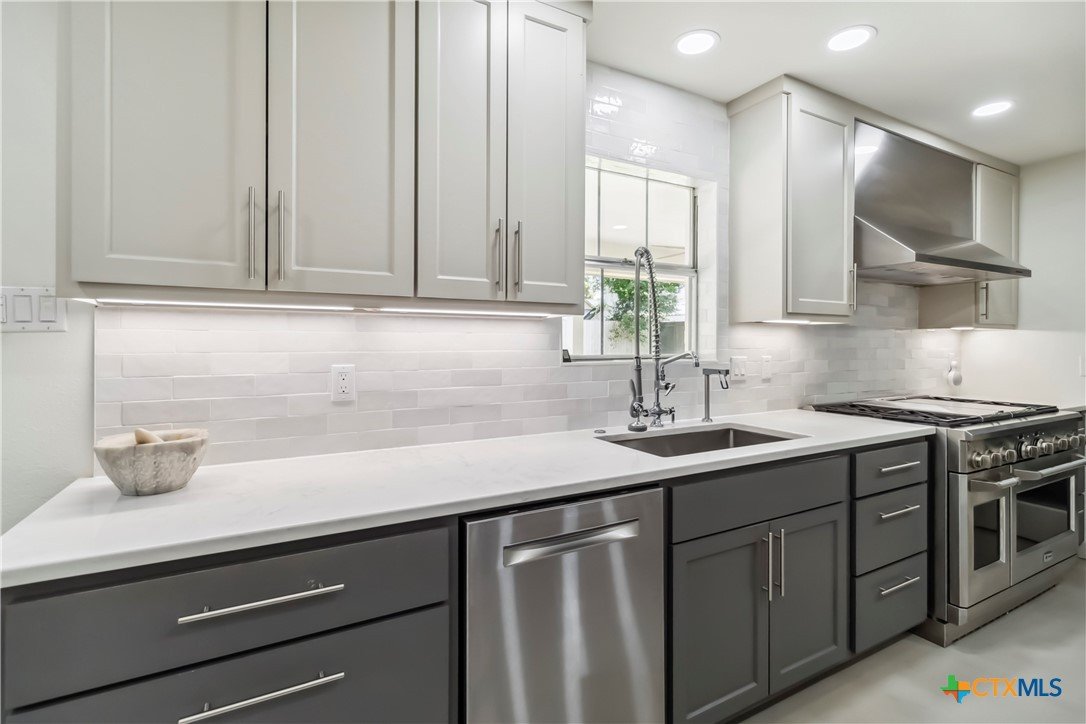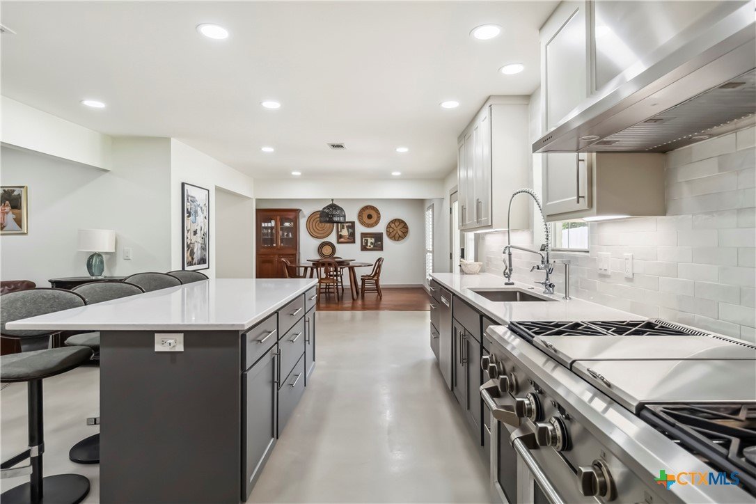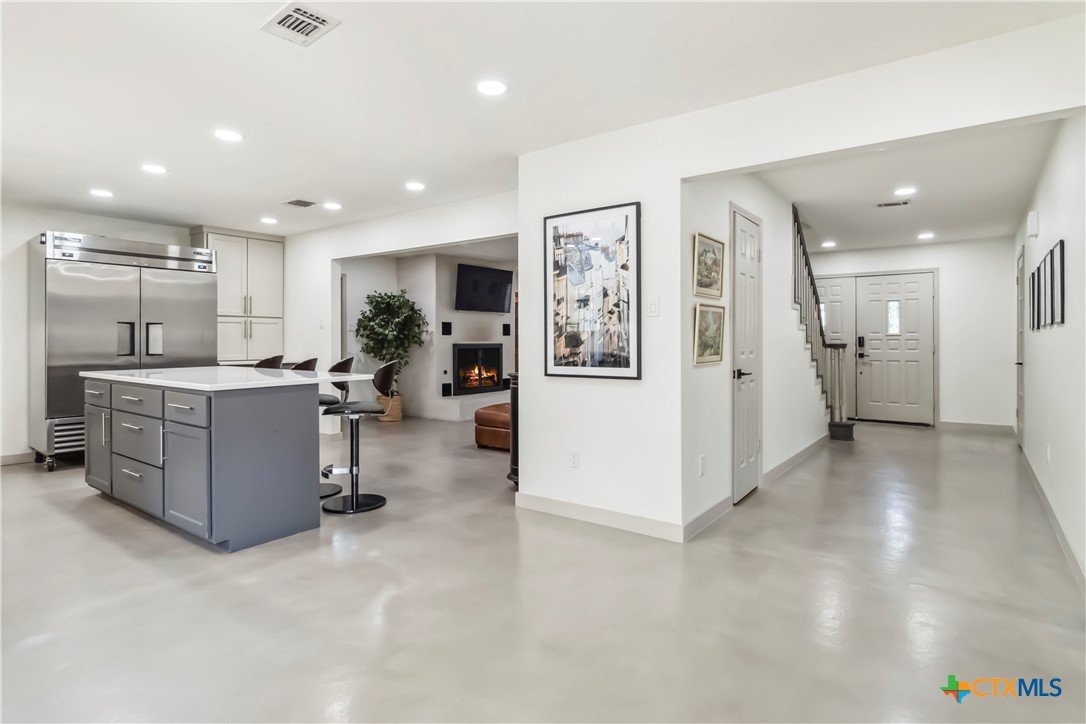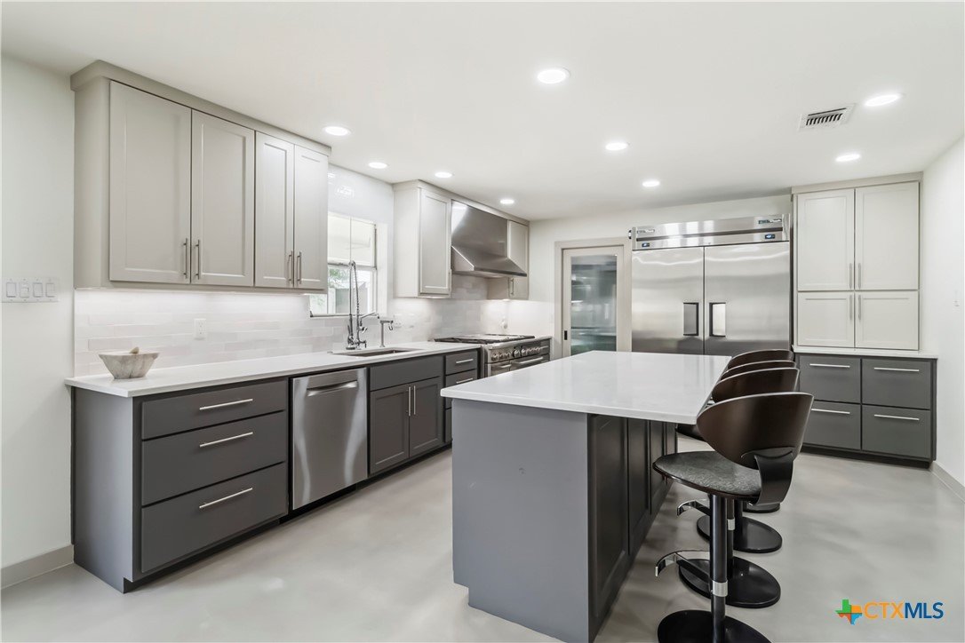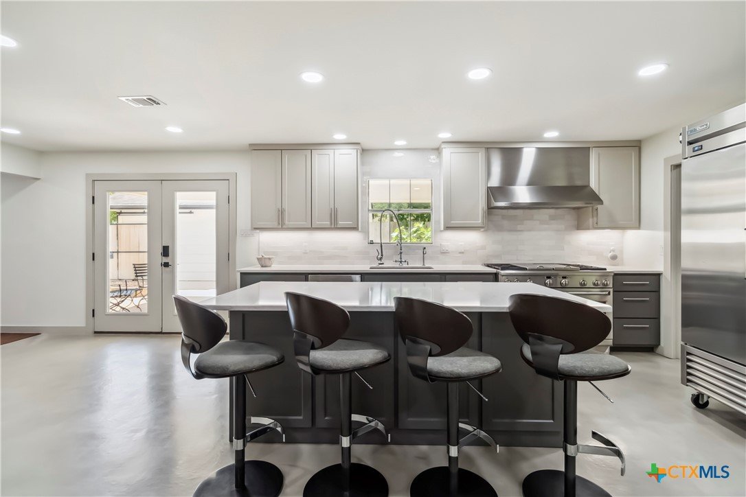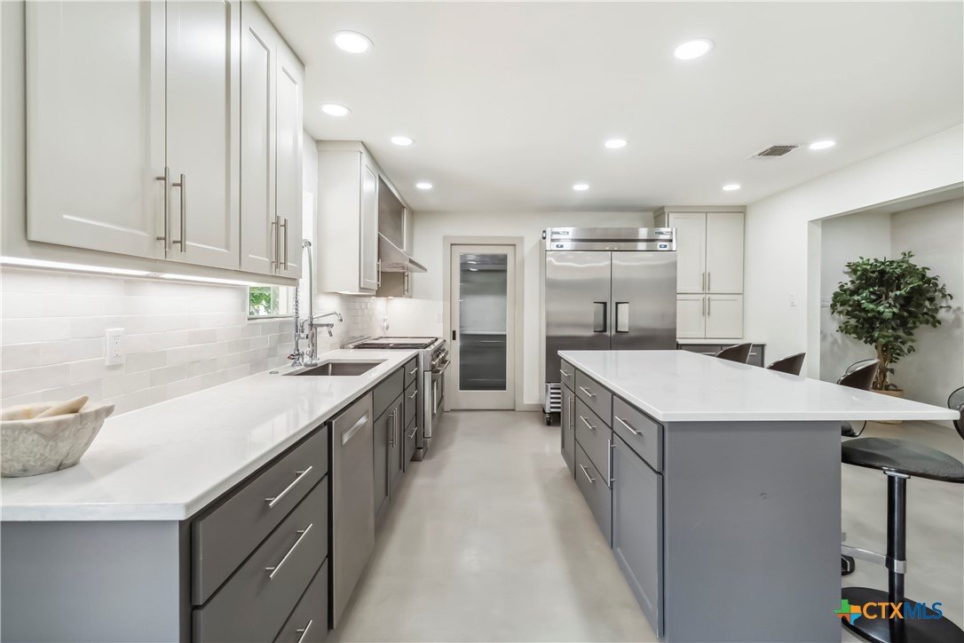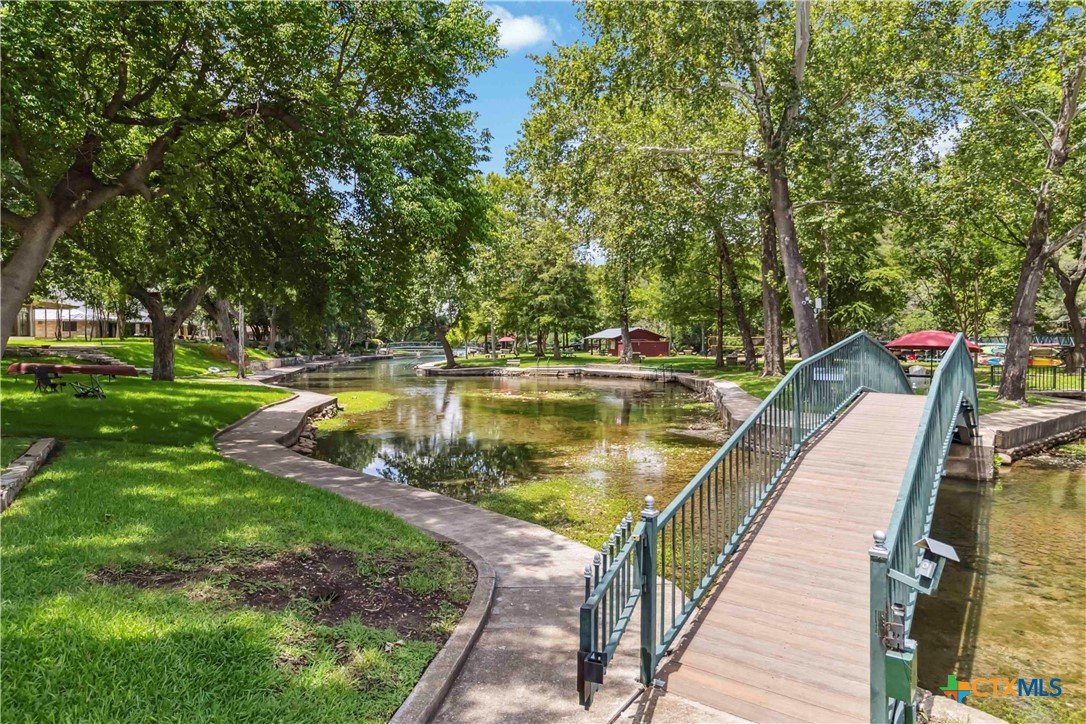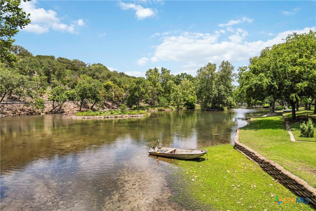 A rare opportunity within the Landa Park Estates! With exclusive access to the Island, you can enjoy the Comal River from your private river playground, just a two-minute walk away. After swimming, you can retreat to the Colonial-style home which sits on a corner lot, surrounded by towering trees and carefully planned landscaping. The home has 5 bedrooms, 3 bathrooms with a half bathroom downstairs. The primary bedroom and bathroom are on the first floor while the remaining rooms are located upstairs. The wood and stained concrete floors flow throughout the downstairs with carpet lining the stairway. The kitchen boasts a TRUE® commercial grade, side-by-side refrigerator/freezer with a pantry and laundry room off to one side. The oversized study can be found just inside the front entryway with floor-to-ceiling, built-in bookshelves that feature sliding wooden doors. Meticulously maintained, the property includes a cozy and engaging backyard with a covered patio and detached 2-car garage that includes extra storage. If you choose to venture out from your peaceful oasis, Schlitterbahn, Gruene Hall and downtown New Braunfels are all just minutes away. Don’t miss this extraordinary opportunity—schedule your private tour today!