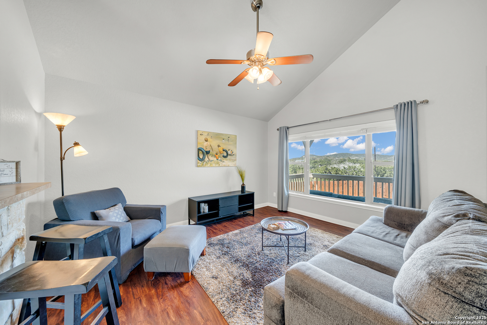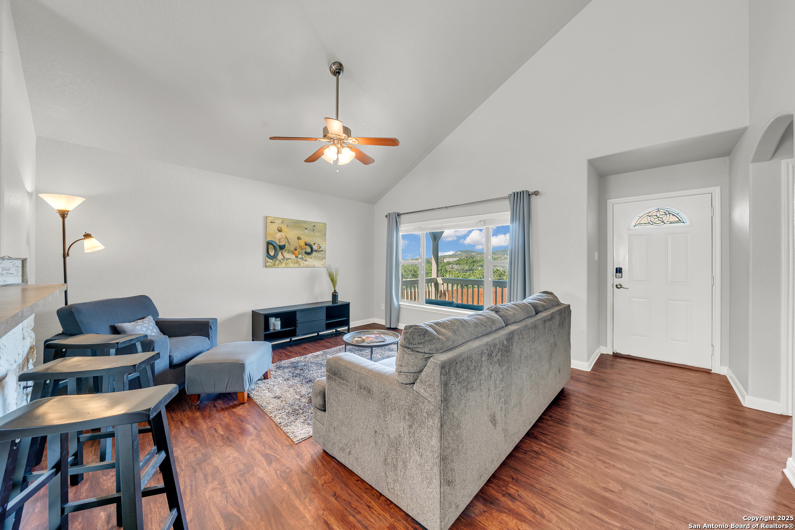 The Canyon Lake rental home you have been searching for is now available! This charming 3-bedroom, 2-bathroom home is situated high on a hill in Emerald Valley subdivision with no HOA. No carpet to worry about. The master bedroom features an en-suite bathroom and a spacious closet. Two additional bedrooms share a full bath. There is plenty of kitchen storage with beautiful custom pine cabinets. Relax on the back deck and enjoy the stunning views of the Canyon Lake dam and the valley below. You'll be just two miles from the Guadalupe River for water recreation and the Whitewater Amphitheater, which hosts seasonal concerts. There's a spacious side yard for boat or RV parking. Don't miss the opportunity to rent this adorable home. This home is unfurnished.