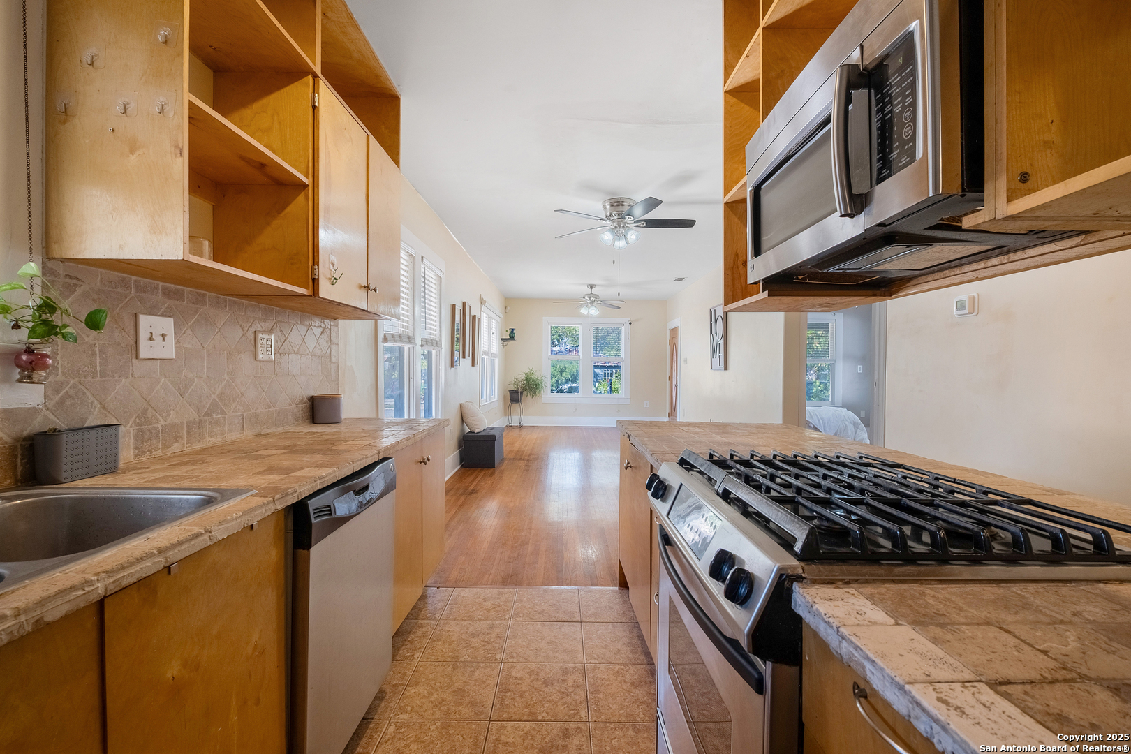 Nestled in the heart of San Antonio's historic Alta Vista neighborhood, 428 W Lullwood Ave is a charming and well-cared-for 1930s home that blends timeless character with everyday comfort. This inviting 3-bedroom, 2-bath residence offers warm wood floors and abundant natural light throughout.The welcoming front porch sets the stage for the home's charm, while the spacious living and dining areas flow easily into a bright, functional kitchen. Shaded by beautiful mature pecan trees, the outdoor space feels private and peaceful, perfect for relaxing or entertaining. Located just minutes from the Monte Vista district, Trinity University, and the University of the Incarnate Word, this home combines history, beauty, and convenience in one of San Antonio's most desirable areas. 2 newer Storage sheds convey with property. The home has a newer AC unit (around 2023) & roof was replaced in 2020.