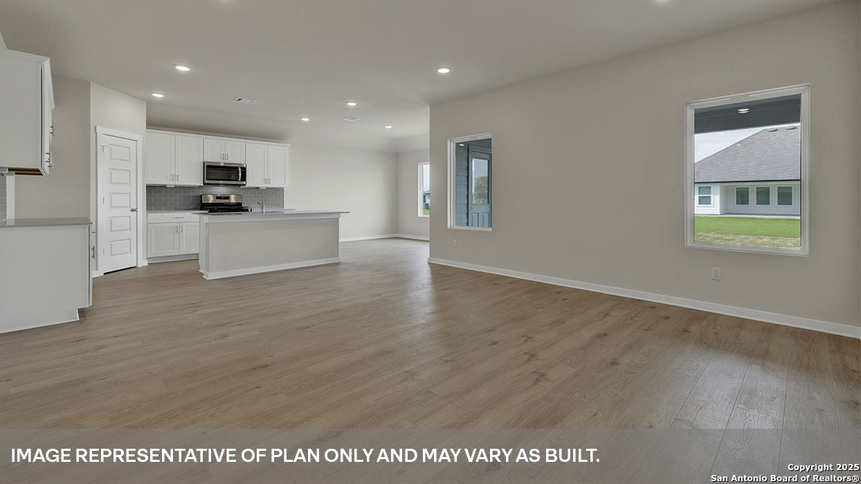 MOVE IN READY! Check out the Dean at Hartland Ranch, a one-story floorplan featured in one of our communities in Lockhart, Texas. Designed across 1,885 square feet, this home includes 4 bedrooms, 2 bathrooms and a 3-car garage. Walk through the covered entryway and make your way down the hall to the main living space. The kitchen, dining and family room are open,built to make cooking, eating, and entertaining a pleasant experience for family and friends. The kitchen includes quartz countertops, decorative tile backsplash, a large island with undermount sink, a corner pantry closet, stainless-steel appliances and 36'' upper cabinets. Enjoy the natural light with four rear windows looking out to the backyard. The secondary bedrooms are located at the front of the house, off the foyer. A small hall leads you to the three bedrooms and one full bathroom. Each bedroom includes a closet, and the bathroom includes a shower/tub combination plus extra shelving for storage or decor. Whether you use these rooms as an office, child's room or guest room, there is plenty of space for work, sleep and play. Off the family room, you'll find the utility room, with extra shelving for all your laundry items. The primary bedroom is tucked away past the utility room, and this private ensuite is sure to be your oasis at the end of a long day. Enjoy the 5' walk in shower, raised cultured marble vanity with double sinks, private toilet area with a door, and walk-in closet in this modern bathroom space. The Dean includes vinyl flooring throughout the common areas of the home and the primary bedroom, and carpet in the secondary bedrooms. All our new homes feature a covered back patio, full sod, an irrigation system in the front and back yard, and full gutters. This home includes our America's Smart Home base package, which includes the Front Doorbell, Front Door Deadbolt Lock, Home Hub, Thermostat, and Deako Smart Switches.