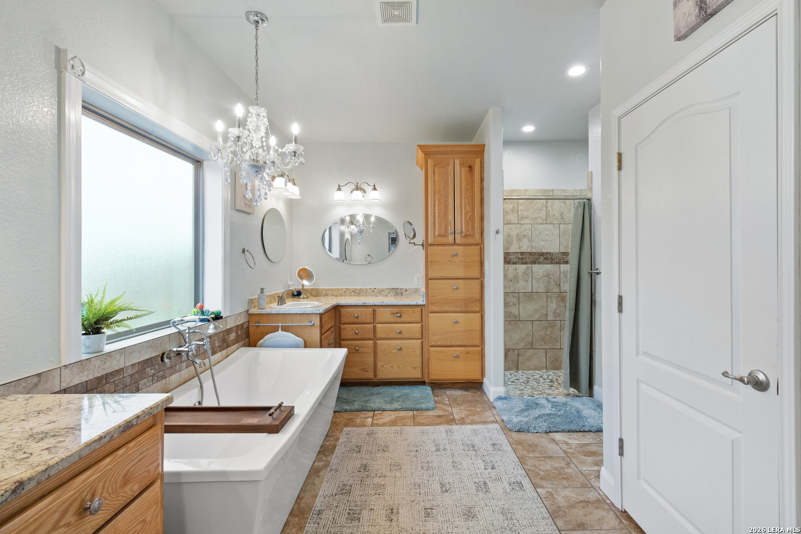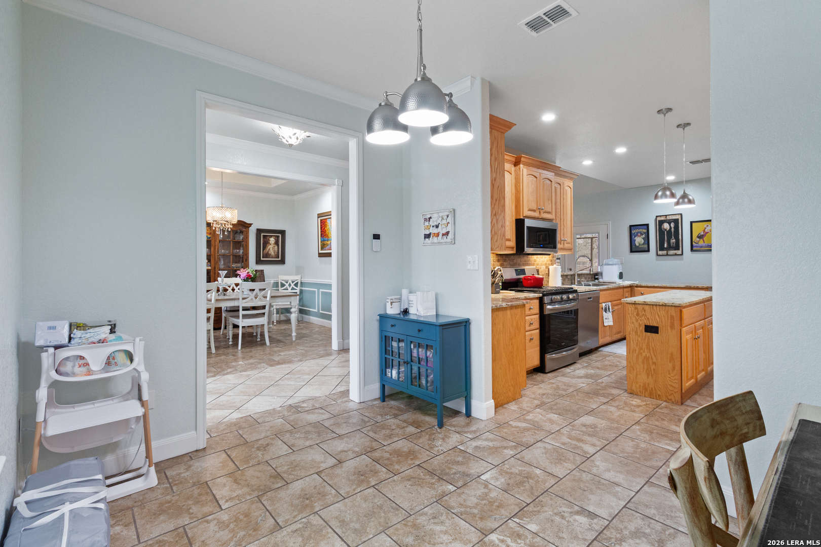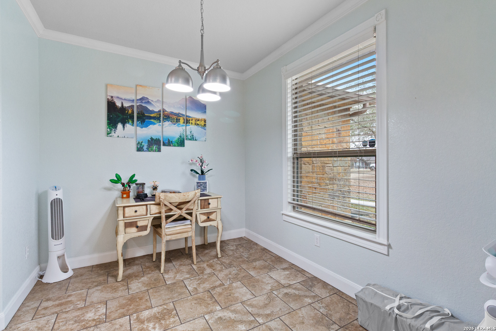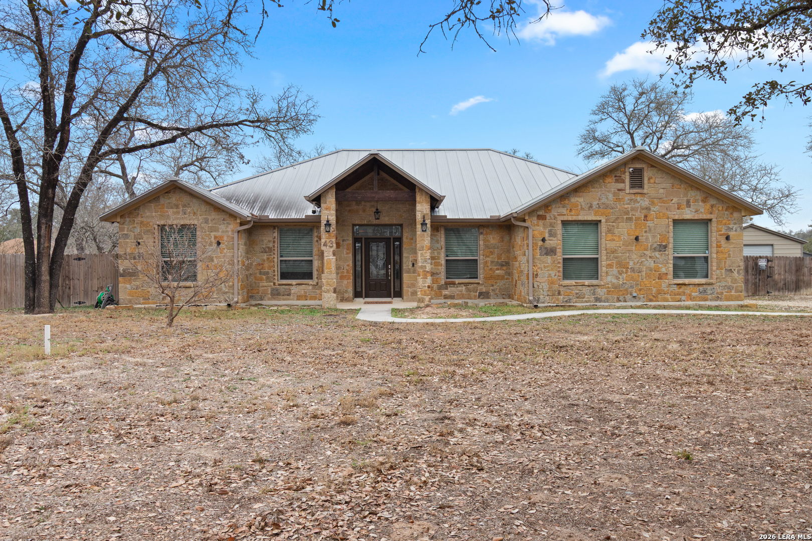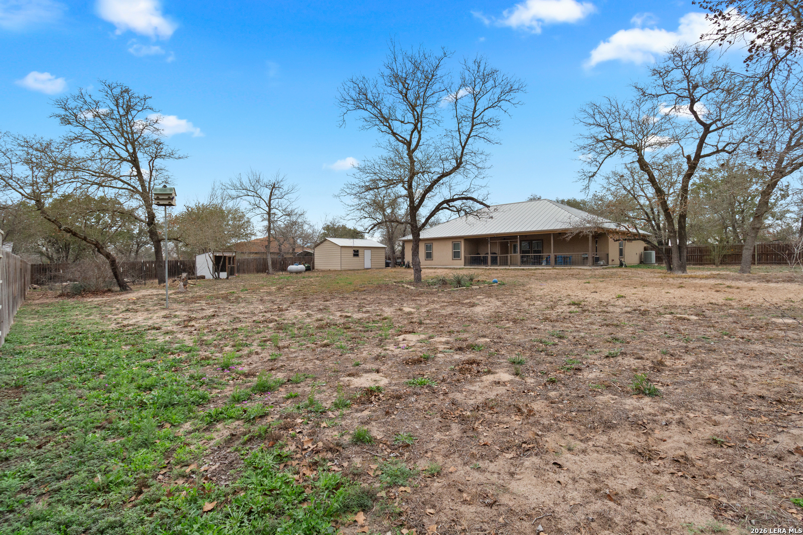 Discover the perfect balance of country freedom and modern charm in Poteet, Strawberry Capital of Texas. This home is set back on a scenic, tree-covered one-acre lot that offers privacy and plenty of distance between friendly neighboring homes. The property is located just minutes from both Loop 1604 and I-35 for quick city access and right down the road from a strawberry farm. Step inside into a carefully crafted home with elevated ceilings, cohesive matching tile, and soft-close cabinets throughout. The home is accented with custom Texas Star Window trim, giving every room a distinct "Lone Star" soul. The heart of the home is a chef's delight kitchen, featuring a gas cooktop, expansive cabinetry, and functional storage. Whether hosting in the formal dining room or sipping your morning coffee in the sunlit breakfast nook, the layout is designed for effortless flow. The oversized primary suite is a true sanctuary with a spa-like en suite featuring a separate deep soaking garden tub and walk-in shower. Unique to the primary suite is the dual-closet system, allowing for two adults to have dedicated walk-in closets, ensuring each has their own personal space. Enjoy Texas sunsets from your large covered back patio, secluded with a full privacy-fenced yard. Whether you're dreaming of a small homestead with the included chicken coop or just want space for the dogs to run, this acre is your canvas. For the modern professional, this home includes a network rack into the office closet with a hardwired camera system. Additionally, the home features an oversized two-car garage with custom-built storage and a versatile 18' x 20' workshop ready for whatever your next project is. Key Upgrades: Water softener, recently painted interior, and zero HOA restrictions.