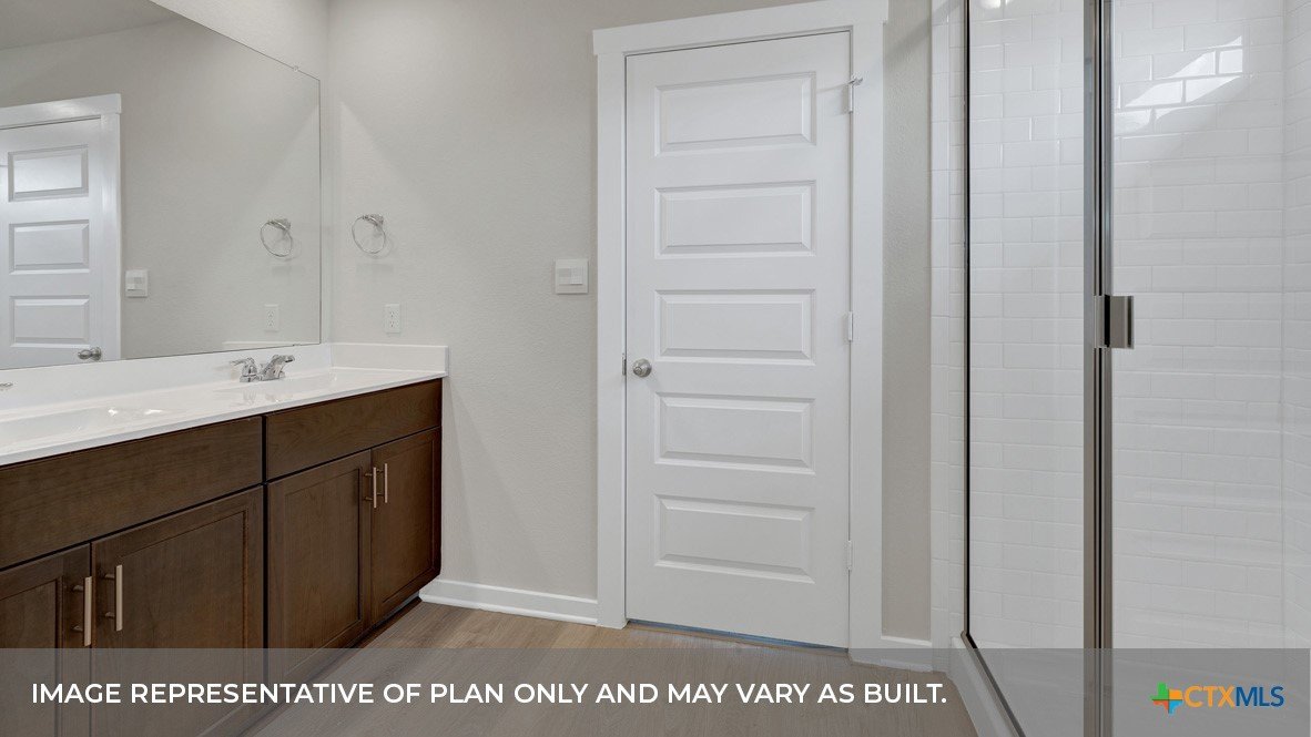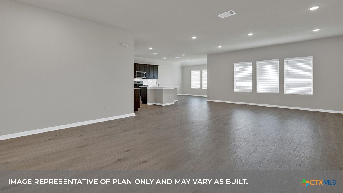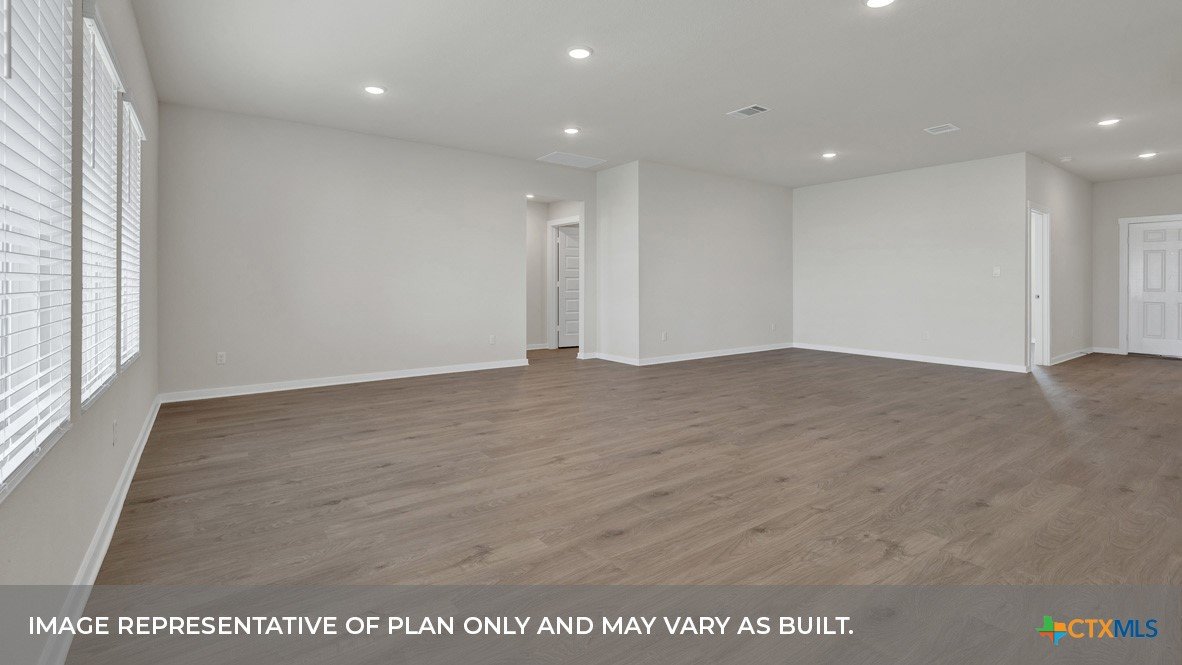 NOVEMEBER ESTIMATED COMPLETION! Find all the space you need in our Frisco floorplan at Hartland Ranch in Lockhart, Texas. This spacious one-story home includes 3 bedrooms, 2 bathrooms and a study within 2,087 square feet and a 3 car garage. Step through the covered entryway into the foyer. You’ll find the study off to one side and two secondary bedrooms and a full bathroom off to the other side. The secondary bathroom features the toilet and shower/tub combination behind a separate door, allowing mornings to run efficiently for multiple family members. Past the foyer and study, you’ll enter the dining room, family room, kitchen, and nook. The open living space is perfect for entertaining and you’re sure to make many memories in this beautiful space. The kitchen features an oversized island with undermount sink, quartz countertops, decorative tile backsplash, a corner pantry closet, stainless-steel appliances and 36’’ upper cabinets. Let the natural light shine through the five rear windows, brightening up the living space. The primary bedroom is off the family room and includes its own attached bathroom, making the start of your day a seamless step from sleep to your morning routine. Enjoy the 5’ walk in shower, raised cultured marble vanity with double sinks, and separate entrance to the toilet for privacy. A walk-in closet with shelving is connected to the bathroom. The utility room is located near the primary bedroom and connects to the garage, perfect for a mud room. The Frisco includes vinyl flooring throughout the common areas of the home and the primary bedroom, and carpet in the secondary bedrooms. All our new homes feature a covered back patio, full sod, an irrigation system in the front and back yard, and full gutters. This home features our America’s Smart Home base package, which includes the Video Front Doorbell, Front Door Deadbolt Lock, Home Hub, Thermostat, and Deako® Smart Switches.