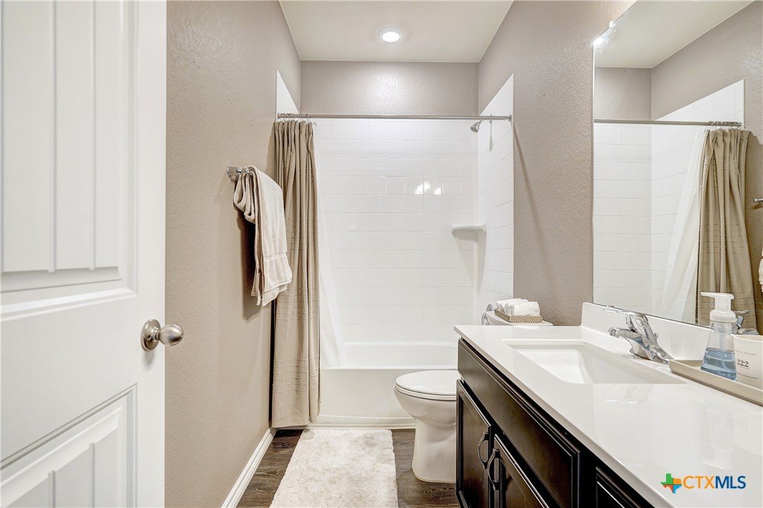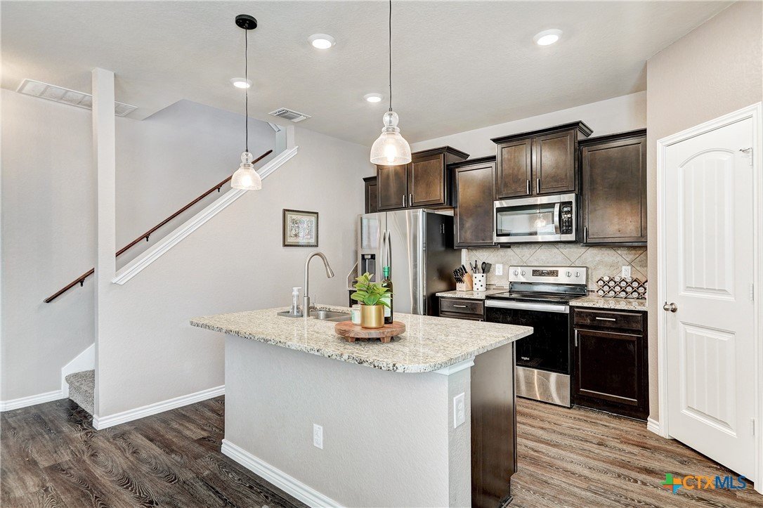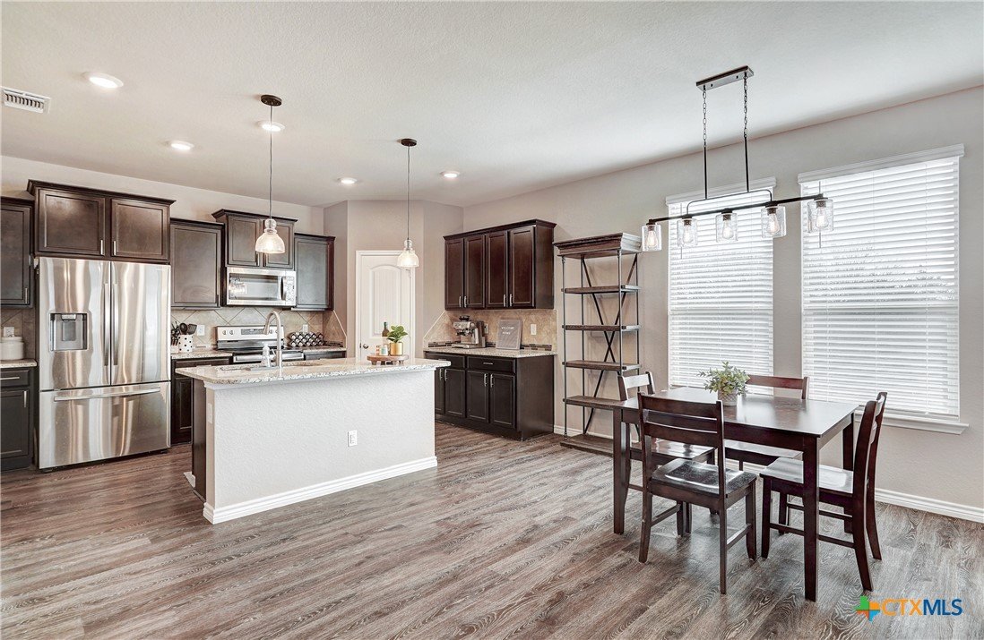 NO BACK NEIGHBORS! BACK YARD VIEWS of rolling trees just east of STILLHOUSE HOLLOW LAKE! Washer Dryer Refrigerator INCLUDED in lease! This MOVE IN READY home has a SUPER FUNCTIONAL floor plan 4 BEDS/3 FULL BATHS! Living room LINED WITH WINDOWS for natural light and views of GREENBELT in back. Neighborhood AMENITIES include Walking Trails and Creekside Pavilion. Large living room opens to dining and kitchen. GRANITE counters in kitchen . OFFICE or 4th bedroom with FULL BATH on the main level for privacy or IN-LAW SUITE! Large GAME/LIVING room on the SECOND level opens to 3 additional bedrooms and a FULL BATH. PRIMARY bedroom is on second level with convenient PASS THROUGH closet to LAUNDRY ROOM. Primary bath has dual vanities, garden tub and walk-in shower. BACK Covered porch with outdoor TV and FENCED area for DOG RUN. Beautiful Three Creeks neighborhood CONVENIENTLY LOCATED near several nature trails. Minutes from BOAT RAMP for water sports, kayaking or water boarding! MINUTES FROM BELTON AND SALADO.