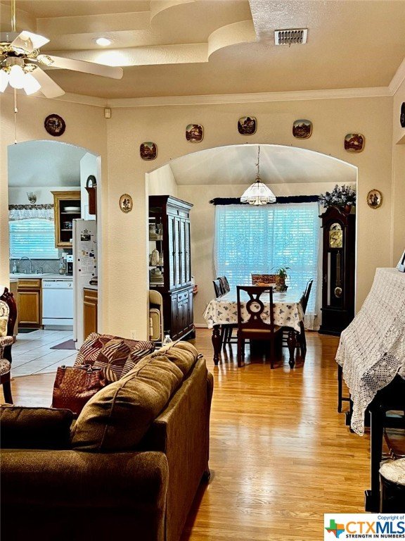 Diamond floorplan by Carothers Homes built in 2002, this well designed home has ample space for a growing family. It features 4 bedrooms, 2 full bathrooms, 2 car garage, engineered wood and ceramic tile flooring, fireplace and tray ceiling in living room, recessed lighting and some crown molding, formal dining and wood faux blinds on all windows. Enjoy the big kitchen and breakfast combo with an island table, a regular set of appliances and pantry. It also has three good sized bedrooms with walk in closets. Master bedroom boasts another tray ceiling and jetted tub, separate shower, dual vanity and 2 separate walk in closets. A storage building sits on the backyard. New roof installed last July, all around gutters and sprinkler system add to the list of extras for this house.