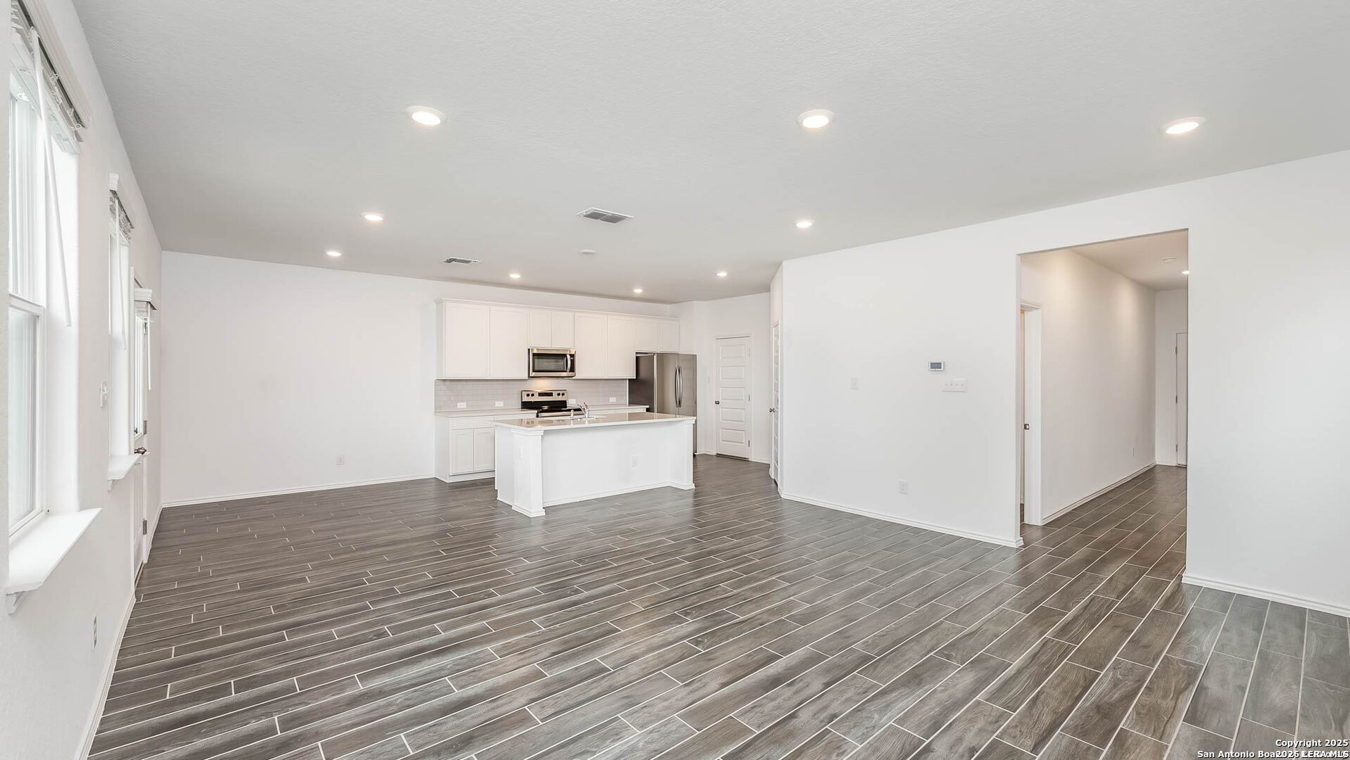 This beautifully designed 3-bedroom, 2.5-bathroom home blends modern features with comfortable everyday living. The open-concept layout features wood-look tile flooring throughout the main living areas, with plush carpeting in the bedrooms and upstairs loft. The kitchen is equipped with stainless steel appliances, quartz countertops, and a spacious island-perfect for cooking, entertaining, or casual dining. The primary suite includes a generous walk-in closet, dual vanities, and a sleek walk-in shower for a relaxing retreat. A refrigerator, stove, and microwave are all included for added convenience. Step outside to a fully fenced backyard with a covered patio, ideal for relaxing evenings or hosting friends and family. Conveniently located near schools, shopping, and military bases, this home offers both comfort and accessibility-ready for you to move in and start your next chapter.