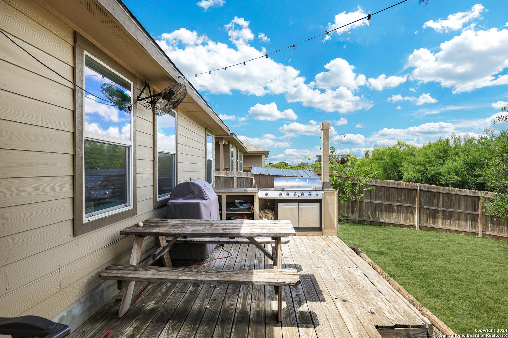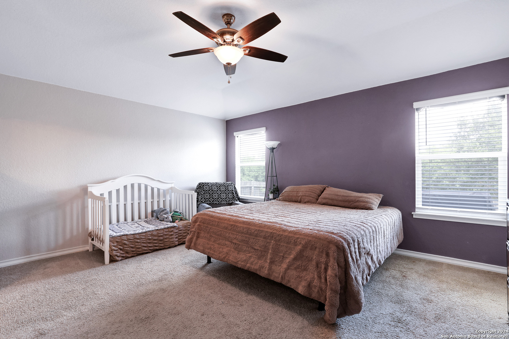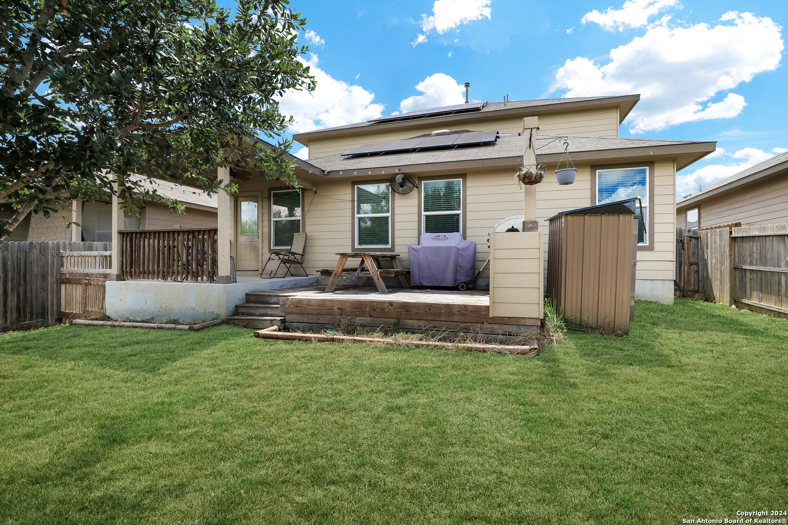 Come see this charming, well-maintained 5-bedroom, 2.5-bath two-story home in the Riposa Vita subdivision!! This home showcases a spacious open floor plan and a separate dining room. The inviting eat-in kitchen is ideal for family meals and entertaining guests.The master bedroom provides a private retreat with its own separate tub and shower, enhancing the homes overall comfort and style. Ascending upstairs, you're welcomed by an open game room, alongside four bedrooms that provide ample space as well.Step outside to discover the expansive backyard, featuring a covered deck perfect for outdoor entertainment and relaxation.This home is conveniently located near military bases and includes energy-efficient solar panels. Schedule a showing today!!